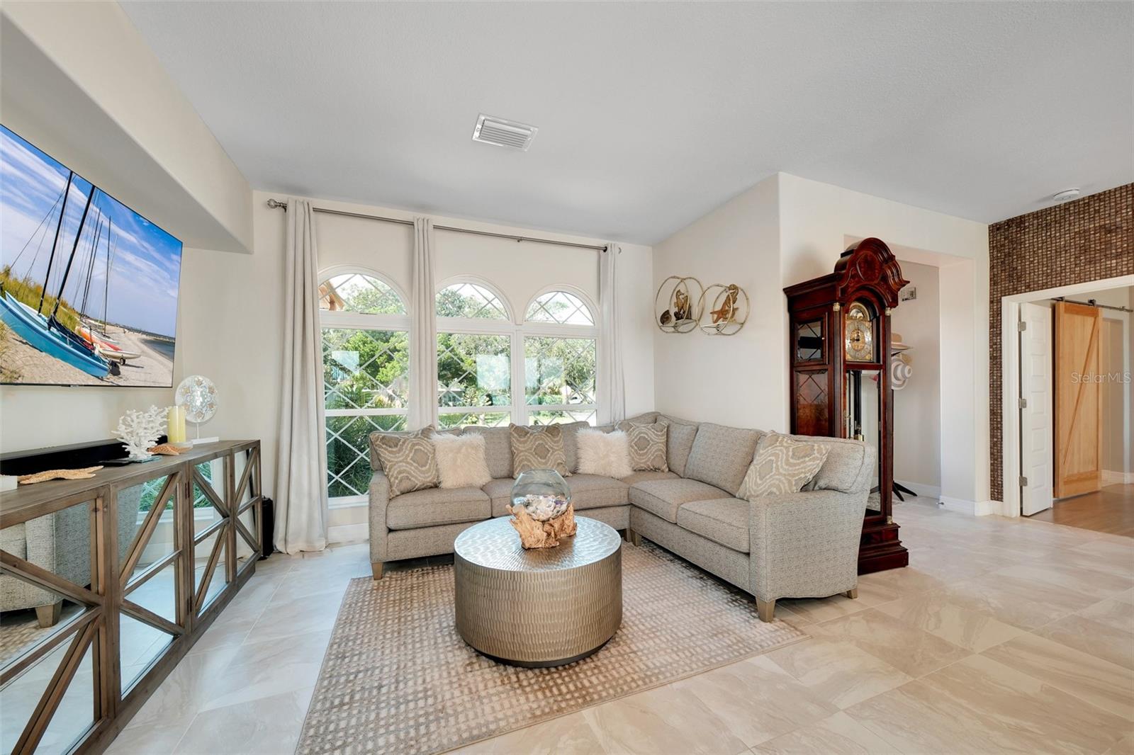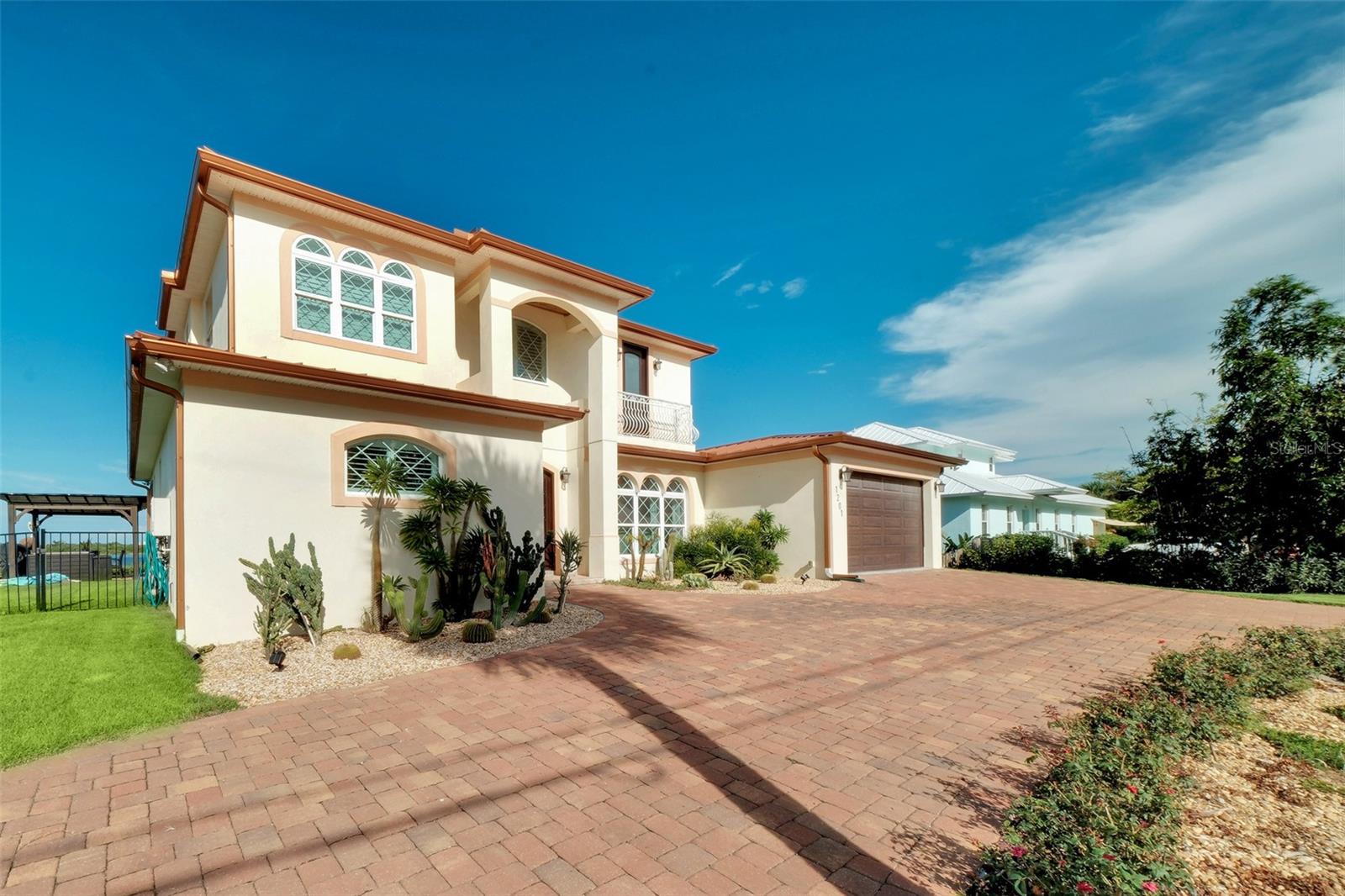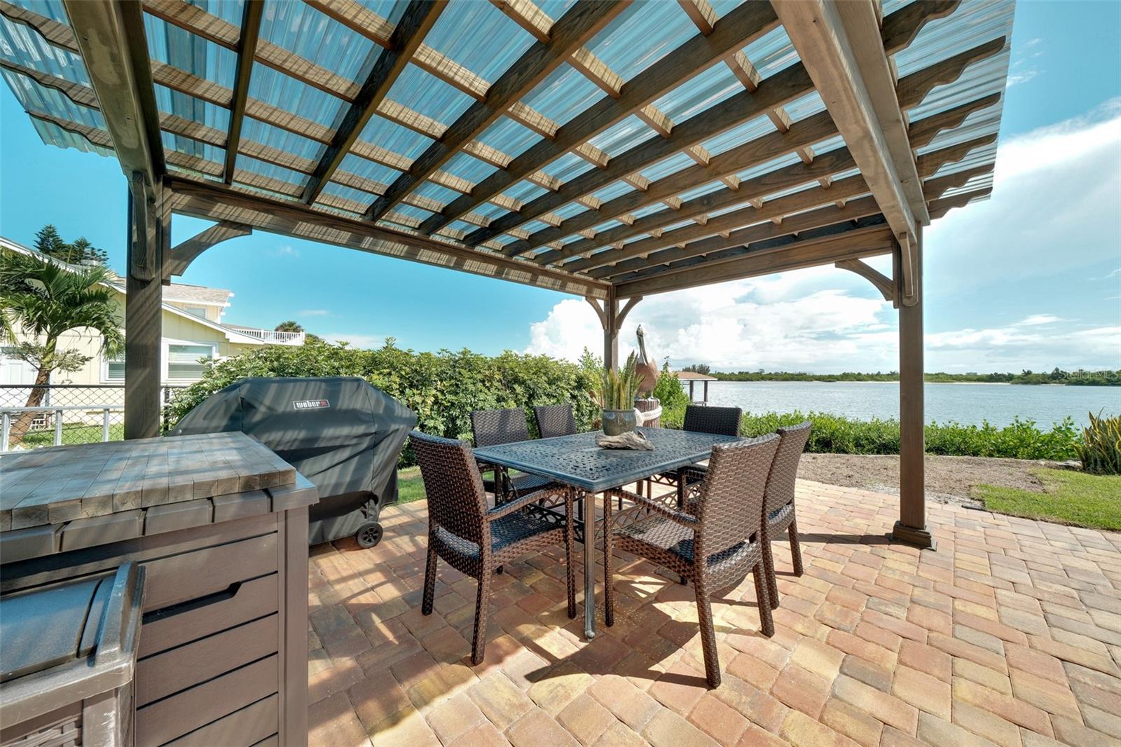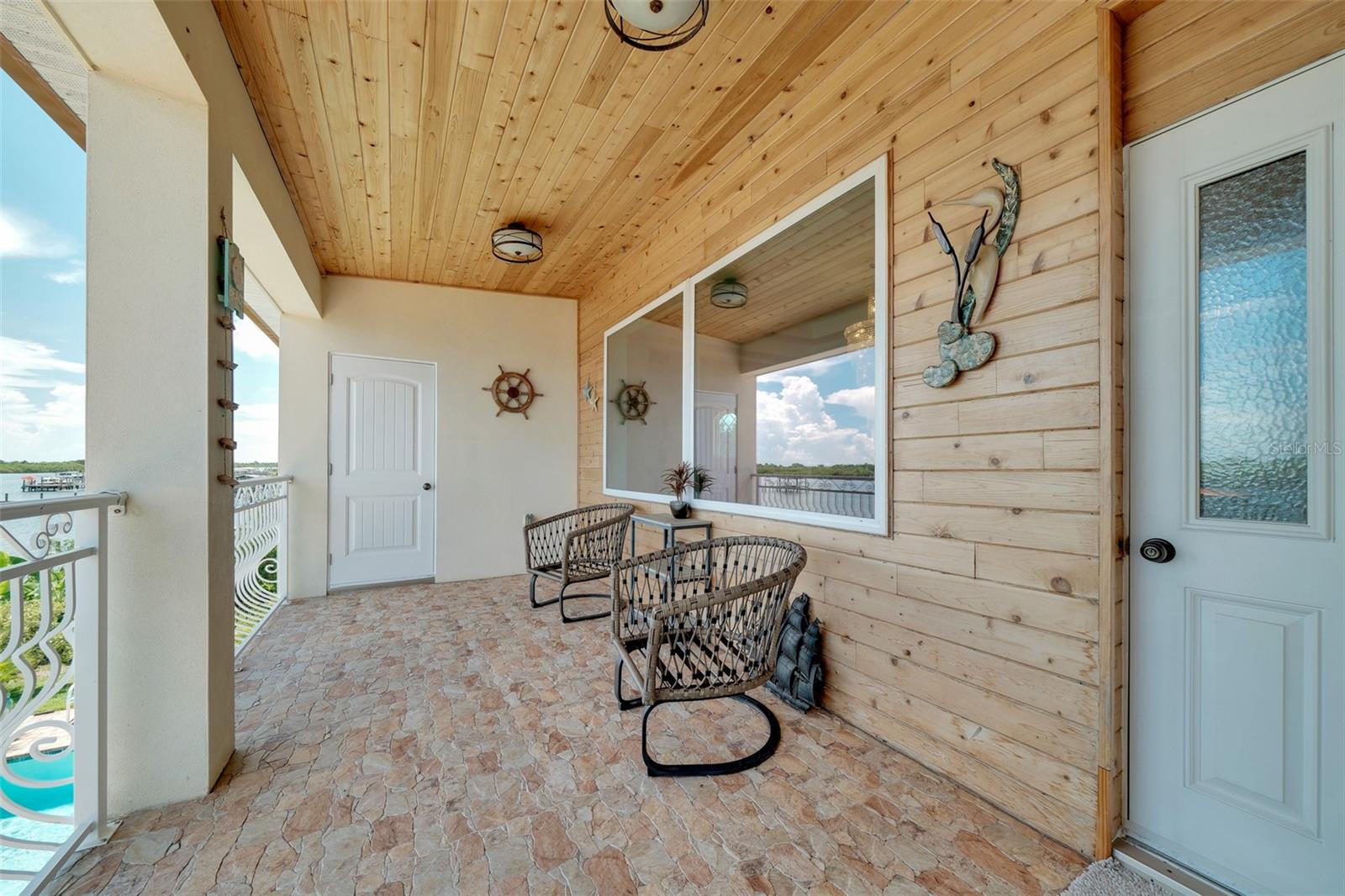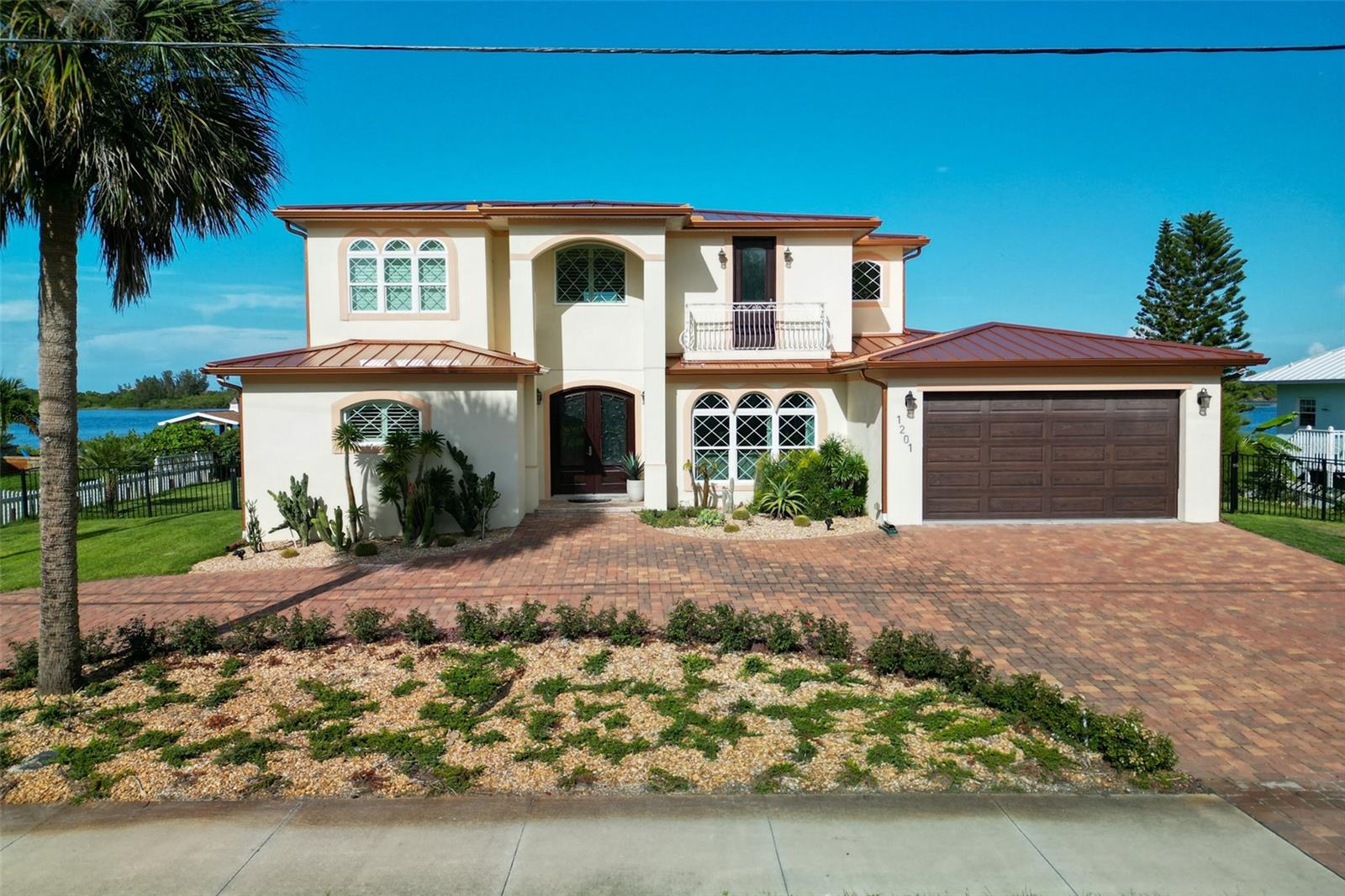 Direct Intracoastal 4 bedroom, 3.5 bath home with deepwater dock and pool, custom built in 2020. Classy modern design with recessed ceilings, tile and wood floors, nice touches like an abalone-shell tiled splash wall in the living room, quartz breakfast bar and counter in the kitchen with gas stove and walk-in pantry. The primary suite is located on the main floor and features a luxurious bath with tub and separate steam shower. All but one of the guest bedrooms have outstanding Intracoastal views and share a riverfront balcony and one has a private bath. Upstairs family room has river views and is presently used as a game room. Custom lighting and window treatments in most rooms. Enjoy the heated salt water pool year round or watch the action from the covered lanai or the river deck. Covered dock with 15,000 lb lift. Located just minutes from the lagoon or about 7 miles to the Inlet if you want to head off shore. Access the backwaters for serene kayak and SUP paddling from Dick’s cut just half mile south. There’s enough room on the side yard to store your boat trailer. Impact windows throughout. Natural gas supplies the stove and tankless water heaters. Furnishings and some décor can be negotiated separately.