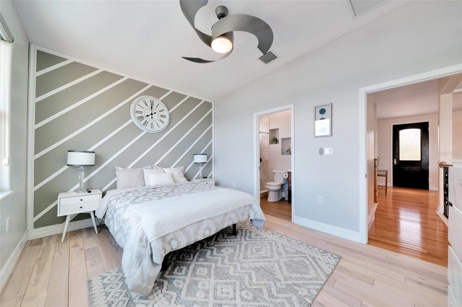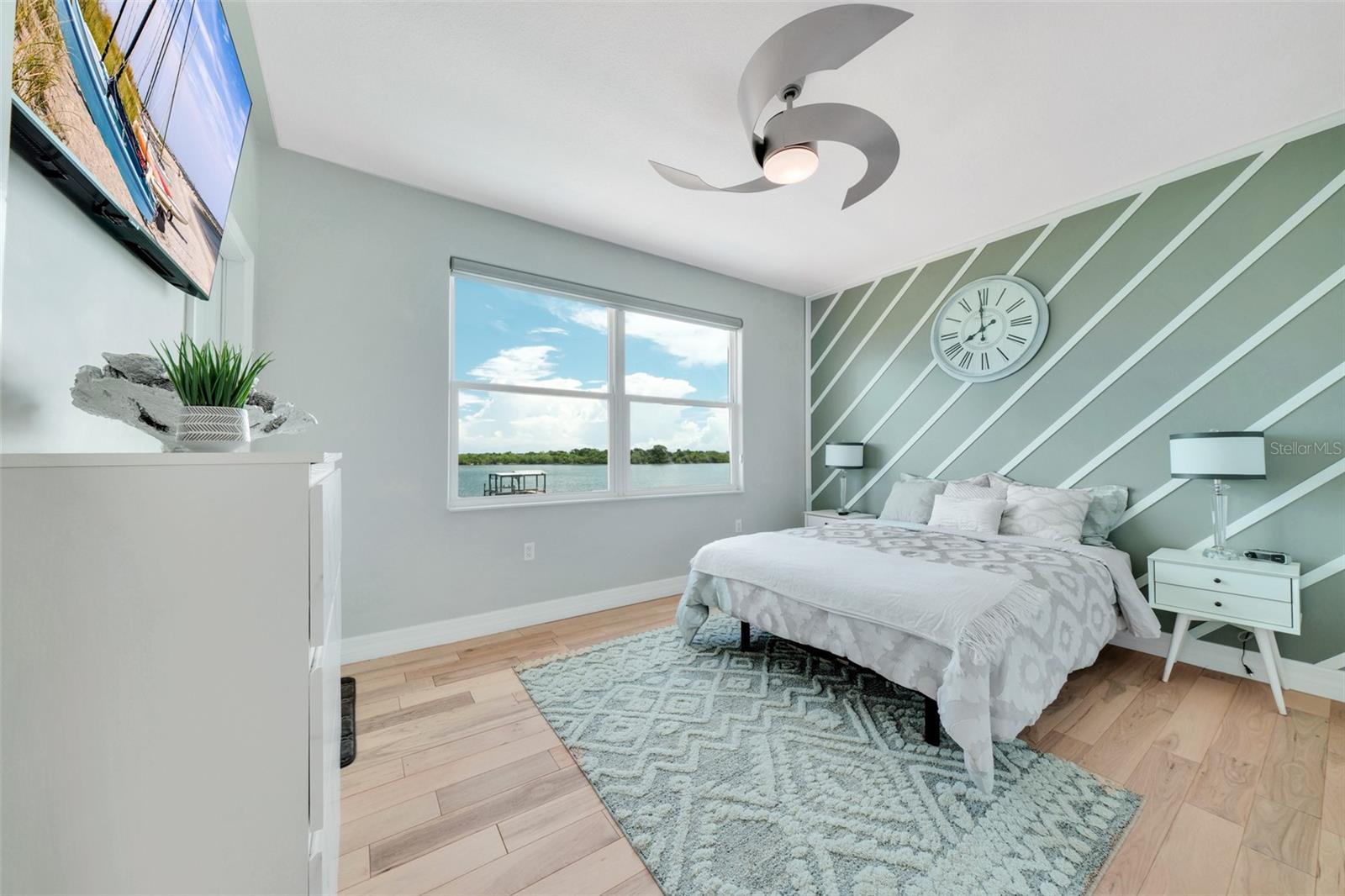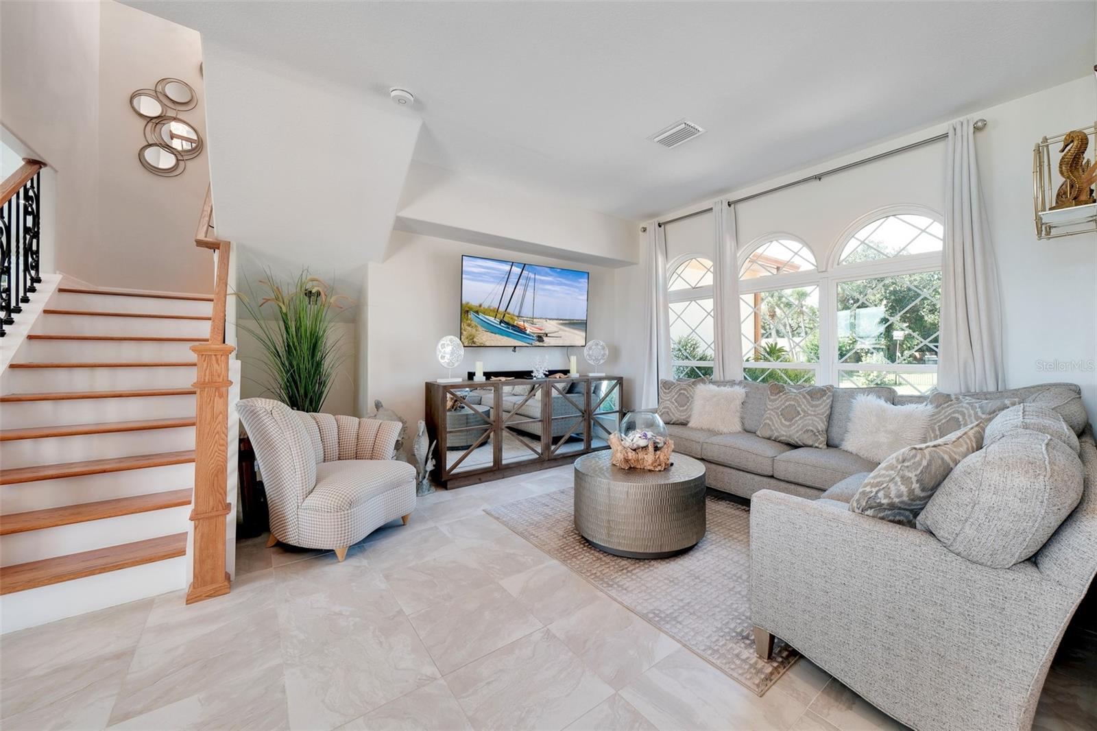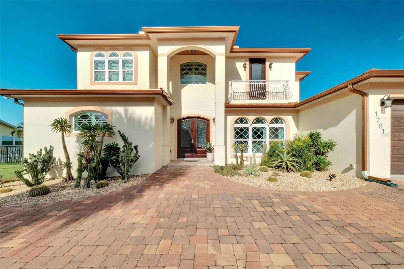 Direct Intracoastal 4 bedroom, 3.5 bath home with deepwater dock and pool, custom built in 2020. Classy modern design with recessed ceilings, tile and wood floors, nice touches like an abalone-shell tiled splash wall in the living room, quartz breakfast bar and counter in the kitchen with gas stove and walk-in pantry. The primary suite is located on the main floor and features a luxurious bath with tub and separate steam shower. All but one of the guest bedrooms have outstanding Intracoastal views and share a riverfront balcony and one has a private bath. Upstairs family room has river views and is presently used as a game room. Custom lighting and window treatments in most rooms. Enjoy the heated salt water pool year round or watch the action from the covered lanai or the river deck. Covered dock with 15,000 lb lift. Located just minutes from the lagoon or about 7 miles to the Inlet if you want to head off shore. Access the backwaters for serene kayak and SUP paddling from Dick’s cut just half mile south. There’s enough room on the side yard to store your boat trailer. Impact windows throughout. Natural gas supplies the stove and tankless water heaters. Furnishings and some décor can be negotiated separately.
