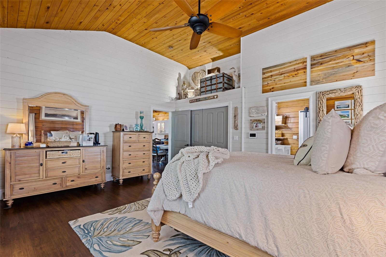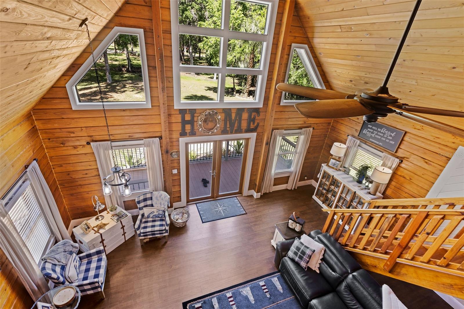 This single-family cabin is a dream retreat, offering a perfect blend of comfort, nature, and convenience. Nestled on a sprawling 2.5+/-acre property, this captivating cabin offers an idyllic escape from the hustle and bustle of city life. Built in 2005 from naturally dense Southern Cypress, the cabin exudes rustic charm and timeless elegance. As you approach, you're greeted by the sight of ancient Oak Trees and meticulously landscaped grounds, creating a serene ambiance. The cabin boasts a private pond and a quaint private beach, outdoor kitchen with electric and water, perfect for peaceful moments of relaxation or outdoor gatherings with friends and family. Stepping inside through the front French doors, you're welcomed into an inviting open floor plan with soaring ceilings and abundant natural light. The main level features a spacious living area, seamlessly flowing into a gourmet kitchen equipped with beautiful quartz countertops, natural wood cabinets, and a convenient breakfast bar. The separate dining area overlooks the beautiful backyard enticing you to come out and enjoy the scenery. The main level also hosts the primary suite, offering unparalleled privacy and comfort. This suite features two walk-in closets and an ensuite bathroom updated with modern fixtures and finishes. Additionally, the main level includes two generously sized bedrooms, an update hall bath, providing ample accommodation for guests or family members. Venture upstairs to discover a charming loft area, ideal for use as a cozy retreat or additional living space. This loft area boasts a generous screened porch and a private bathroom, offering the perfect spot to unwind and enjoy the tranquil surroundings. For added convenience, the cabin boasts a two-car detached garage with an upstairs lounging area when wanting to escape, providing ample storage space and a versatile bonus space for various activities or relaxation. With its unique blend of rustic elegance, modern amenities, and picturesque surroundings, this one-of-a-kind cabin presents an exceptional opportunity to embrace the coveted country lifestyle. New Roof in 2023.