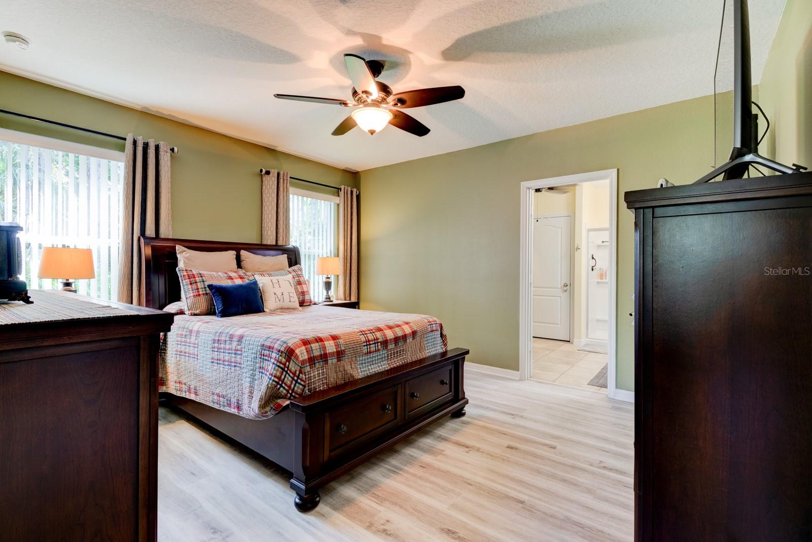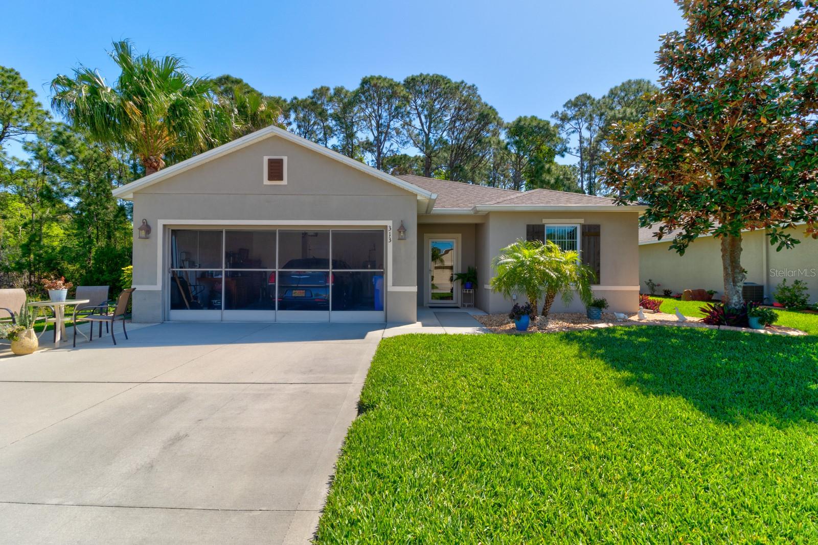 Welcome to this hidden treasure in quiet Edgewater Lakes! This beautiful 4 bedroom, 2 bathroom home was built in 2015, and has one owner! To the left of this home, you will find a preservation area allowing you privacy and no neighbors! As you enter, you will immediately feel the open concept. Luxury vinyl plank runs throughout the living space as well as kitchen, living area, and front and primary bedrooms. To the right, you will find the first of four bedrooms. There is plenty of natural light through the large window, perfect for a home office or play room! The flow of this floor plan is amazing. Imagine entertaining guests and family in this spacious kitchen and living area surrounding the kitchen. There is ample counter space for food prep and meal presentation at the large island where the sink is situated as well as extra seating. The granite countertops pair so well with the Espresso cabinets and black appliances (dishwasher is new!). Family room overlooks the private backyard and natural preserve that will not be disturbed! Bring your family and friends for a visit with two more guest bedrooms and a guest bathroom in between that features granite topped vanity and shower/tub. Primary bedroom is situated in the back of the house with a window overlooking beautiful trees. There is a large walk in closet and double sink vanity in the primary bathroom. Some added features of this home include irrigation system with deep well, garage screen doors and an extended paver area off of garage (perfect for relaxing and enjoying a quiet evening). Edgewater Lakes is close to grocery shopping, dining, parks and only 15 minutes to the beach.