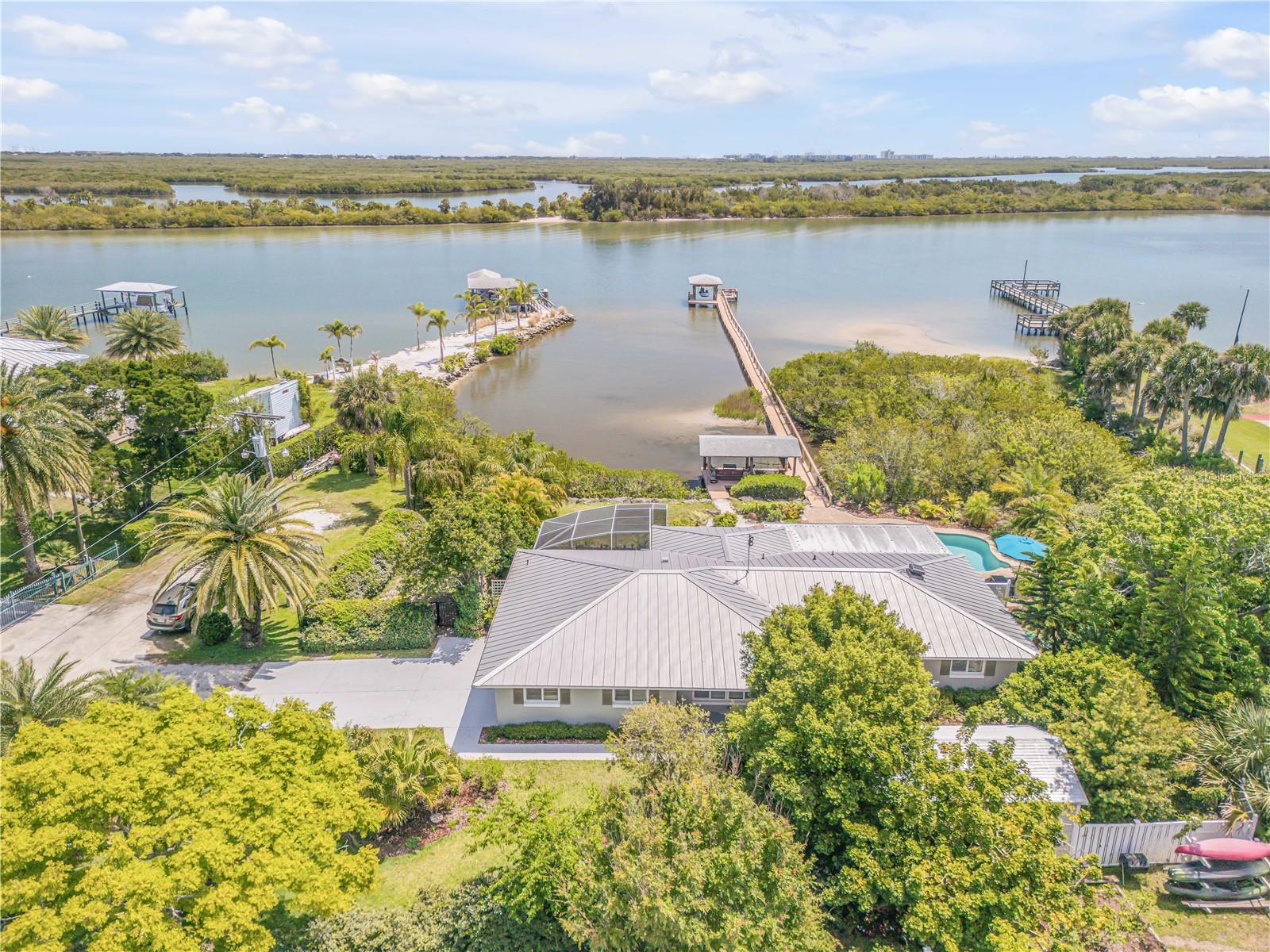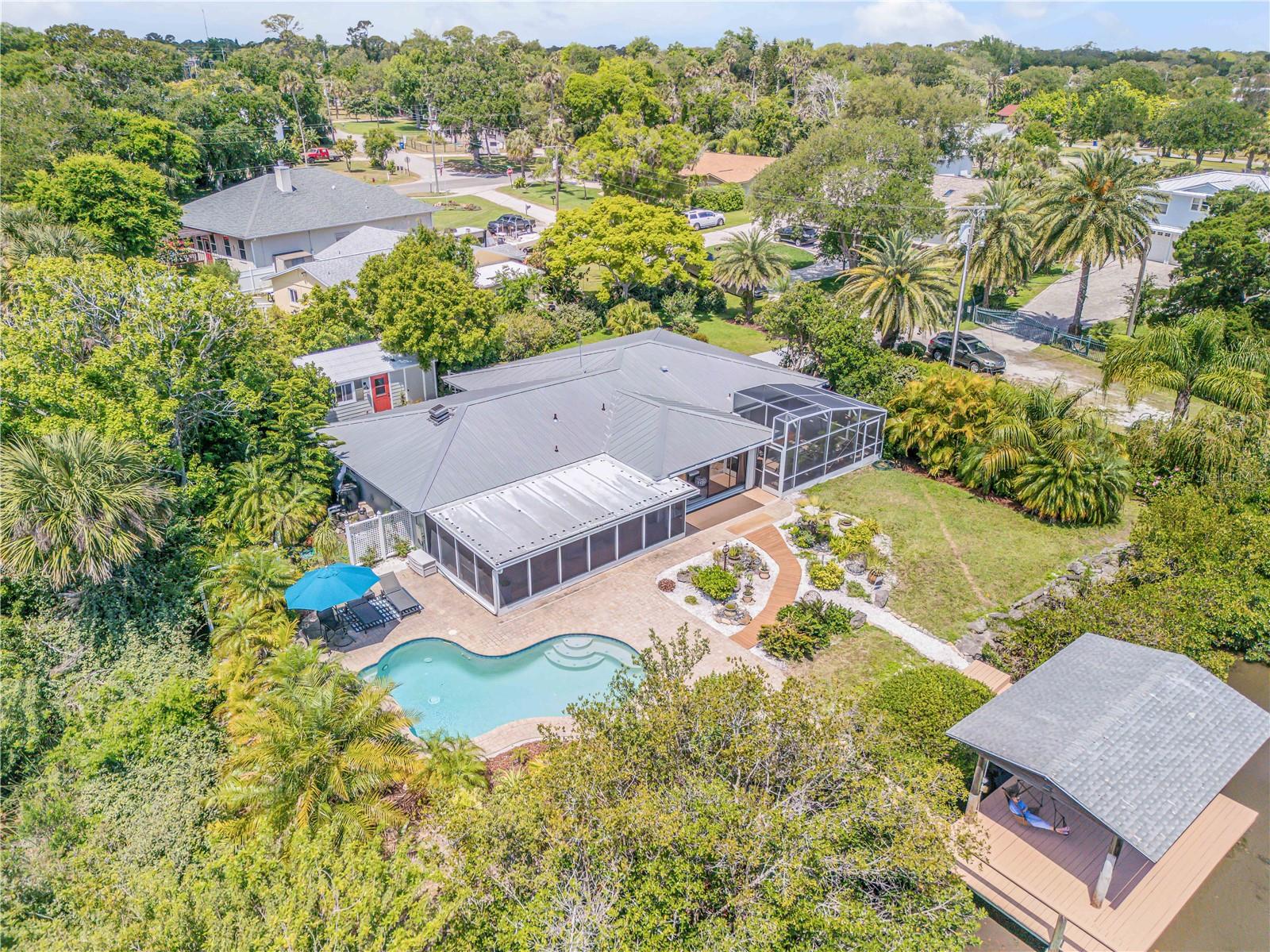 Camp Lagoon for sale. This unique waterfront private home in the ICW in the New Smyrna Beach area on the Northern Indian River Lagoon is a nature lovers dream. This is a unique and beautiful 3 bedroom 2 bathroom waterfront pool home with a deep water dock and a detached air conditioned guest cottage/workshop. Completely private back yard with lush landscaping and a natural living shoreline with 3 different mangrove species. The dock and boat lift allow easy access to flats fishing in Northern Indian river Lagoon or the Atlantic Ocean. You will find 65 species of birds and counting, and many species of fish caught right off the dock including redfish, tarpon, snook, speckled sea trout and many more. This home is perfect for your primary residence, vacation home, or investment property allowing for short term rentals and only about a 6 mile drive to the beach. Tile floors throughout, gorgeous wood cabinetry, ample granite counter space and 2 separate screened in porches with amazing sunrise and rocket launch views over the intracoastal. Camp Lagoon has a living shoreline covered with mangroves, mud flats, sand bars and oysters and clams creating a unique habitat that attracts birds, fish, turtles, crabs, dolphins and manatees. The rest of the private yard is covered with many species of plants, bushes and trees that attract many birds and butterflies. Jump in the pool after a morning of flats fishing. You have to see this special property in person.