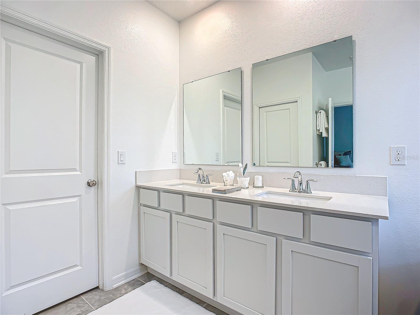Stunning Contemporary Lennar Home with Elegant Touches. Welcome to your dream home! This magnificent 2024 residence offers a harmonious blend of modern design and timeless elegance, providing an unparalleled living experience. Nestled in a sought-after neighborhood, this 2 story property boasts 5 spacious bedrooms, 3 luxurious bathrooms, and an array of modern features that cater to both comfort and style. Discover the epitome of luxurious living at The Parks at Edgewater, where modern amenities meet breathtaking natural beauty. As you enter the home, you'll be greeted by soaring high ceilings and an open-concept floor plan that exudes grandeur. The expansive great room, with its oversized windows, bathes in natural light, creating a warm and inviting atmosphere. The gourmet kitchen is a chef’s paradise, featuring top-of-the-line stainless steel appliances, sleek quartz countertops, and a large central island ideal for both cooking and entertaining. Adjacent to the kitchen, the elegant dining area is perfect for hosting dinners and gatherings. The home also features ceramic tile flooring throughout, offering both elegance and practicality. The seamless flow of tile from room to room creates a clean, modern look ensuring durability and easy maintenance. The luxurious primary suite is a serene retreat, complete with a spacious walk-in closet and a spa-like en-suite bathroom. The bathroom showcases a soaking tub, a beautiful walk-in shower, and dual vanities with chic fixtures. Don't forget the second floor laundry room! In addition to the five beautifully appointed bedrooms, this home includes a versatile office space with floor to ceiling custom built in cabinets, its ideal for remote work or personal projects, and a cozy den that provides a perfect spot for relaxation or family activities. Step outside to discover a meticulously landscaped backyard, offering a private oasis for outdoor entertaining. The oversized covered patio is perfect for an outside kitchen and perfect dining and gatherings. For your peace of mind, the property is equipped with hurricane shutters and an iron & rod fence in the backyard which backs up to a conservation area, the back yard is fully fenced in. With its thoughtful design and attention to detail, this home perfectly combines modern luxury with everyday functionality, making it the ideal haven for your family. Experience the epitome of contemporary living in this exceptional 2024 home, where every detail has been crafted to perfection. Step outside your door and enjoy an array of amenities designed for both relaxation and recreation. The community features a vibrant playground for the little ones, a state-of-the-art pickleball court, a basketball court for friendly matches, and a dedicated dog park where your furry friends can play freely. Call for a showing today and Welcome Home!