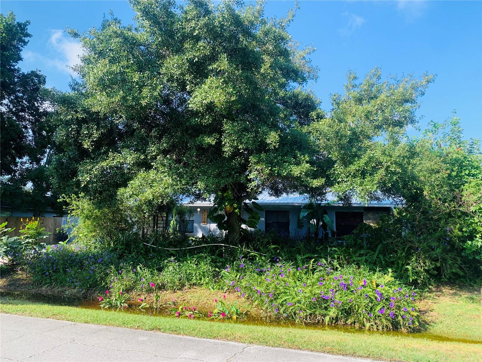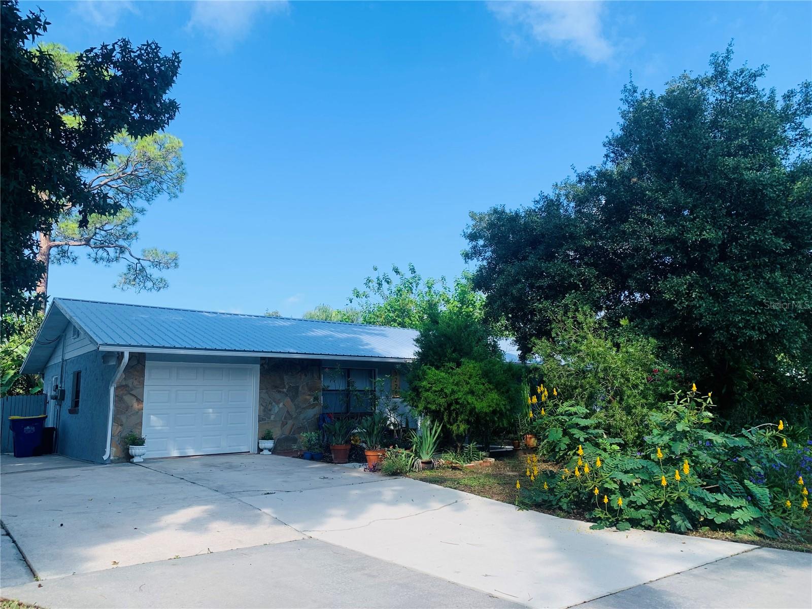THIS DWELLING HAS A NEWLY INSTALLED METAL ROOF (MAY 2024) THAT SHELTERS APPROXIMATELY 1,260 SF OF HVAC'D SPACE. THE HOME ENCOMPASSES 3 BEDROOMS AND 2 BATHROOMS WITH CERAMIC TILE FLOORING INSTALLED ALL THROUGHOUT THE ENTIRE SUBJECT INCLUDING THE LARGE FLORIDA ROOM THAT IS ACCESSED THROUGH THE FRENCH DOORS BY THE KITCHEN & DINING AREA, WHICH IS HVAC'D AS WELL. THERE IS A LARGE SINGLE CAR ENCLOSED GARAGE WITH LAUNDRY HOOK-UPS AND ADDITIONAL SPACE ON THE SOUTH SIDE OF THE HOME'S EXTERIOR TO PARK A BOAT, RV/TRAILER OR OTHER TYPE VEHICLE. THERE IS A WOODEN STORAGE SHED LOCATED WITHIN THE REAR YARD AREA THAT CAN BE USED FOR YARD TOOLS AND/OR UTILITY PURPOSES. THE PROPERTY'S LANDSCAPING OFFERS DIFFERENT TYPES OF VARIETIES OF GARDEN PLANTS AND FLOWERS THAT SURROUND THE ENTIRE HOME CREATING SEVERAL PRIVATE OUTDOOR SETTINGS. THE FRONT OF THE HOME MAINTAINS TWO SEPARATE SEATING AREAS, ONE OF WHICH MAINTAINS A SMALL CIRCULATING POND FOR QUIET OUTDOOR SPACE.