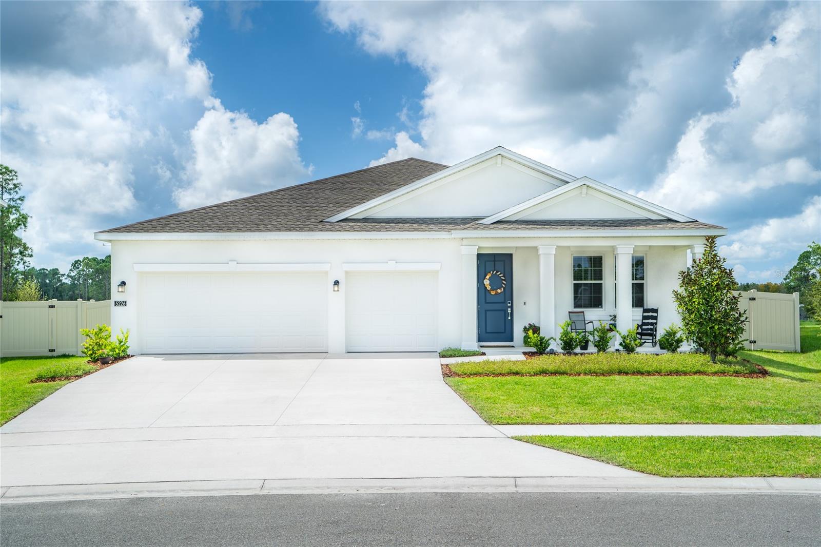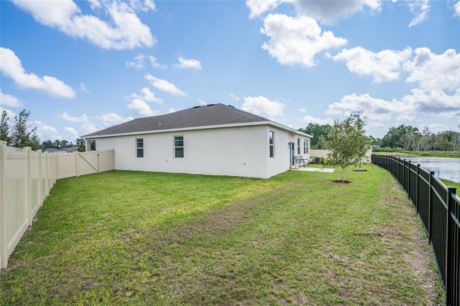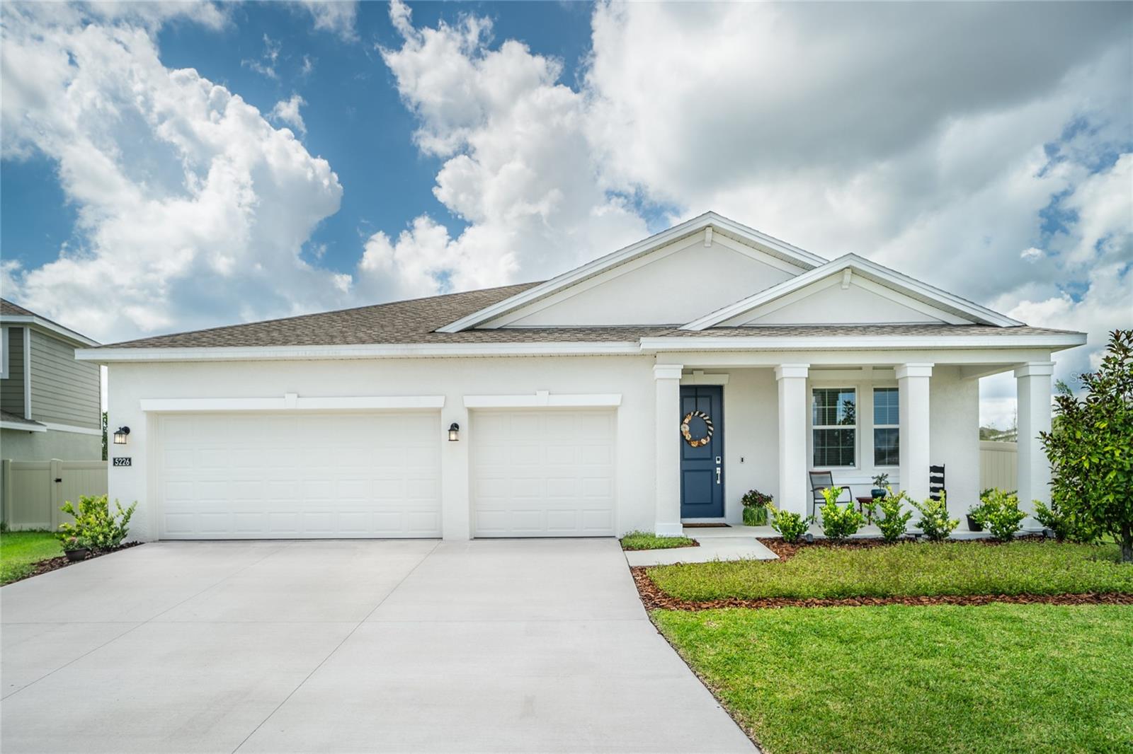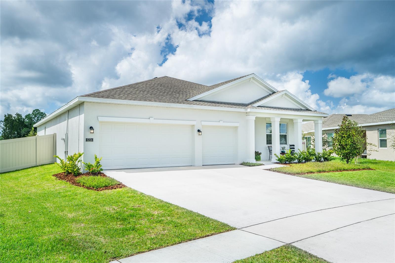 One or more photo(s) has been virtually staged. This single-story 2024 built home features 4-bedrooms, 2-baths, a 3-car garage, pond views, and a fenced backyard. Perfectly blending comfort, style, and functionality, this home offers the ideal retreat for those seeking a move-in-ready home with no projects! This beautifully designed Lennar home offers a split floor plan to ensure privacy and comfort for all. Step inside to a bonus room that serves as the perfect office space then continue to the open kitchen, dining, and living room. The family chef will fall in love with the well-appointed kitchen showcasing quartz countertops, stainless steel appliances, a pantry, and ample seating around the island. The kitchen overlooks the dining area and spacious family room, where abundant windows and sliders frame views of the backyard and pond. Additional highlights include: hurricane shutters, elongated toilets, 2” faux window blinds, ceramic tile flooring in the main living areas, an irrigation system, a garage door opener, a honeywell programmable thermostat, Low-E windows, Taexx built-in pest control system, and a luxurious primary suite featuring dual vanities and a large walk-in closet. Low HOA dues of $87/month include the internet, dog park, pickleball courts, playground, streetlights, dock and picnic area, and basketball court. The Lennar Home Warranty in place is transferrable to the new buyer. This move-in-ready home has everything you could want and more! Schedule your tour today and make 5226 Hophorn your new home sweet home!