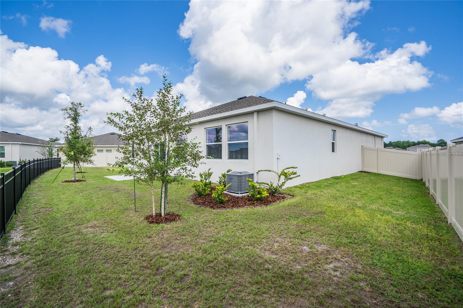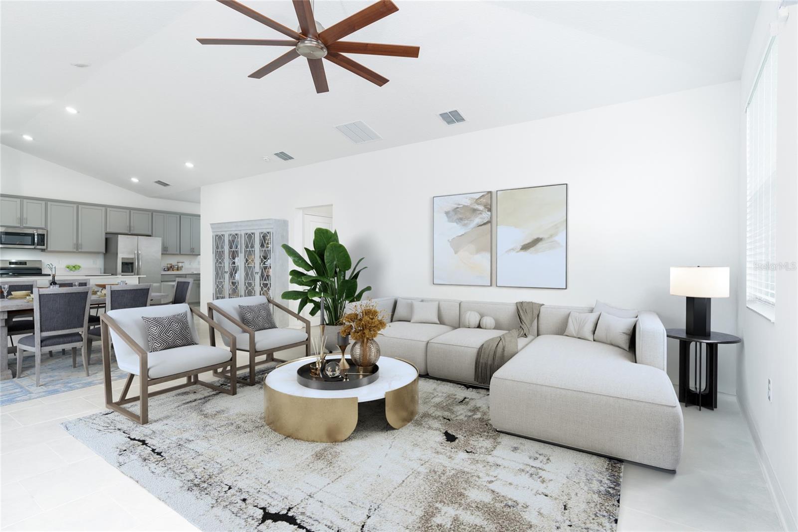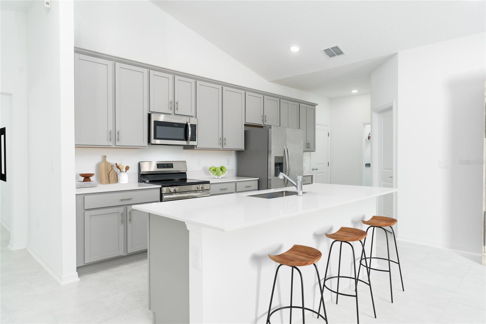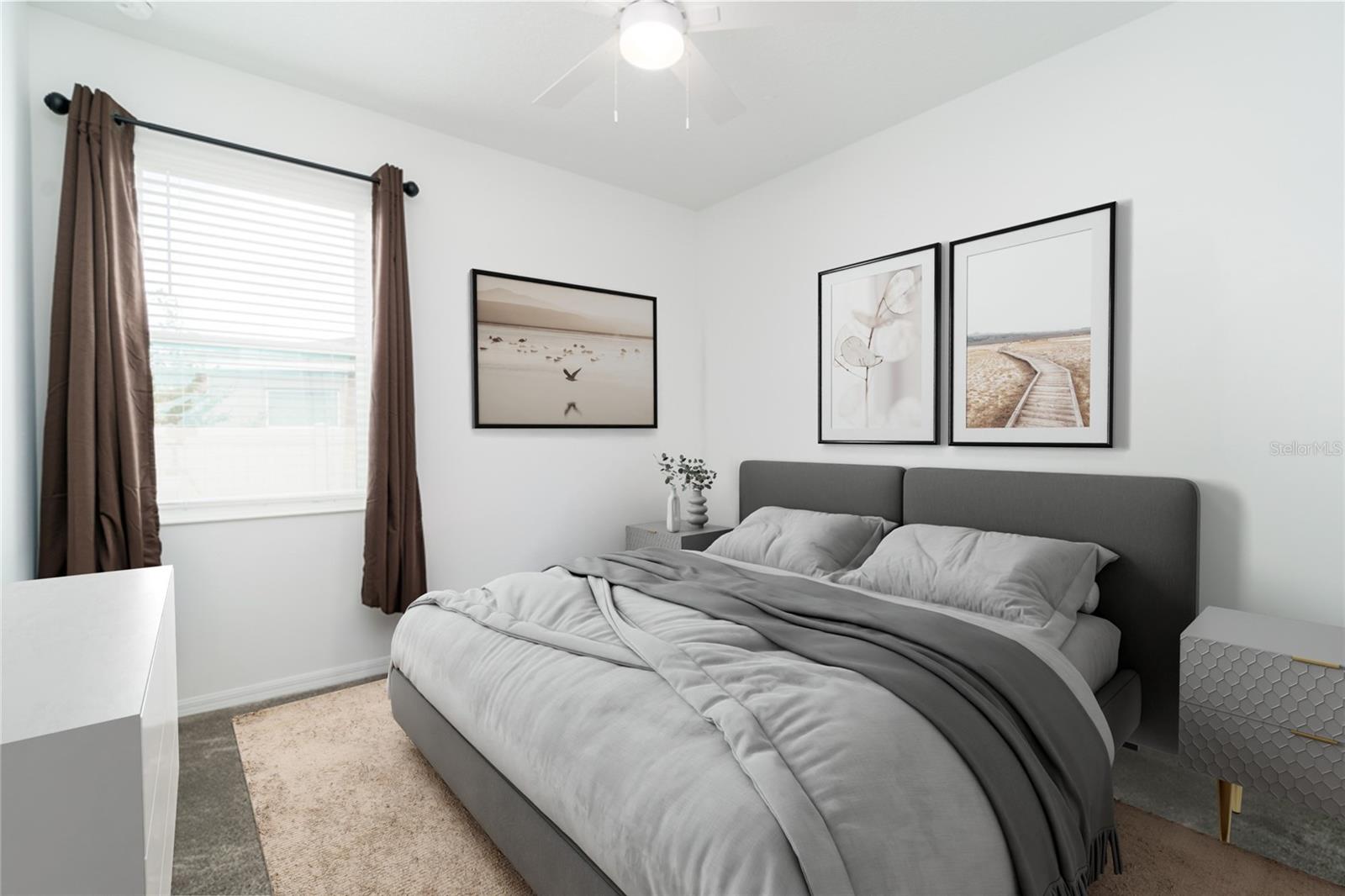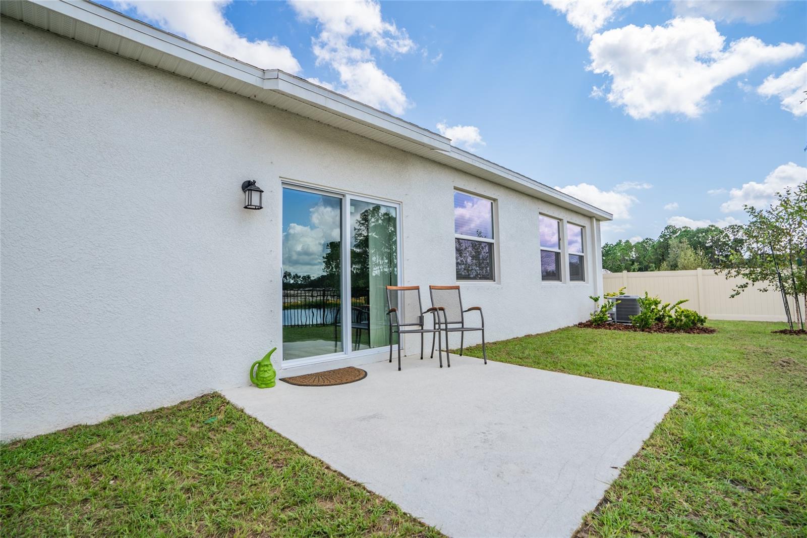 One or more photo(s) has been virtually staged. This single-story 2024 built home features 4-bedrooms, 2-baths, a 3-car garage, pond views, and a fenced backyard. Perfectly blending comfort, style, and functionality, this home offers the ideal retreat for those seeking a move-in-ready home with no projects! This beautifully designed Lennar home offers a split floor plan to ensure privacy and comfort for all. Step inside to a bonus room that serves as the perfect office space then continue to the open kitchen, dining, and living room. The family chef will fall in love with the well-appointed kitchen showcasing quartz countertops, stainless steel appliances, a pantry, and ample seating around the island. The kitchen overlooks the dining area and spacious family room, where abundant windows and sliders frame views of the backyard and pond. Additional highlights include: hurricane shutters, elongated toilets, 2” faux window blinds, ceramic tile flooring in the main living areas, an irrigation system, a garage door opener, a honeywell programmable thermostat, Low-E windows, Taexx built-in pest control system, and a luxurious primary suite featuring dual vanities and a large walk-in closet. Low HOA dues of $87/month include the internet, dog park, pickleball courts, playground, streetlights, dock and picnic area, and basketball court. The Lennar Home Warranty in place is transferrable to the new buyer. This move-in-ready home has everything you could want and more! Schedule your tour today and make 5226 Hophorn your new home sweet home!