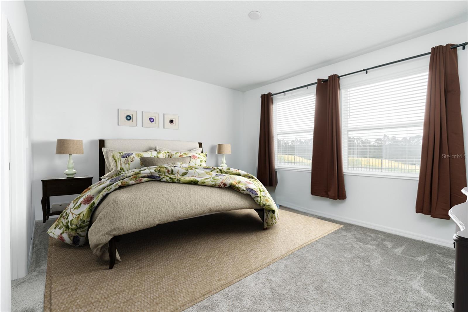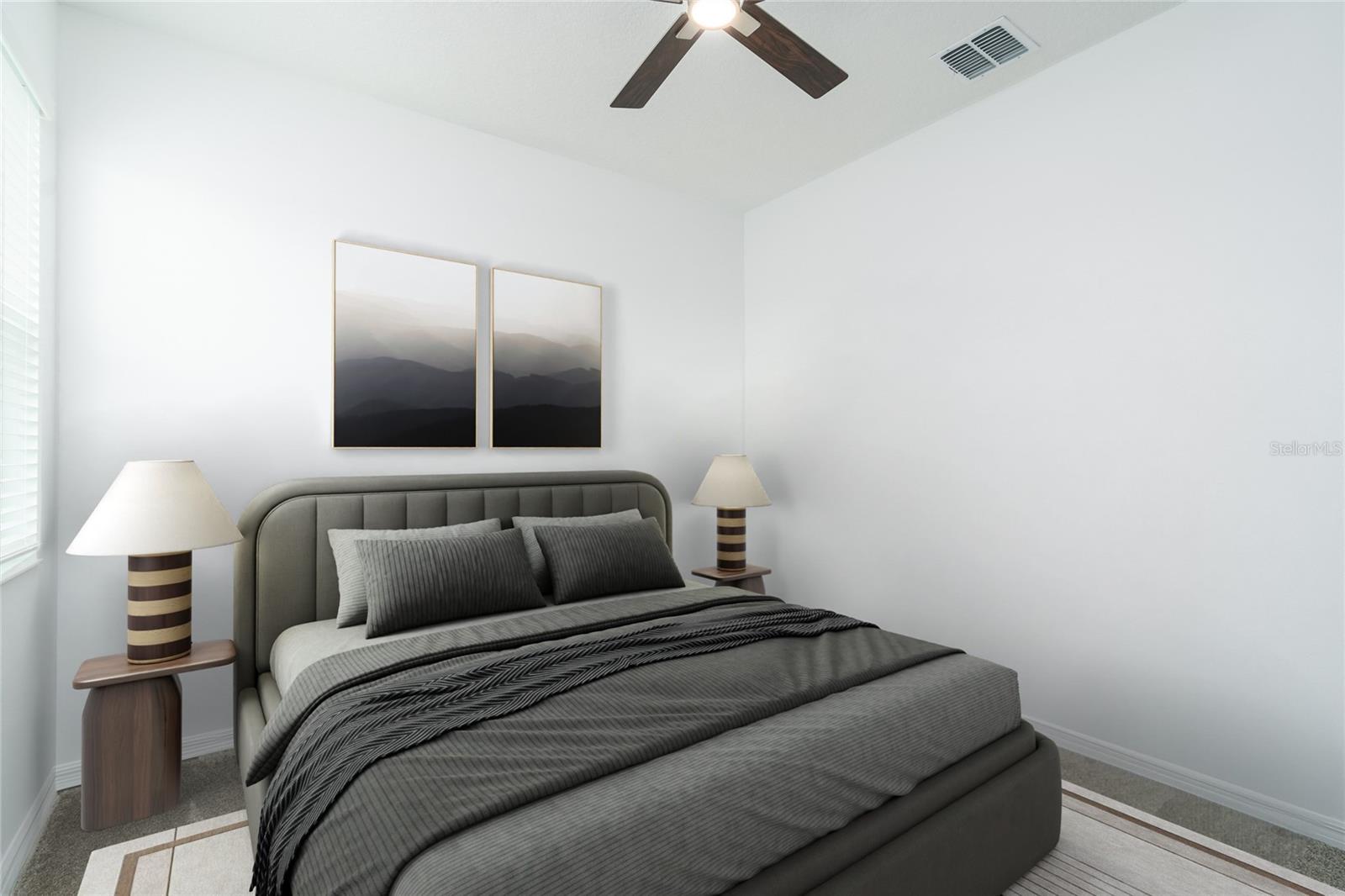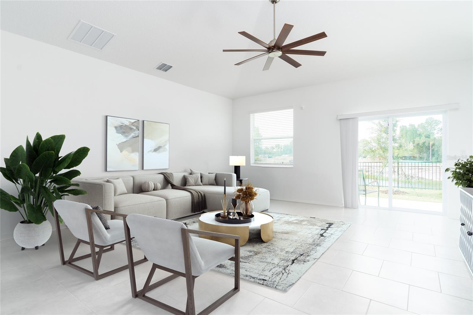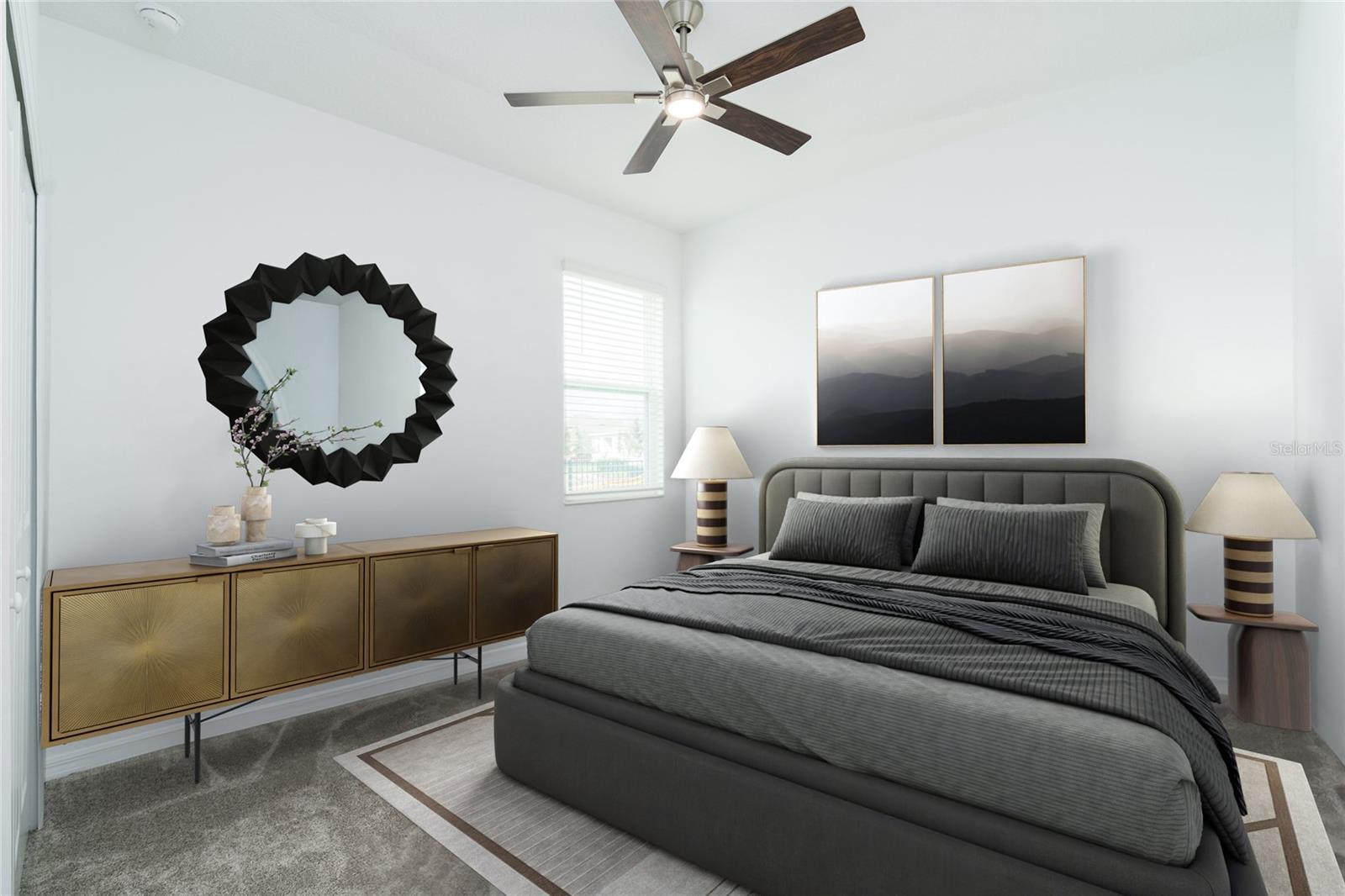 One or more photo(s) has been virtually staged. This single-story 2024 built home features 4-bedrooms, 2-baths, a 3-car garage, pond views, and a fenced backyard. Perfectly blending comfort, style, and functionality, this home offers the ideal retreat for those seeking a move-in-ready home with no projects! This beautifully designed Lennar home offers a split floor plan to ensure privacy and comfort for all. Step inside to a bonus room that serves as the perfect office space then continue to the open kitchen, dining, and living room. The family chef will fall in love with the well-appointed kitchen showcasing quartz countertops, stainless steel appliances, a pantry, and ample seating around the island. The kitchen overlooks the dining area and spacious family room, where abundant windows and sliders frame views of the backyard and pond. Additional highlights include: hurricane shutters, elongated toilets, 2” faux window blinds, ceramic tile flooring in the main living areas, an irrigation system, a garage door opener, a honeywell programmable thermostat, Low-E windows, Taexx built-in pest control system, and a luxurious primary suite featuring dual vanities and a large walk-in closet. Low HOA dues of $87/month include the internet, dog park, pickleball courts, playground, streetlights, dock and picnic area, and basketball court. The Lennar Home Warranty in place is transferrable to the new buyer. This move-in-ready home has everything you could want and more! Schedule your tour today and make 5226 Hophorn your new home sweet home!