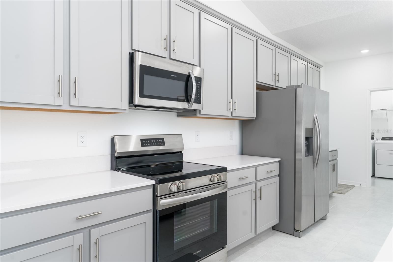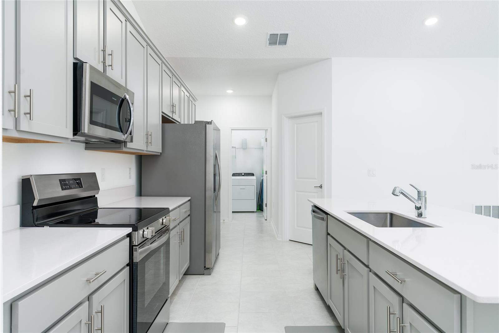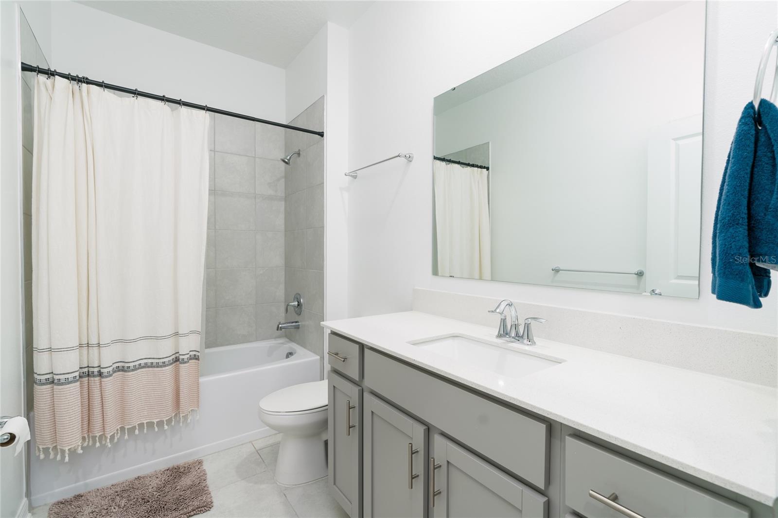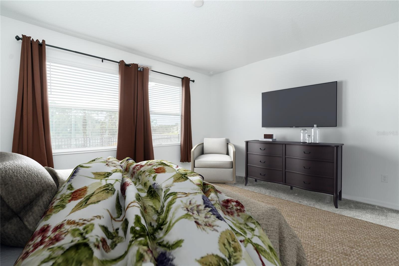 One or more photo(s) has been virtually staged. This single-story 2024 built home features 4-bedrooms, 2-baths, a 3-car garage, pond views, and a fenced backyard. Perfectly blending comfort, style, and functionality, this home offers the ideal retreat for those seeking a move-in-ready home with no projects! This beautifully designed Lennar home offers a split floor plan to ensure privacy and comfort for all. Step inside to a bonus room that serves as the perfect office space then continue to the open kitchen, dining, and living room. The family chef will fall in love with the well-appointed kitchen showcasing quartz countertops, stainless steel appliances, a pantry, and ample seating around the island. The kitchen overlooks the dining area and spacious family room, where abundant windows and sliders frame views of the backyard and pond. Additional highlights include: hurricane shutters, elongated toilets, 2” faux window blinds, ceramic tile flooring in the main living areas, an irrigation system, a garage door opener, a honeywell programmable thermostat, Low-E windows, Taexx built-in pest control system, and a luxurious primary suite featuring dual vanities and a large walk-in closet. Low HOA dues of $87/month include the internet, dog park, pickleball courts, playground, streetlights, dock and picnic area, and basketball court. The Lennar Home Warranty in place is transferrable to the new buyer. This move-in-ready home has everything you could want and more! Schedule your tour today and make 5226 Hophorn your new home sweet home!