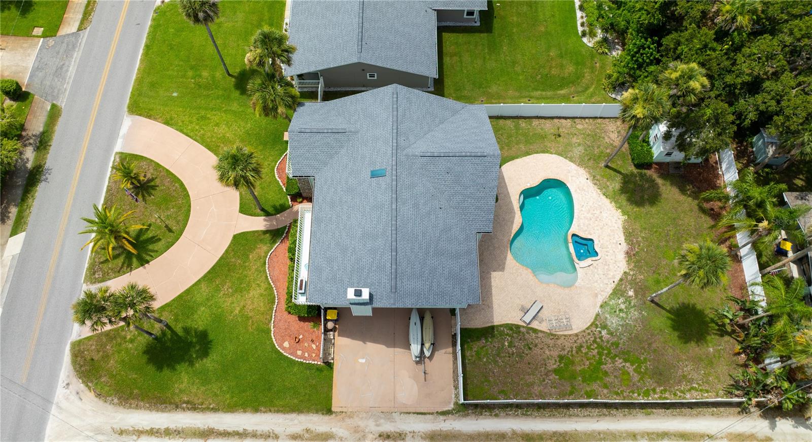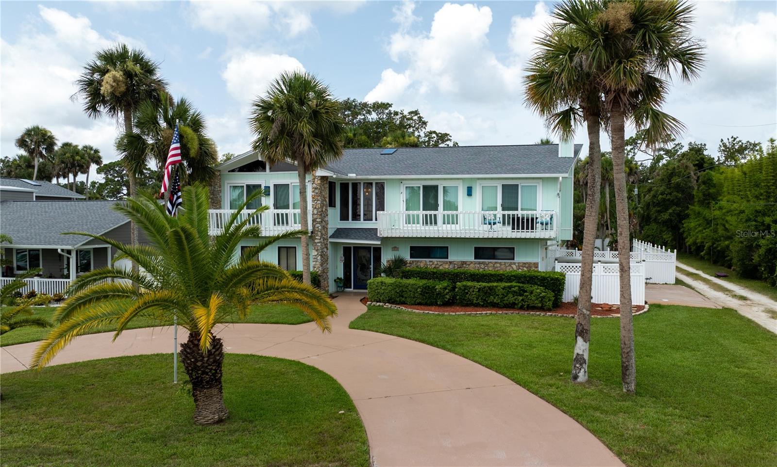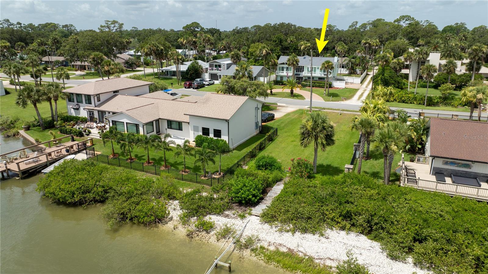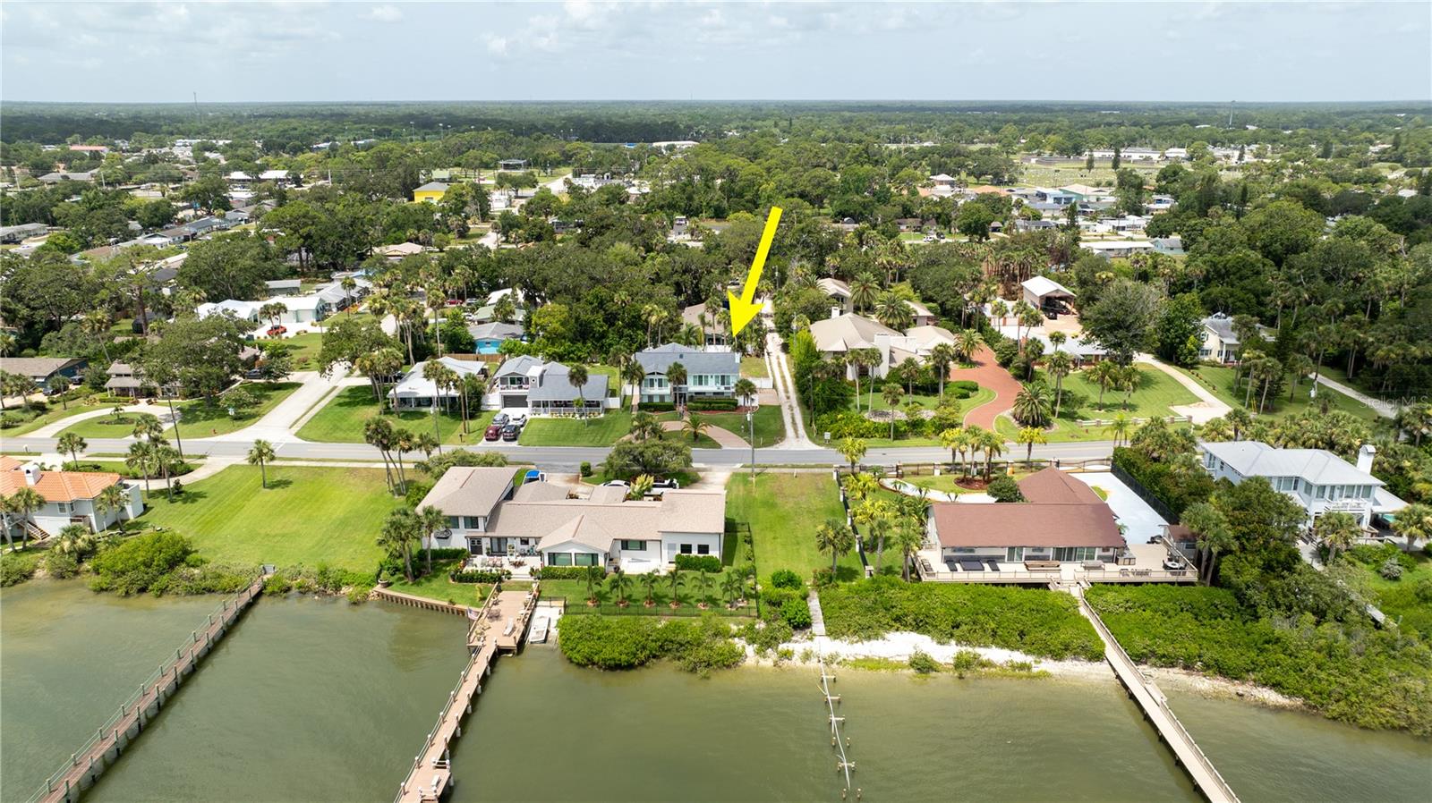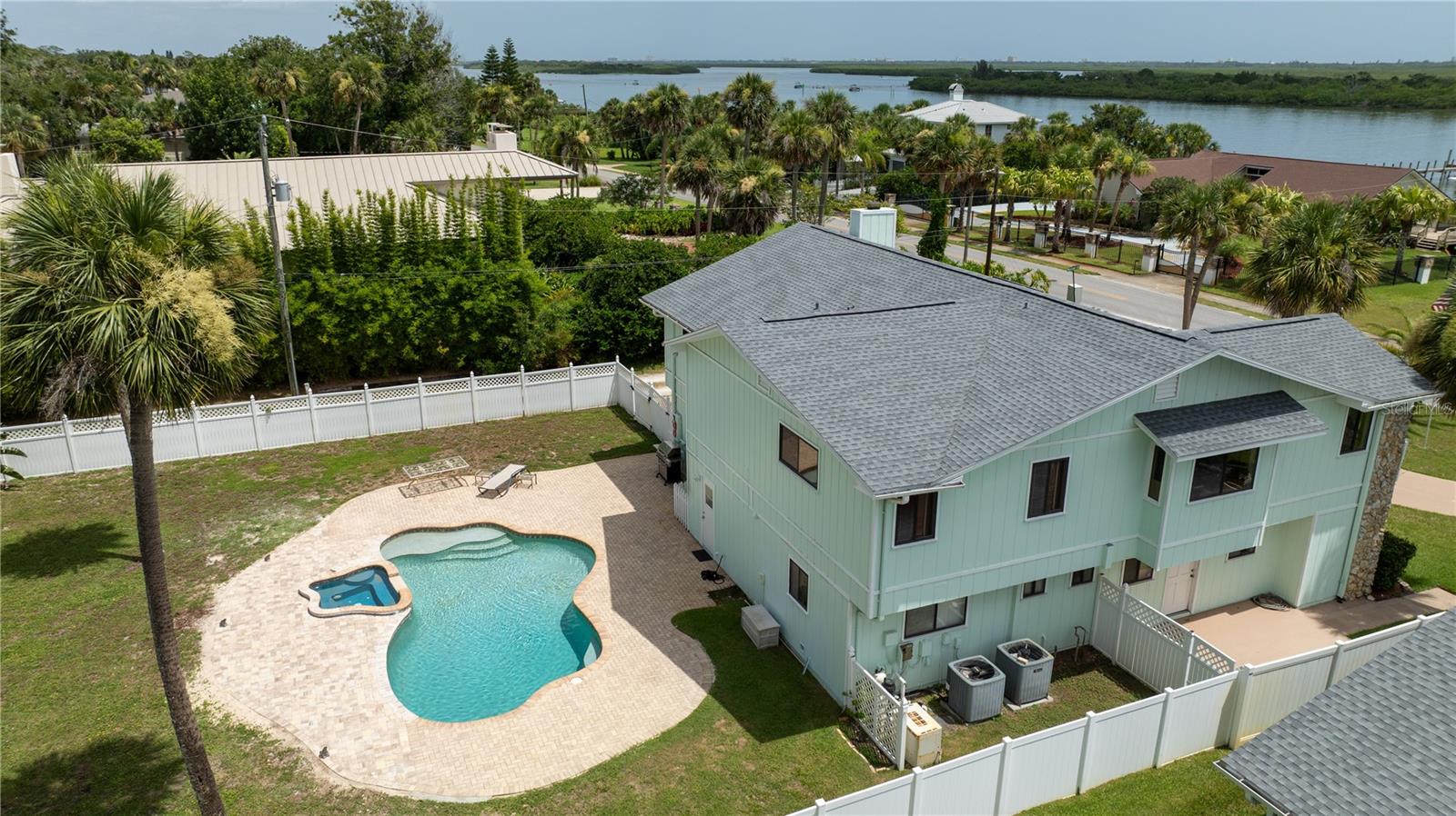 Price Improvement! This Riverside home has property that sits on both sides of Riverside Drive. The river views from the kitchen and living room of this over 3400 square foot gem are breathtaking. Over $13,600 in new pool equipment (pool and Spa heater, salt water system, multi speed pump, and more July 2025). Over $7000 in extended pavers around pool deck July 2025. New roof installed October 2023. Five newer hurricane rated sliding doors have been installed to accent the amazing views. The open floor plan is great for the Florida lifestyle and entertaining. Tongue and groove wood adorns the vaulted ceiling upstairs. The kitchen features a breakfast bar, plenty of solid wood cabinets, and solid surface counter tops. Enjoy your coffee on the upper deck watching the sunrises, mangroves, and yachts cruise by. Upstairs there is the expansive master with en-suite bath, granite counter tops, jetted garden tub, dual walk-in closets, walk-in dual head glass shower and dressing table, with separate enclosed commode. The upstairs is completed with a large dining area, huge living room, guest bath and a second bedroom. There are two more large bedrooms and a separate bonus room on the ground floor that could make a great in-law suite or fifth bedroom. There are two additional bathrooms down stairs. Exit the back door to the large back yard. The paver patio outside leads to the inground pool and spa, which are surrounded by a privacy fence and includes an outdoor shed. The horseshoe driveway can hold four cars in front of the home and the two car garage with a side entry allows space to park an additional 4 cars inside and outside the garage. The home provides all the benefits of living on the intercoastal river, yet gives you the privacy for family and friends to sit by the pool and entertain. This is a lot of square feet for the price. The Dock extends 200 feet into the intercoastal, but is not currently usable due to storm damage. Water: City
