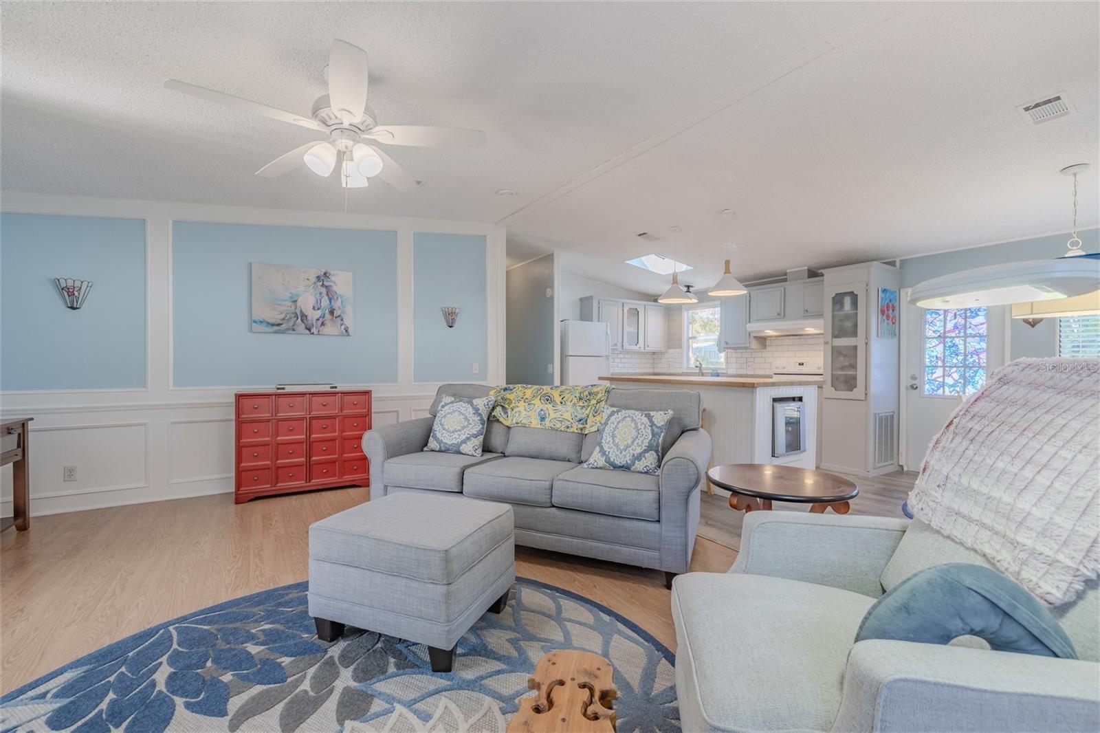 WHAT A DEAL! Fantastic lovely cozy home. Interior and exterior recently painted. Open Plan. Lots of light as well as a very relaxing room off the living room. 2 bay windows. Bench storage as you come in the door. Wainscoting throughout. Screen room on the side. Shed. Ride your bike to the pool or clubhouse. Or if you decide to rent the home after closing it is minimum 3 months. Community is on the intracoastal and 20 mins from the beach. Shopping center across the street. You own your land. HOA incudes your cable and internet as well as one outside storage for either a boat, kayak or RV when available. Just a few of the many amenities in this friendly community are resident intracoastal boat ramp, heated pool, screen hot tub, tennis, bocci, pickleball, shuffleboard, line dance classes, card games, bingo, book club, entertainment. RESORT LIVING EVERY DAY.