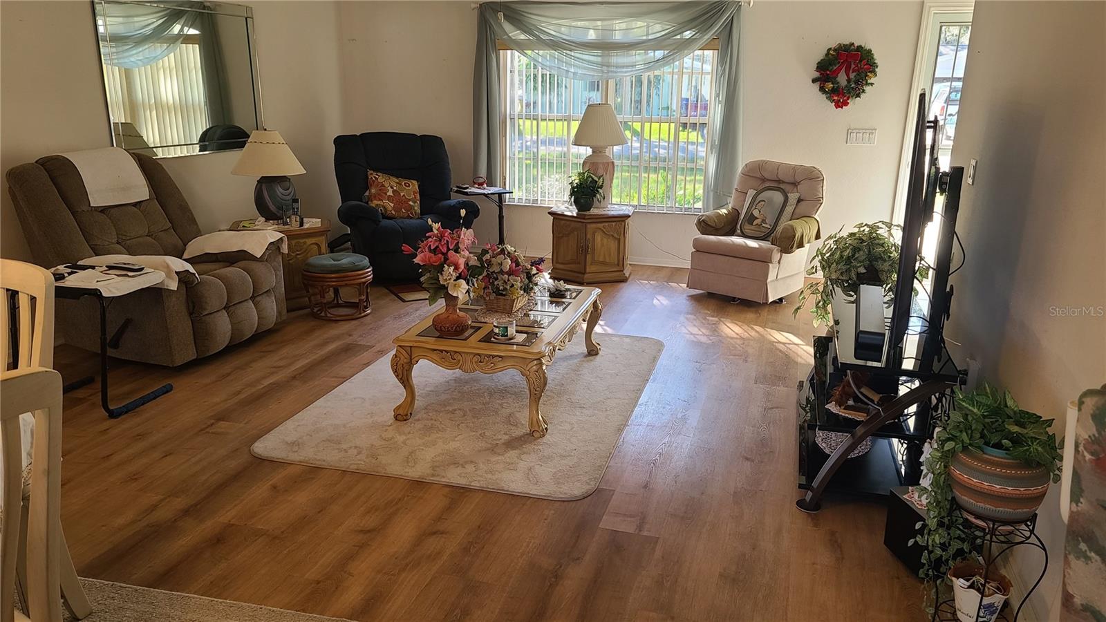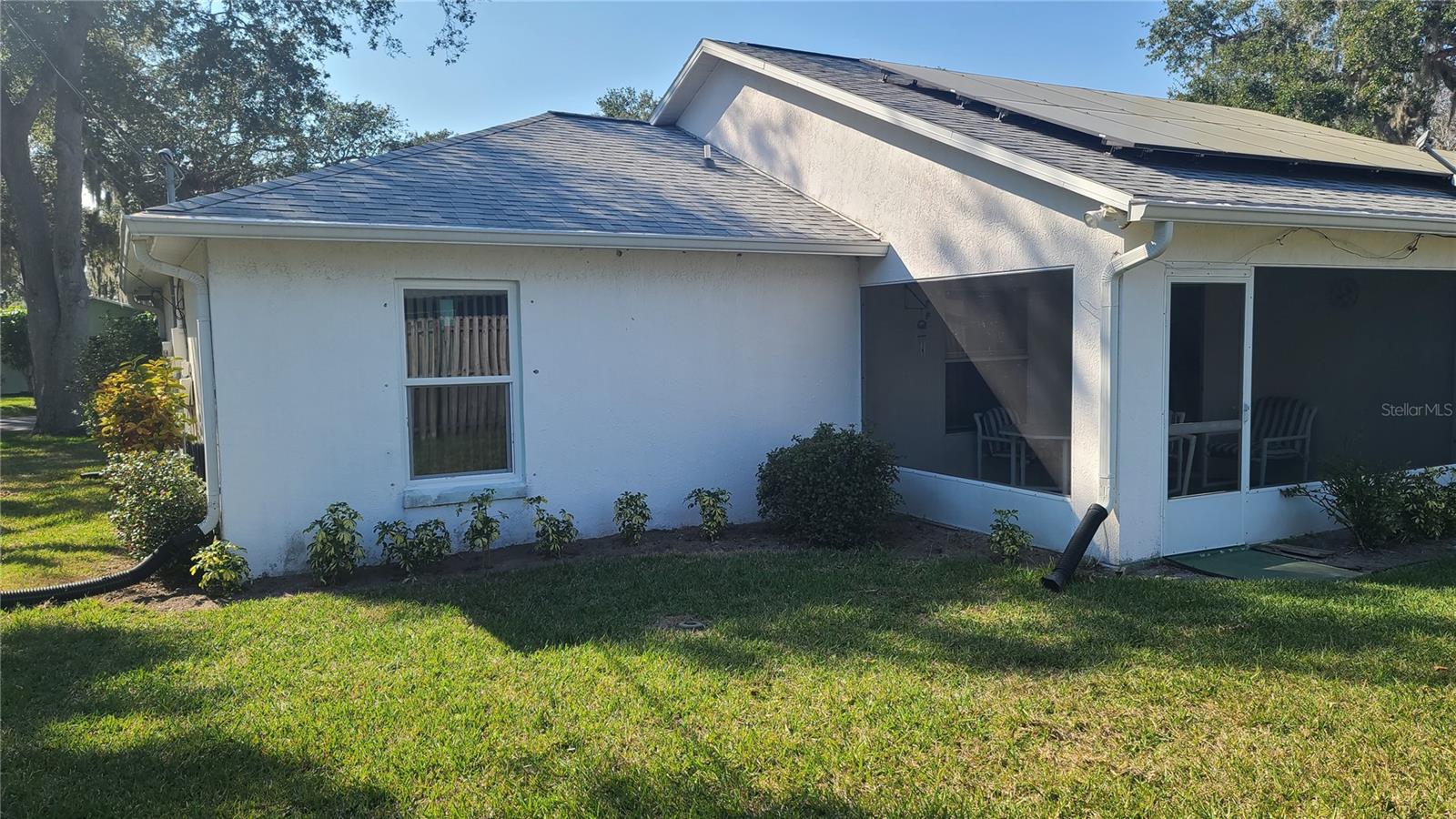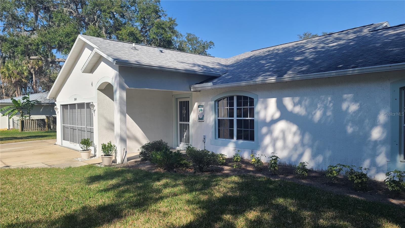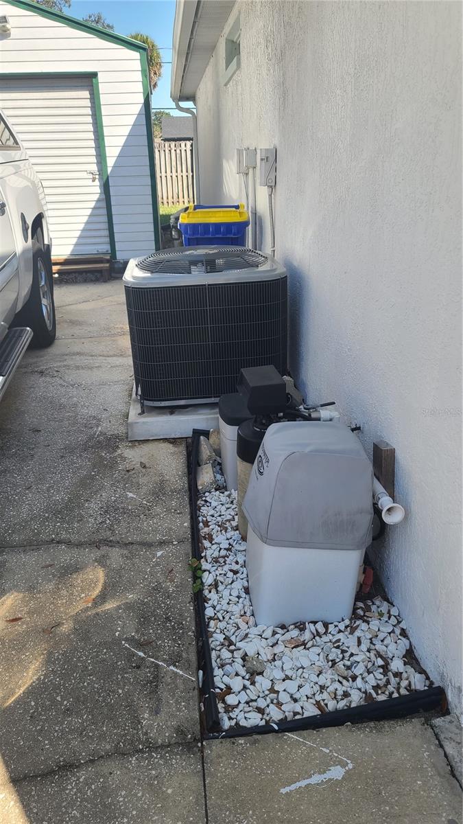 MAJOR PRICE REDUCTION - HIGHLY MOTIVATED SELLER! If you desire privacy between you and your neighbors, you will want this house. The home was built in the center of 4 adjacent lots, with a utility easement on the right side of the property, providing ample open space to enjoy peace and serenity on the 160’ by 100’ lot. Primary bedroom and bath are located on the left side of the home and 2 additional bedrooms with another bath are located on the right side of the home. The pros that come with purchasing this house include: 7 year old roof, 2 year old HVAC system, brand new hot water heater installed 3/19/25, waterproof rubber backed vinyl flooring installed in 2018, 2 system (salt and charcoal) whole house water softener system, Solar panels leased through IGS Energy since 2023. On 2/8/25 Sellers had 3 hurricane rated windows installed on the backside of the home to provide more protection from storm winds. Sellers had a pre-sale home inspection and pest inspection completed by Better Home Inspections on 2/7/25 to insure the home was ready for listing. The report will be made available to Buyers who present an acceptable contract. The cons associated with the sale of this property are the dated kitchen and bathrooms. Those areas will need your TLC to update them to your liking. Two sheds convey with the property. There is a 134 sq ft screened lanai where you can relax. A (2)two-car garage is attached to the home, with full garage door screen. For ample parking, there is an extended concrete driveway to accommodate 4 additional cars. Sellers are the original owners, who have spent 25+ years creating many happy memories in this home. Now it is your opportunity to do the same. Don't rule out this property until you see it. Although it could use some upgrading in the kitchen and bathrooms, the 4 lot plot of land is a rare find. Plenty of room to put in a pool, store your RV or other toys!