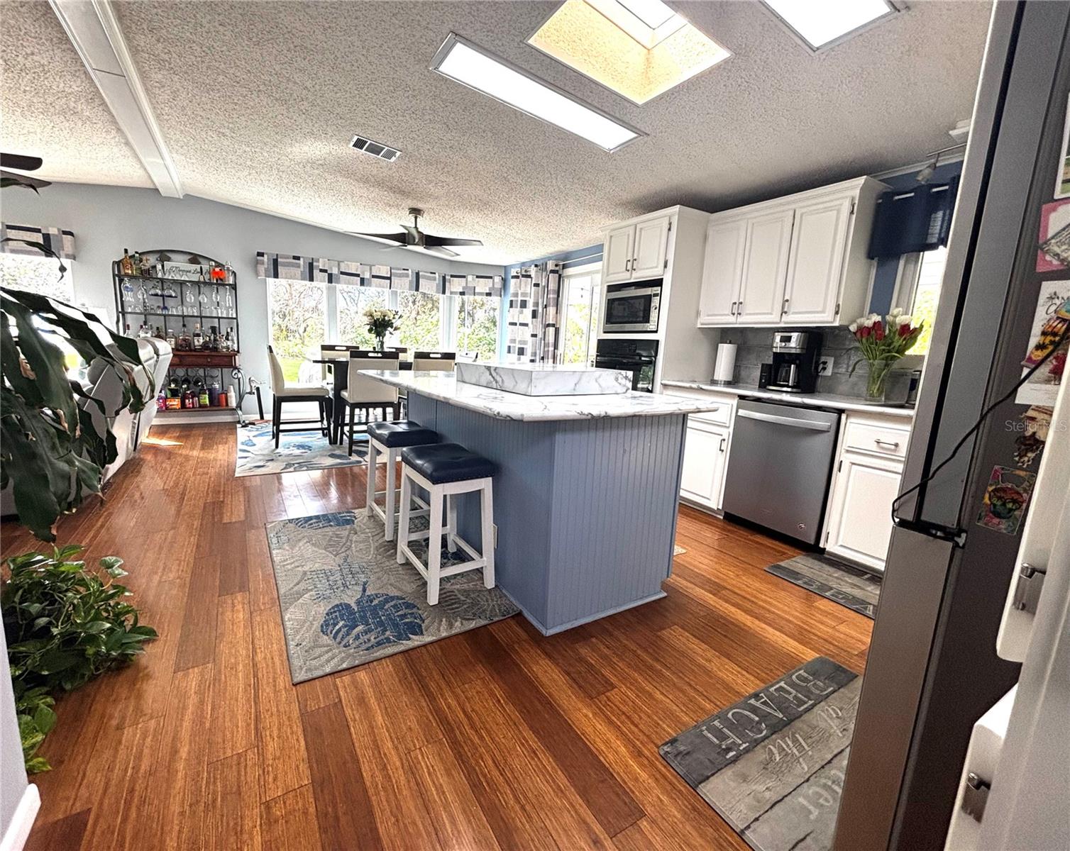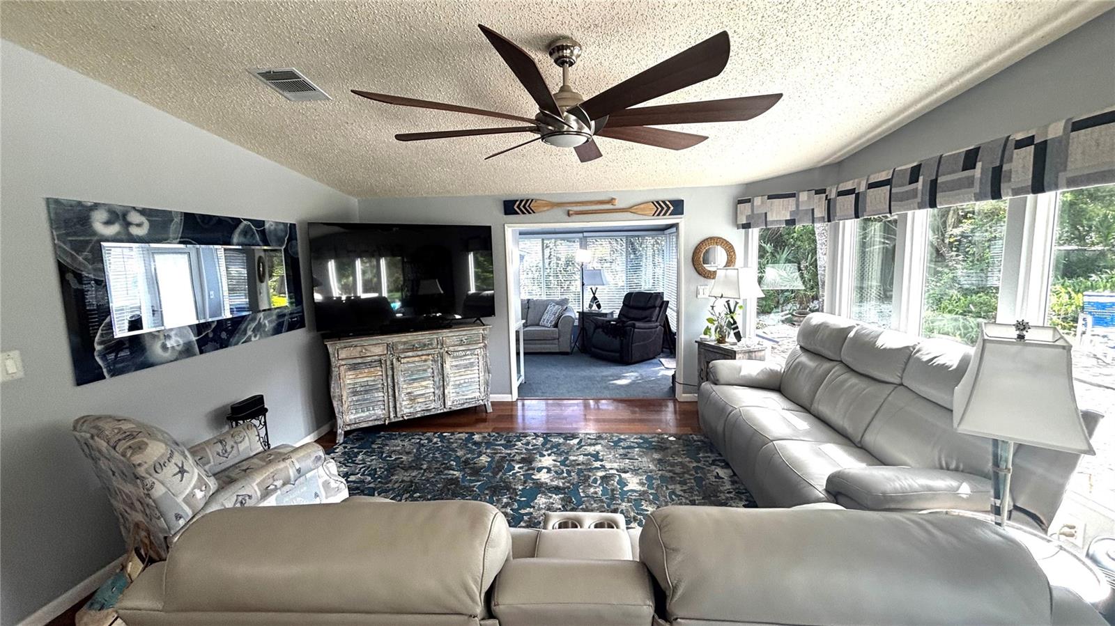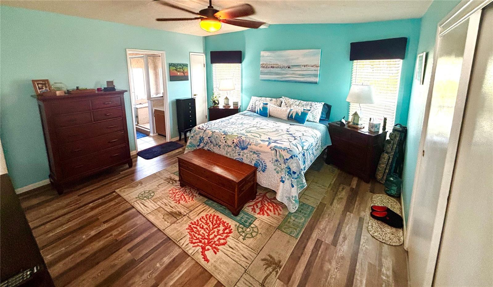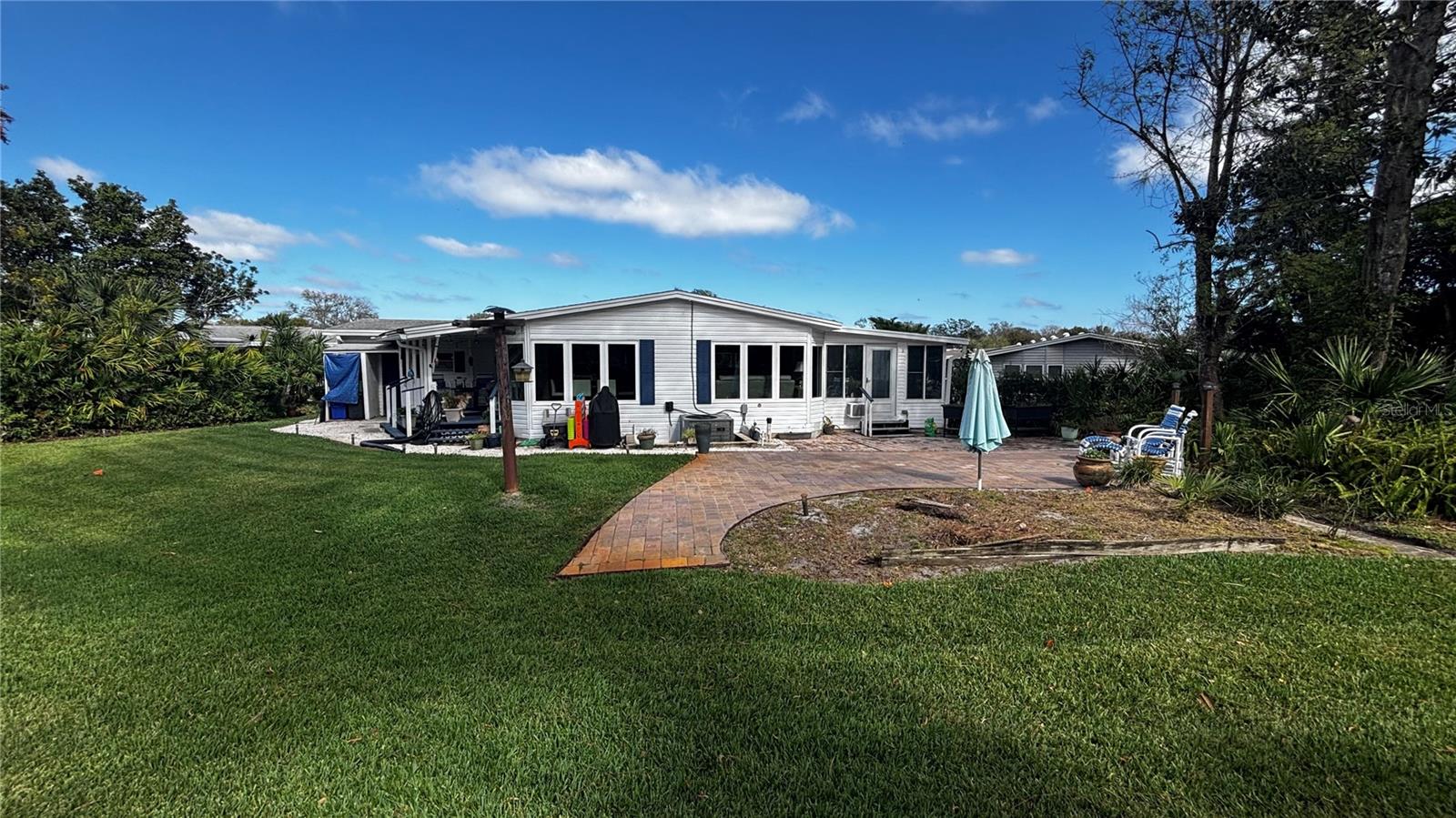 Welcome to this newly renovated home in Edgewater Landing, situated on the ONLY lot in the community offering complete privacy, with no other houses visible from your backyard. Additionally, this property backs up to a restricted, undisturbed area, ensuring that no future construction will ever disrupt your serene experience. As you step inside, the open-air layout greets you with the perfect balance of warmth, comfort, and an inviting atmosphere—perfect for both relaxation and entertaining. The newly updated kitchen is a true highlight, featuring modern finishes, a large pantry, and appliances that blend seamlessly with the home’s design. The expansive family room is designed for comfort and energy efficiency, featuring double-paned tinted windows that minimize heat transfer and glare. Motorized, smart blackout shades provide precise light control and insulation, enhancing the room’s comfort throughout the year. This home features durable, eco-friendly bamboo flooring throughout the main living areas, creating a warm and natural ambiance. The primary bedroom boasts brand-new luxury flooring, adding a sleek, modern touch, while the guest bedrooms feature new carpeting, offering a cozy retreat. Additionally, the brand-new pebble flooring in the front entrance foyer provides a timeless and elegant first impression. For those who value space and storage, the oversized two-car garage and additional storage shed offers ample room for tools, outdoor gear, and more. Outside, the gorgeous landscaping creates a tranquil oasis. Whether you’re gathering around the fire table on the side porch or soaking in the serene views, you’ll feel like you’re in your own private paradise. Edgewater Landing is a resident-owned, 55+ community offering a variety of resort-style amenities. The clubhouse features a large waterfront party room, card and billiard rooms, arts and crafts facilities, a fitness center, and a complete woodworking shop. Outdoor amenities include a heated pool with a covered porch area, shuffleboard, tennis, pickleball, bocce courts, a fishing pier with a dock master, a gazebo, grill and picnic area. Low HOA which includes high speed internet, Cable TV with 2 channels dedicated to Edgewater Landing updates and event schedule. For boating enthusiasts, the community offers a private boat launch with kayak storage, as well as dry storage for boats. There is additional RV parking. The gorgeous fishing pier and grilling area are just steps away, providing the perfect spot to cook up your catch or unwind while enjoying the stunning views of the Indian River. Watch space shuttle launches, or take a short boat ride to BJ’s Fishcamp, Disappearing Island, or Ponce Inlet from your private community boat launch. (**SEE AGENT REMARKS FOR ADDITIONAL BOAT, DRY DOCK STORAGE & GOLF CART OPTIONS**) All this is just minutes from beautiful Florida beaches and the vibrant Flagler Avenue, known for its shops, restaurants, and nightlife, as well as historic Canal Street, offering a charming mix of boutiques, cafés, and local attractions. This rare find offers the perfect blend of modern living and resort-style amenities in a peaceful, nature-filled setting. Don’t miss your opportunity to own this truly exceptional home!