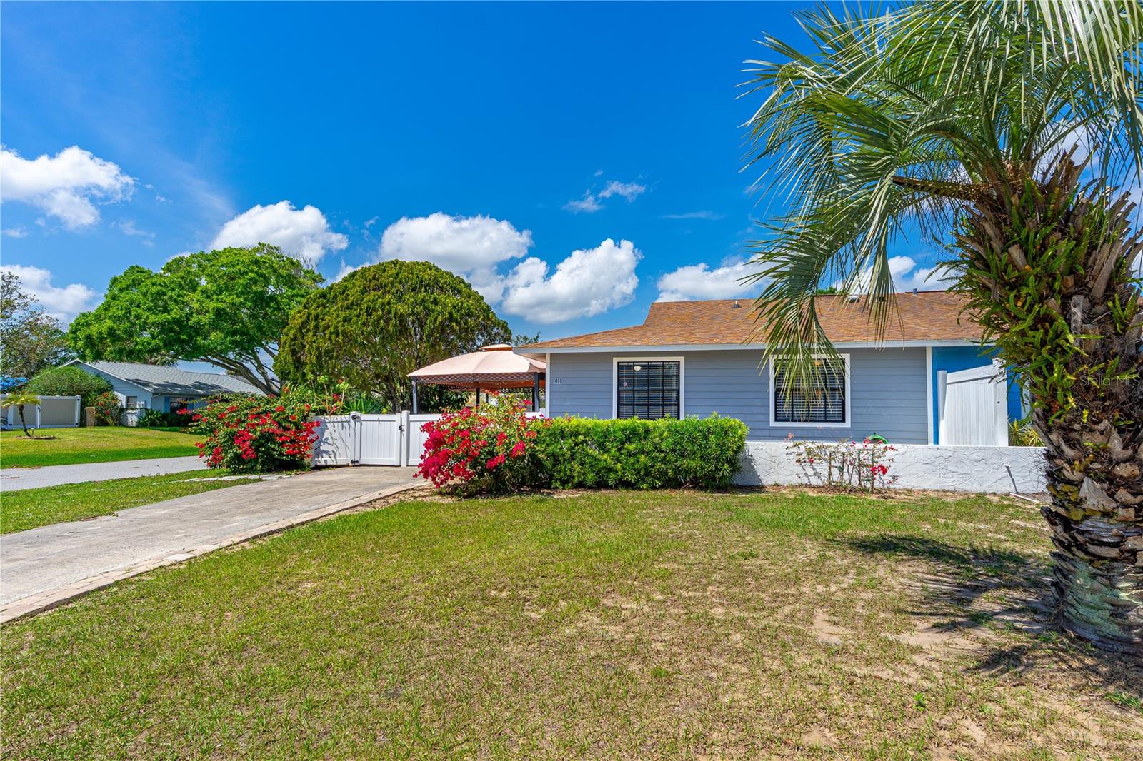 Charming Half Duplex with Upgrades, Hot Tub, Gazebos & Gorgeous Landscaping! Welcome to 411 Sea Gull Ct, a beautifully maintained 2-bedroom, 2-bathroom half duplex on a spacious corner lot in the desirable Pelican Cove West community. This move-in-ready home offers a perfect blend of comfort, style, and outdoor living. Inside, you’ll love the modernized kitchen and bathrooms, featuring stylish finishes and thoughtful updates. The open floor plan creates a bright, inviting space perfect for relaxing or entertaining. Recent upgrades include a 2022 hot water tank and a roof estimated to be 9 years old, providing peace of mind for years to come. Step outside and experience your own private oasis! Enjoy the beautifully landscaped yard, complete with a relaxing hot tub and two charming gazebos, ideal for unwinding or hosting guests. Located close to shopping, dining, and the Intracoastal Waterway, this home is perfect for those seeking a low-maintenance coastal lifestyle with exceptional outdoor spaces. Schedule your showing today!