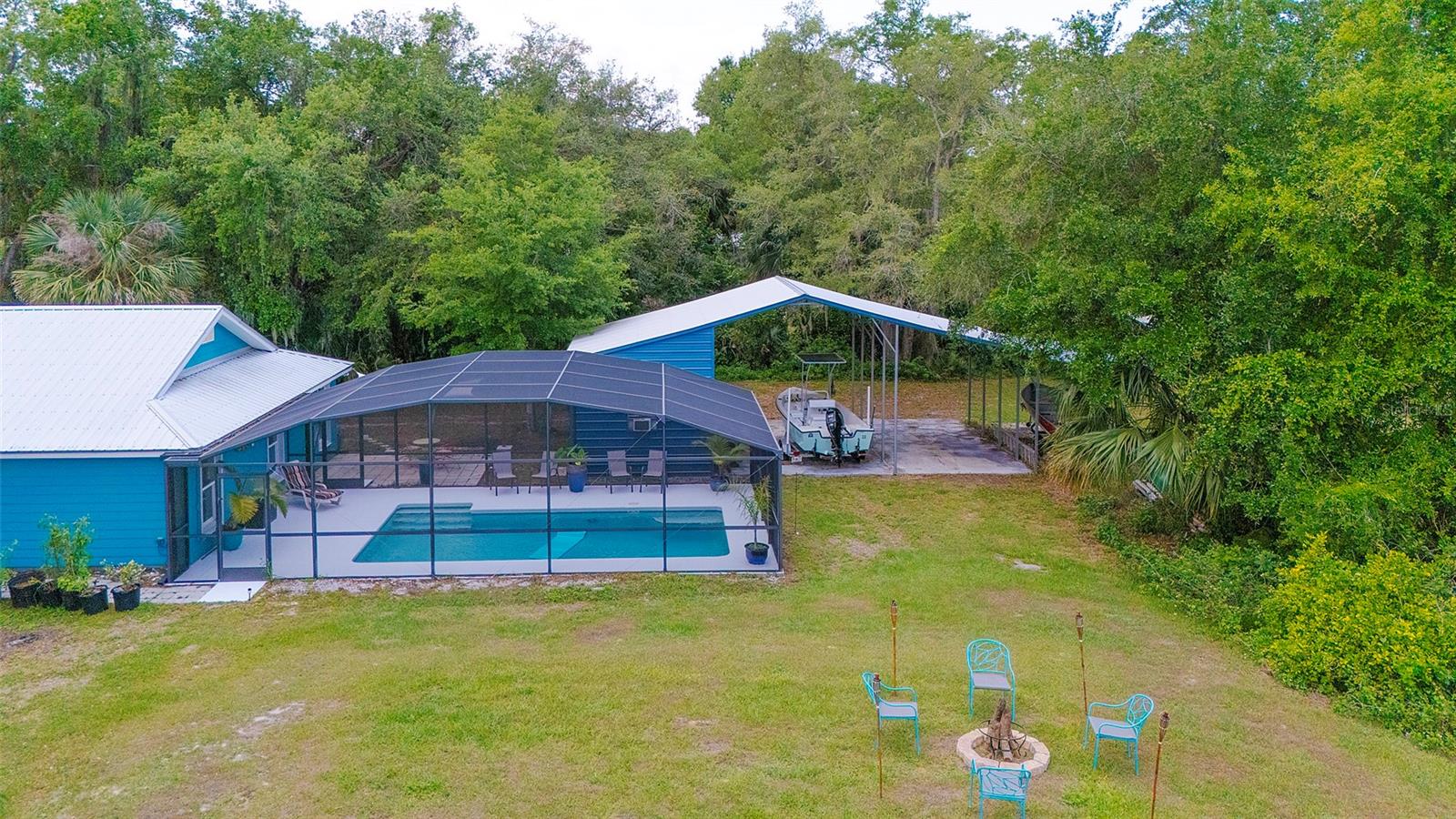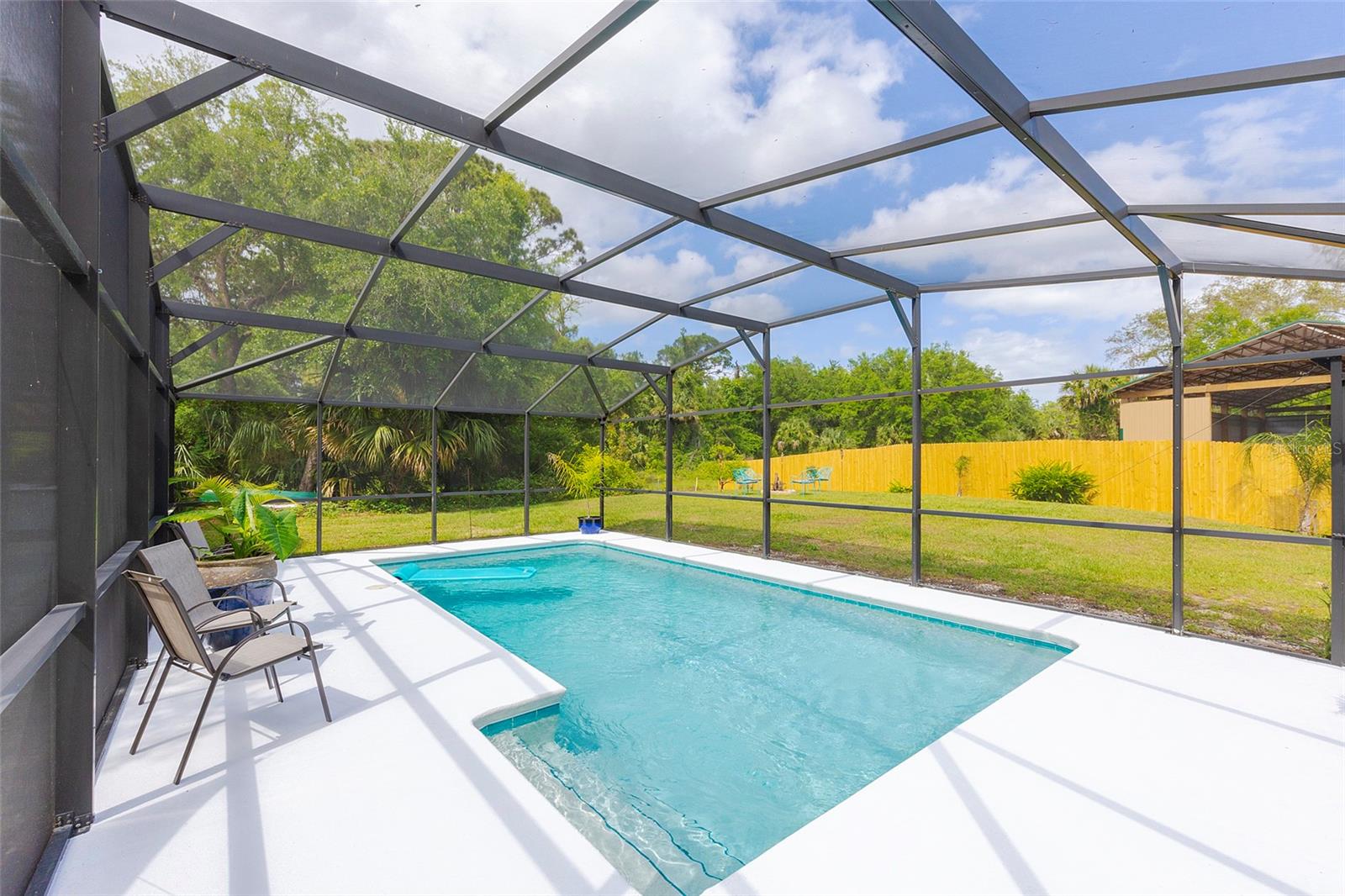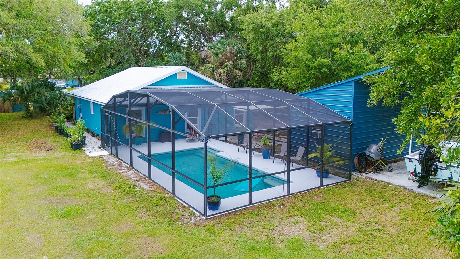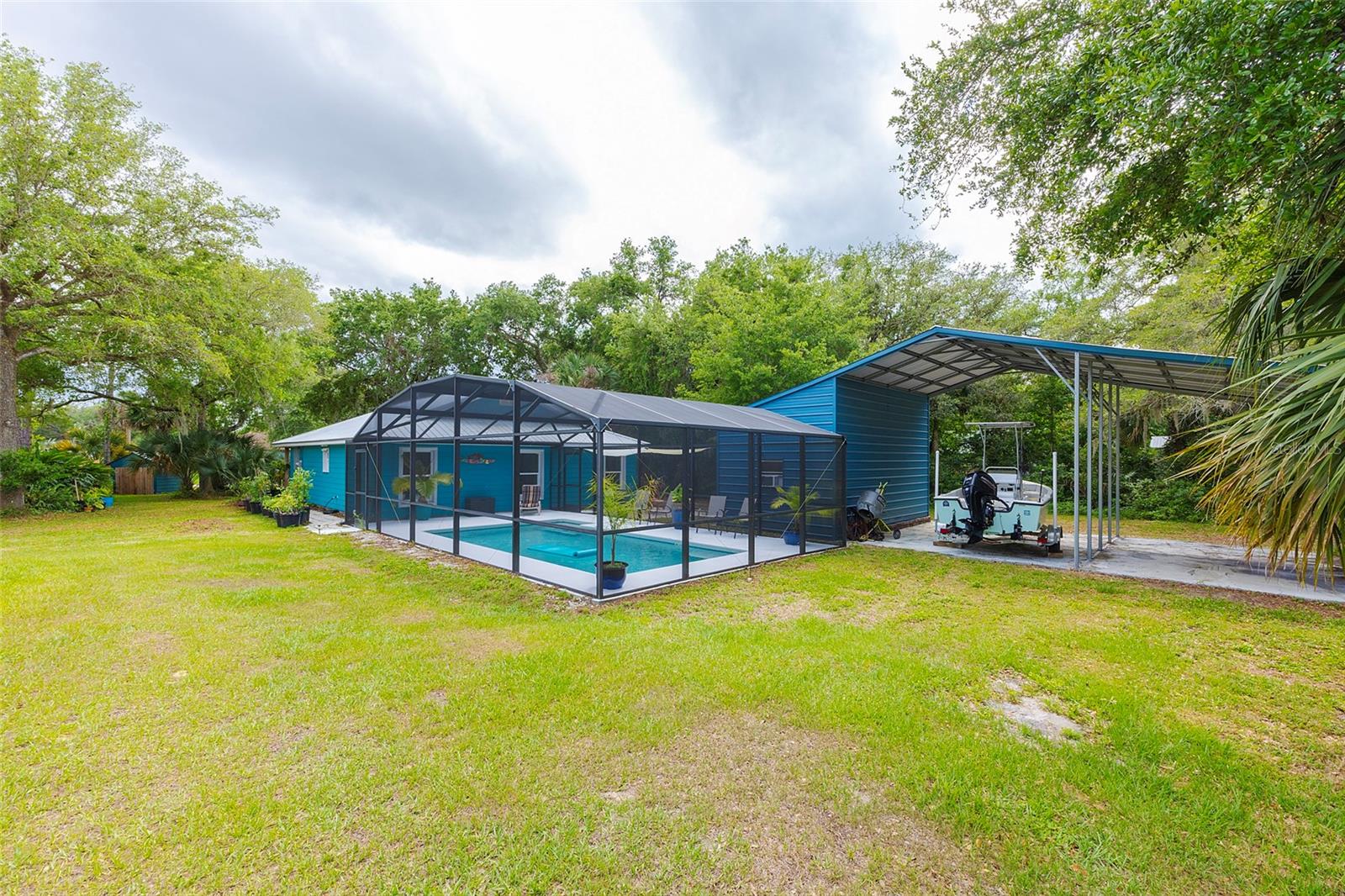 Welcome to Shady Oaks! Built in 2019, this home offers beautiful views of Lake James and sits on a spacious .83-acre lot with no HOA — perfect for your boats, RVs, trailers, tractors, and more! Inside, you'll love the open layout with vaulted ceilings, an interior utility room with a utility sink, and a whole-home water treatment system. Step outside to your private backyard oasis featuring a 2020 in-ground pool with a screen enclosure and immense privacy all around. Need extra space? A 12x20 climate-controlled workshop and covered carports add even more functionality — ideal for those looking for a place to live and work. Located just 2 miles from the Riverbreeze boat ramp, this property offers the ultimate blend of comfort, space, tranquility, and freedom. Plus, you're only a 10-15 minute drive to everything New Smyrna Beach has to offer, including Canal Street and Flagler Avenue. Schedule your private showing today!