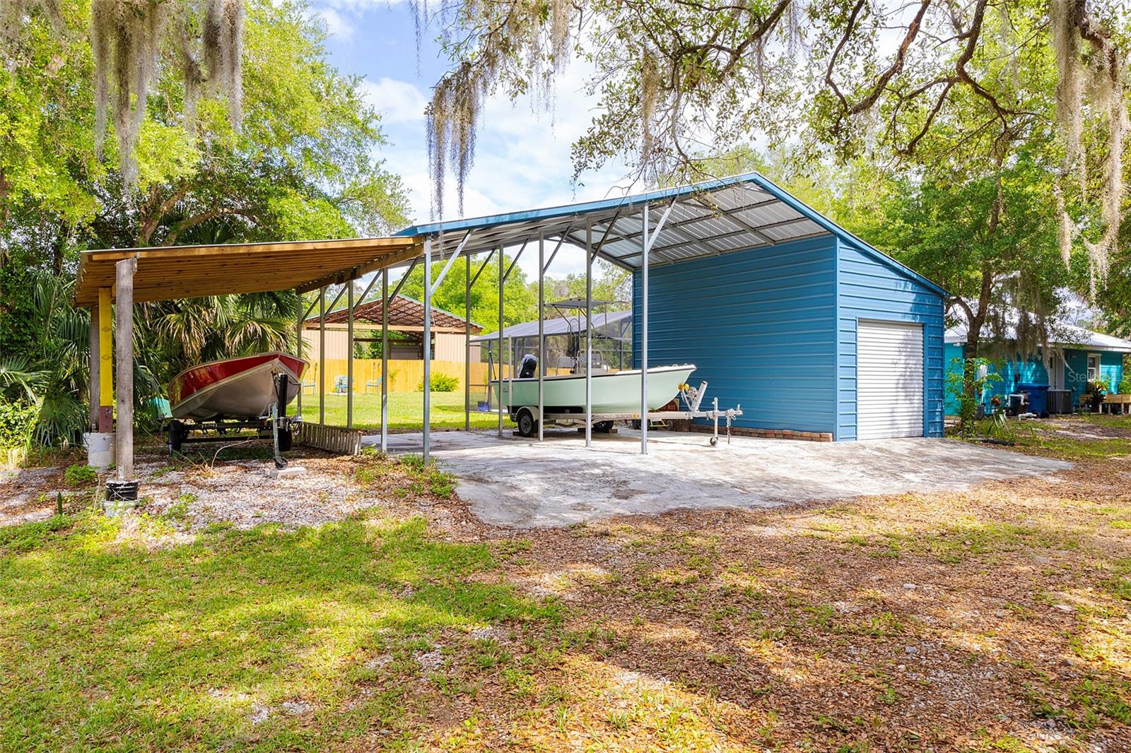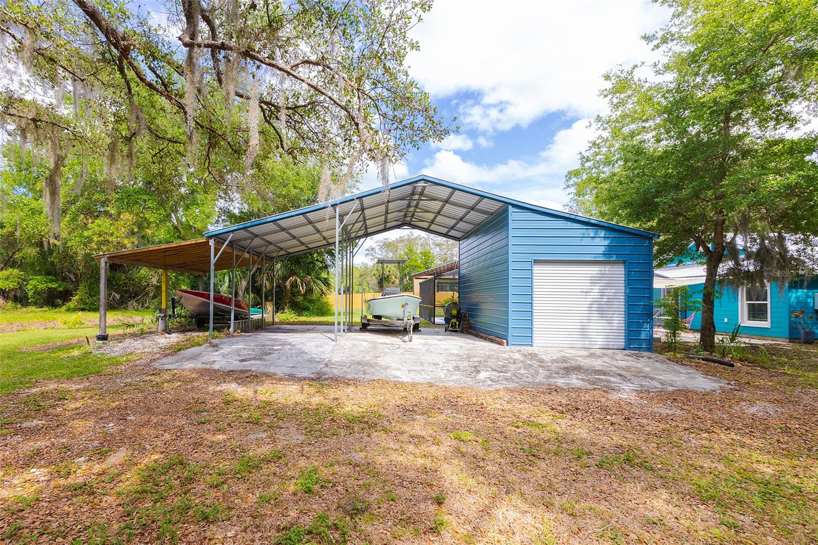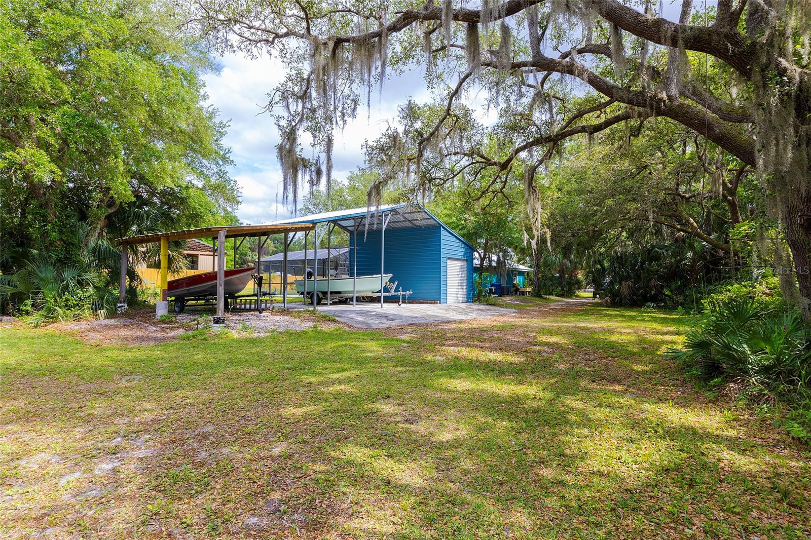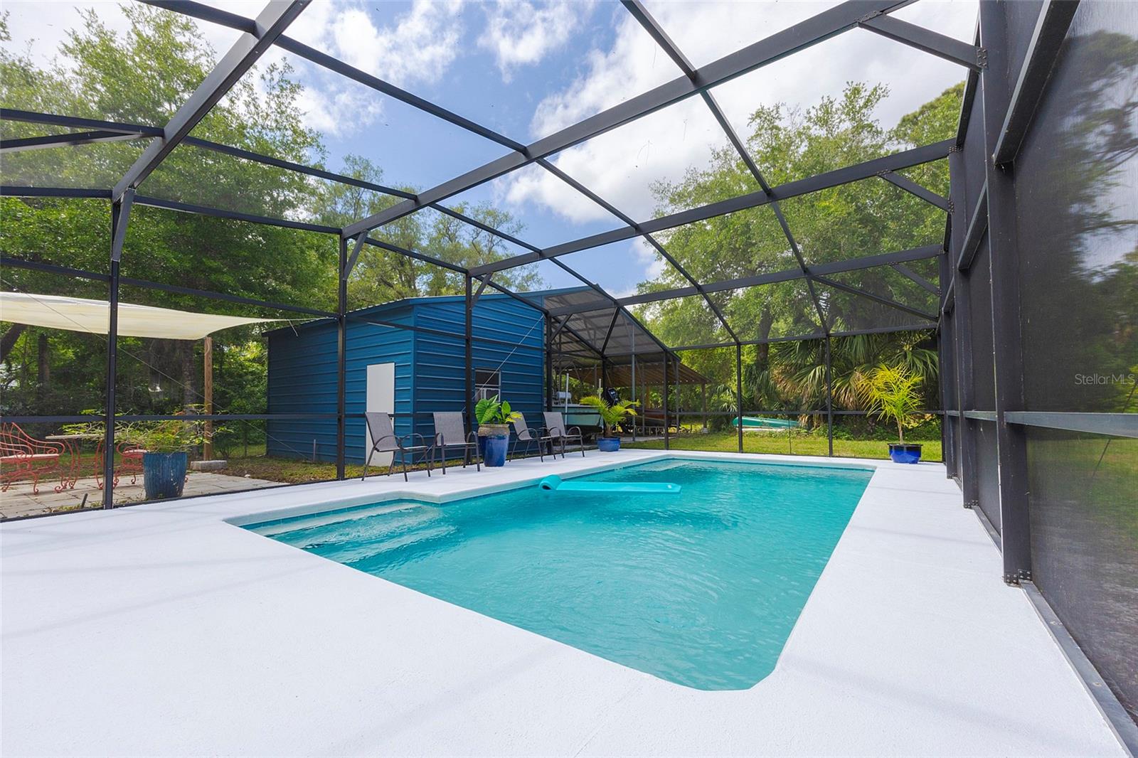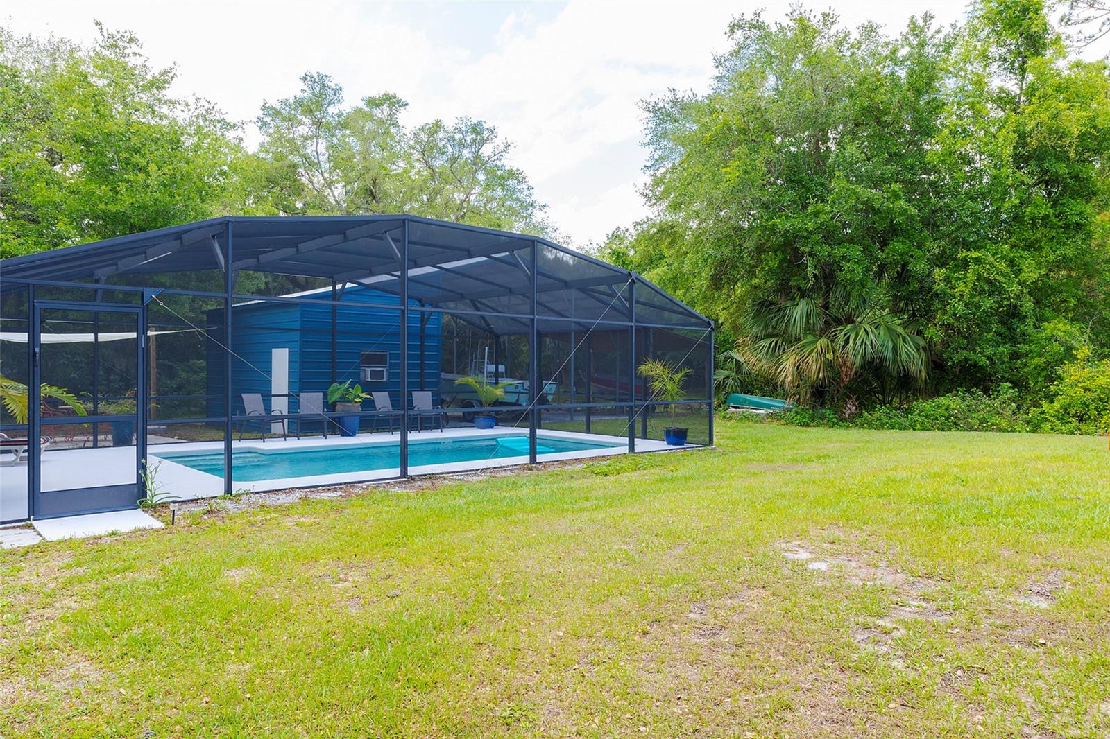 Welcome to Shady Oaks! Built in 2019, this home offers beautiful views of Lake James and sits on a spacious .83-acre lot with no HOA — perfect for your boats, RVs, trailers, tractors, and more! Inside, you'll love the open layout with vaulted ceilings, an interior utility room with a utility sink, and a whole-home water treatment system. Step outside to your private backyard oasis featuring a 2020 in-ground pool with a screen enclosure and immense privacy all around. Need extra space? A 12x20 climate-controlled workshop and covered carports add even more functionality — ideal for those looking for a place to live and work. Located just 2 miles from the Riverbreeze boat ramp, this property offers the ultimate blend of comfort, space, tranquility, and freedom. Plus, you're only a 10-15 minute drive to everything New Smyrna Beach has to offer, including Canal Street and Flagler Avenue. Schedule your private showing today!