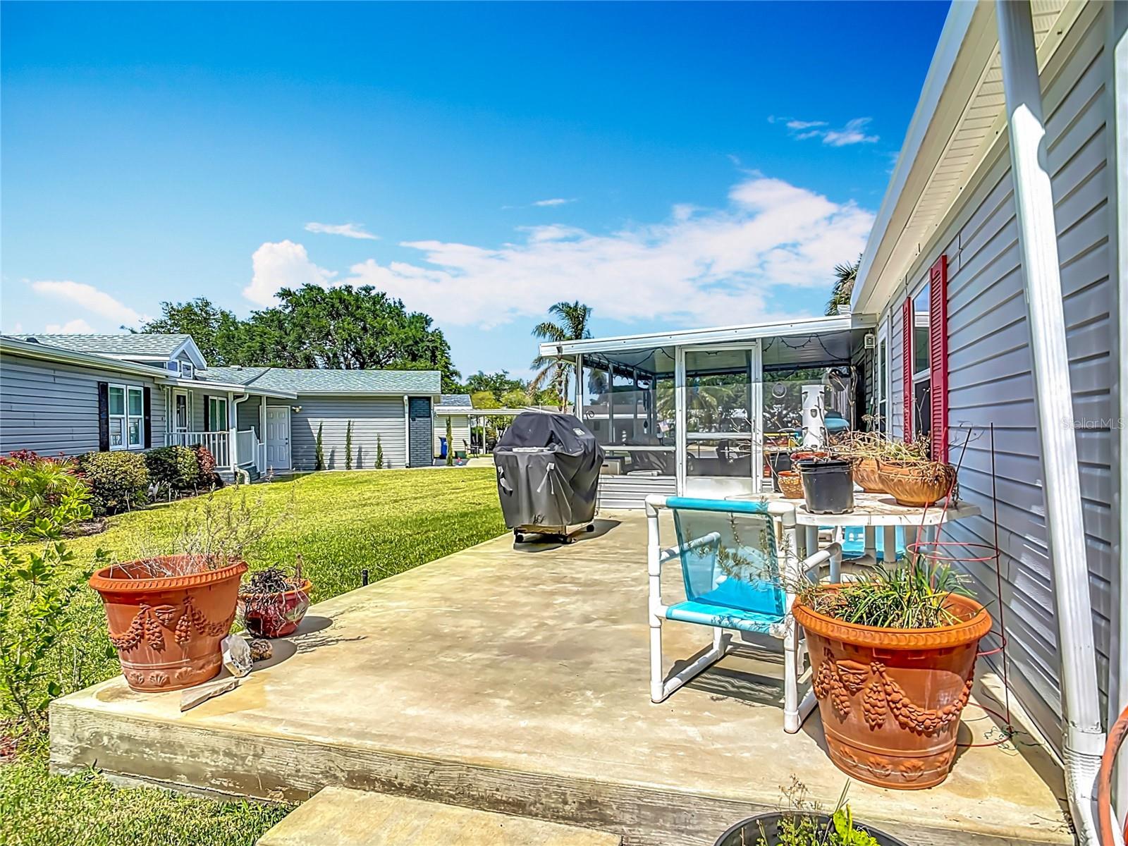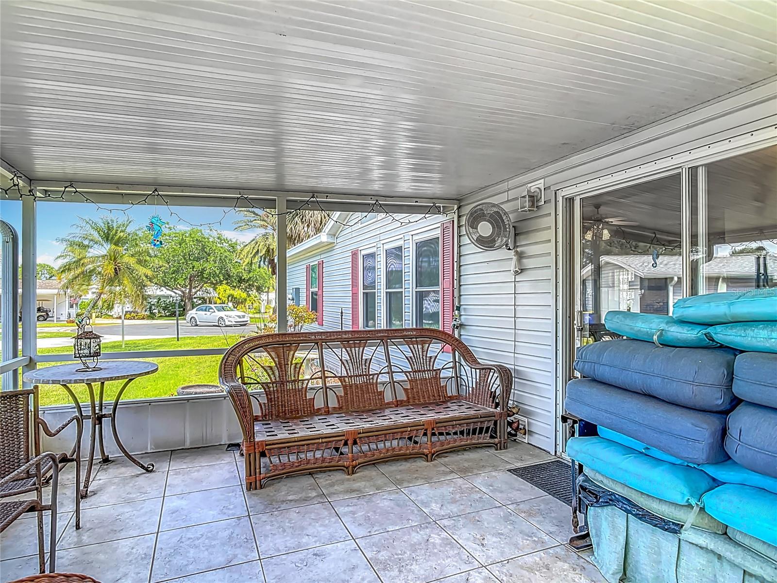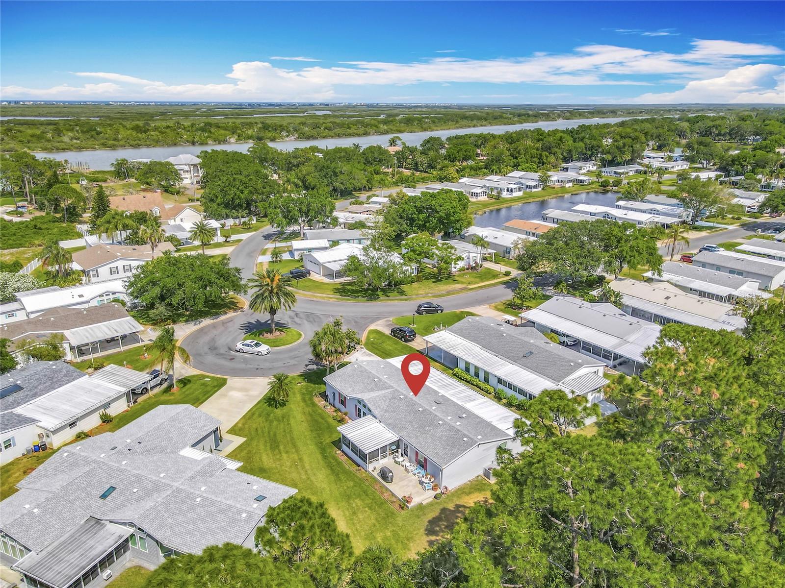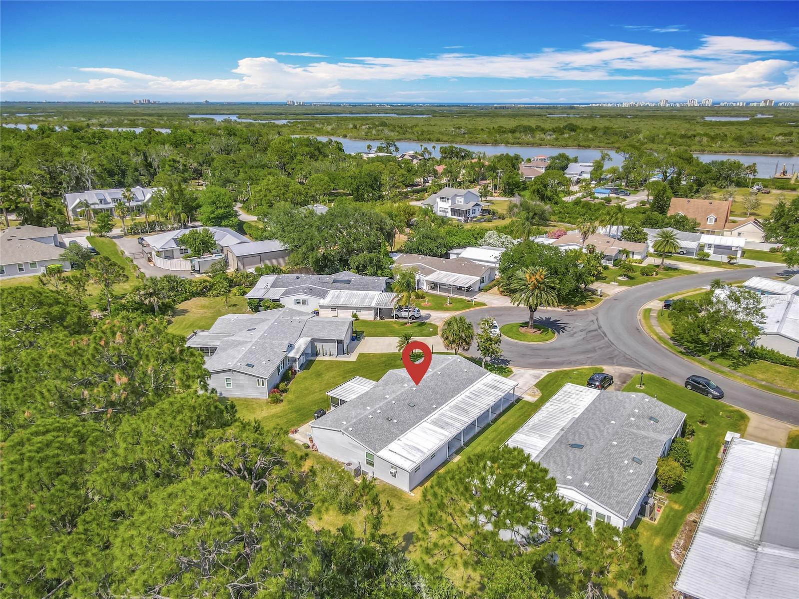 Welcome to this charming 3-bedroom, 2-bathroom home, perfectly nestled just off a peaceful cul-de-sac. From the moment you step inside, you'll love the spacious, open layout featuring a gourmet kitchen with sleek quartz countertops, a convenient eat-in dining area, pergo floors and plenty of room to gather and entertain. The split-bedroom floor plan offers privacy for guests or family, while sliding glass doors lead to your private patio and sun deck—ideal for grilling, relaxing, and enjoying spectacular sunrises and sunsets. Outside, you'll find a great bonus: a stylish shed for extra storage—perfect for tools, toys, or hobby gear. Located in a very active and vibrant community, you'll have access to a wide array of amenities including a heated pool, spa, exercise room, , shuffleboard , horseshoes tennis courts, pickle ball, bocce, bingo nights, boat and Rv storage when available. Best of all, you own your land, and the low quarterly HOA fee includes both internet and cable—giving you the perfect balance of affordability and lifestyle. Don't miss your opportunity to live in a home that has it all—comfort, community, and convenience!