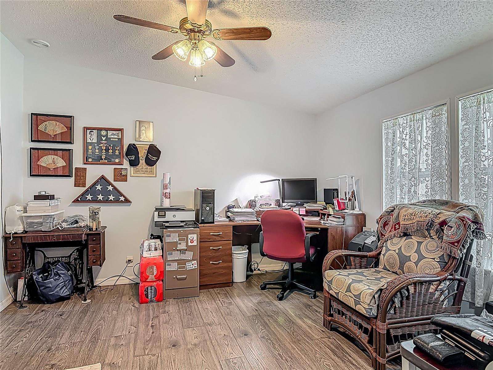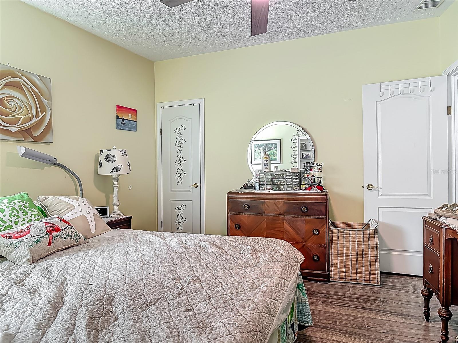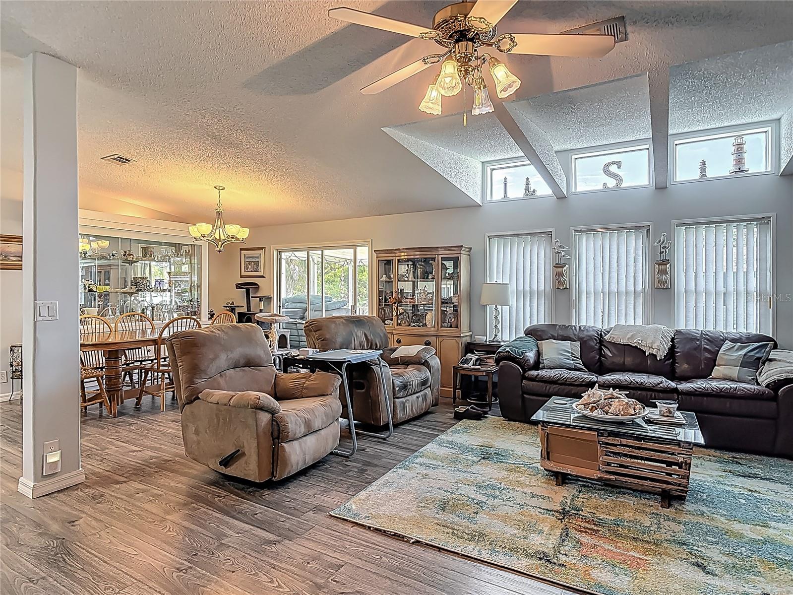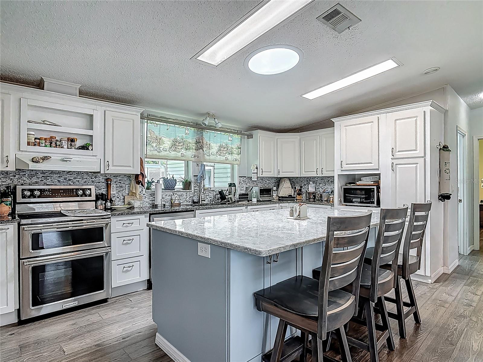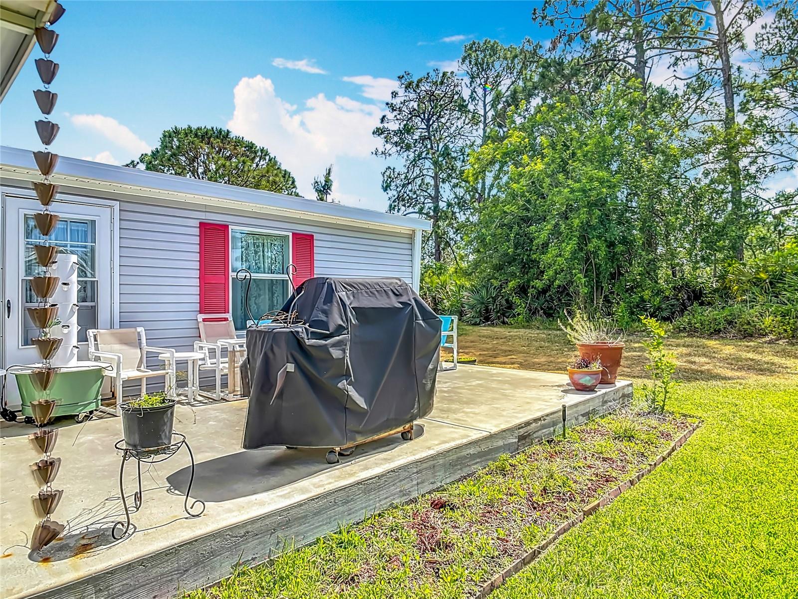 Welcome to this charming 3-bedroom, 2-bathroom home, perfectly nestled just off a peaceful cul-de-sac. From the moment you step inside, you'll love the spacious, open layout featuring a gourmet kitchen with sleek quartz countertops, a convenient eat-in dining area, pergo floors and plenty of room to gather and entertain. The split-bedroom floor plan offers privacy for guests or family, while sliding glass doors lead to your private patio and sun deck—ideal for grilling, relaxing, and enjoying spectacular sunrises and sunsets. Outside, you'll find a great bonus: a stylish shed for extra storage—perfect for tools, toys, or hobby gear. Located in a very active and vibrant community, you'll have access to a wide array of amenities including a heated pool, spa, exercise room, , shuffleboard , horseshoes tennis courts, pickle ball, bocce, bingo nights, boat and Rv storage when available. Best of all, you own your land, and the low quarterly HOA fee includes both internet and cable—giving you the perfect balance of affordability and lifestyle. Don't miss your opportunity to live in a home that has it all—comfort, community, and convenience!