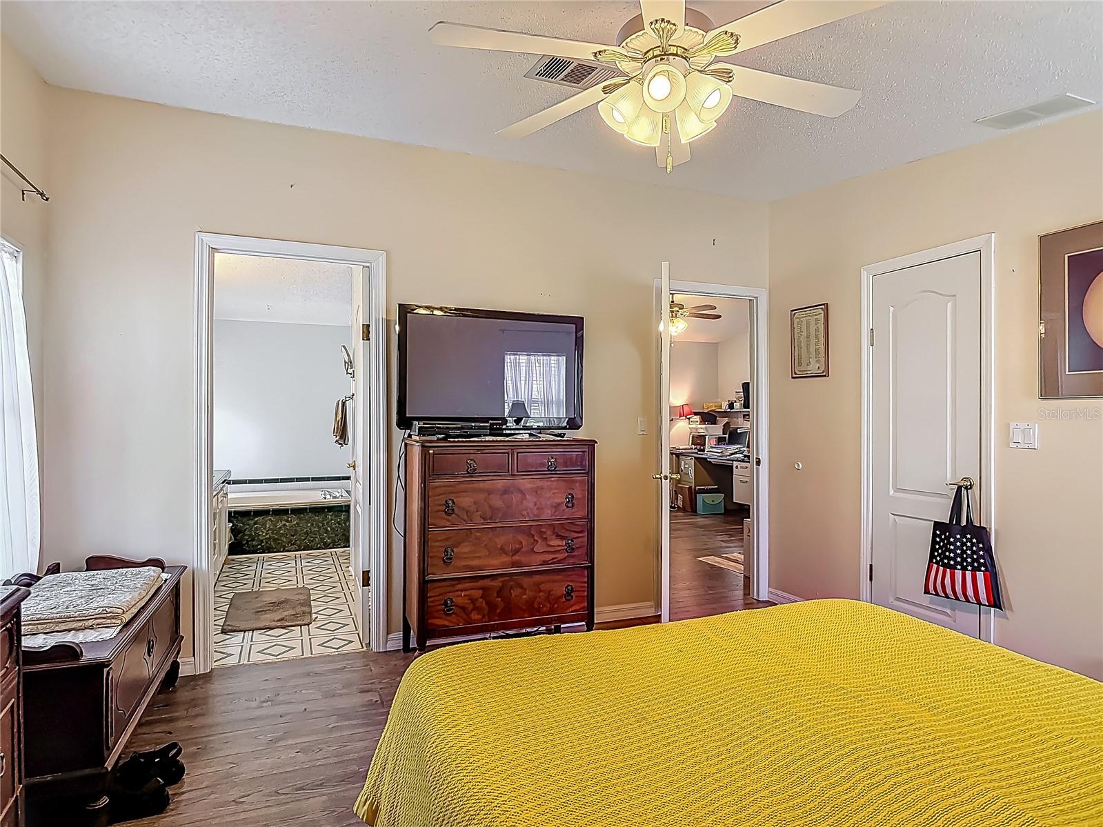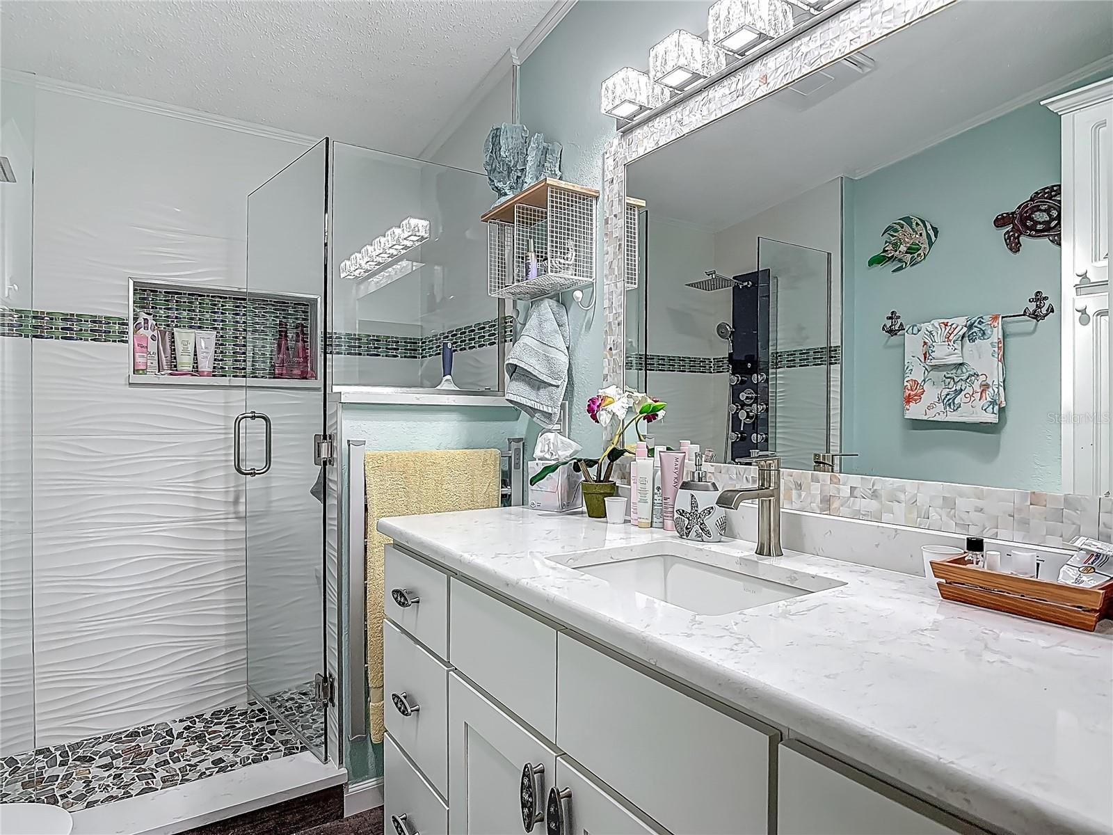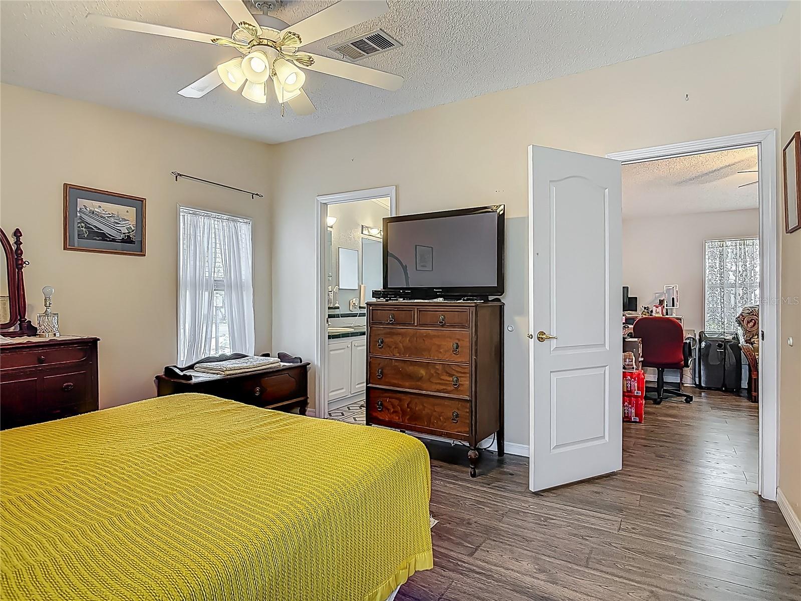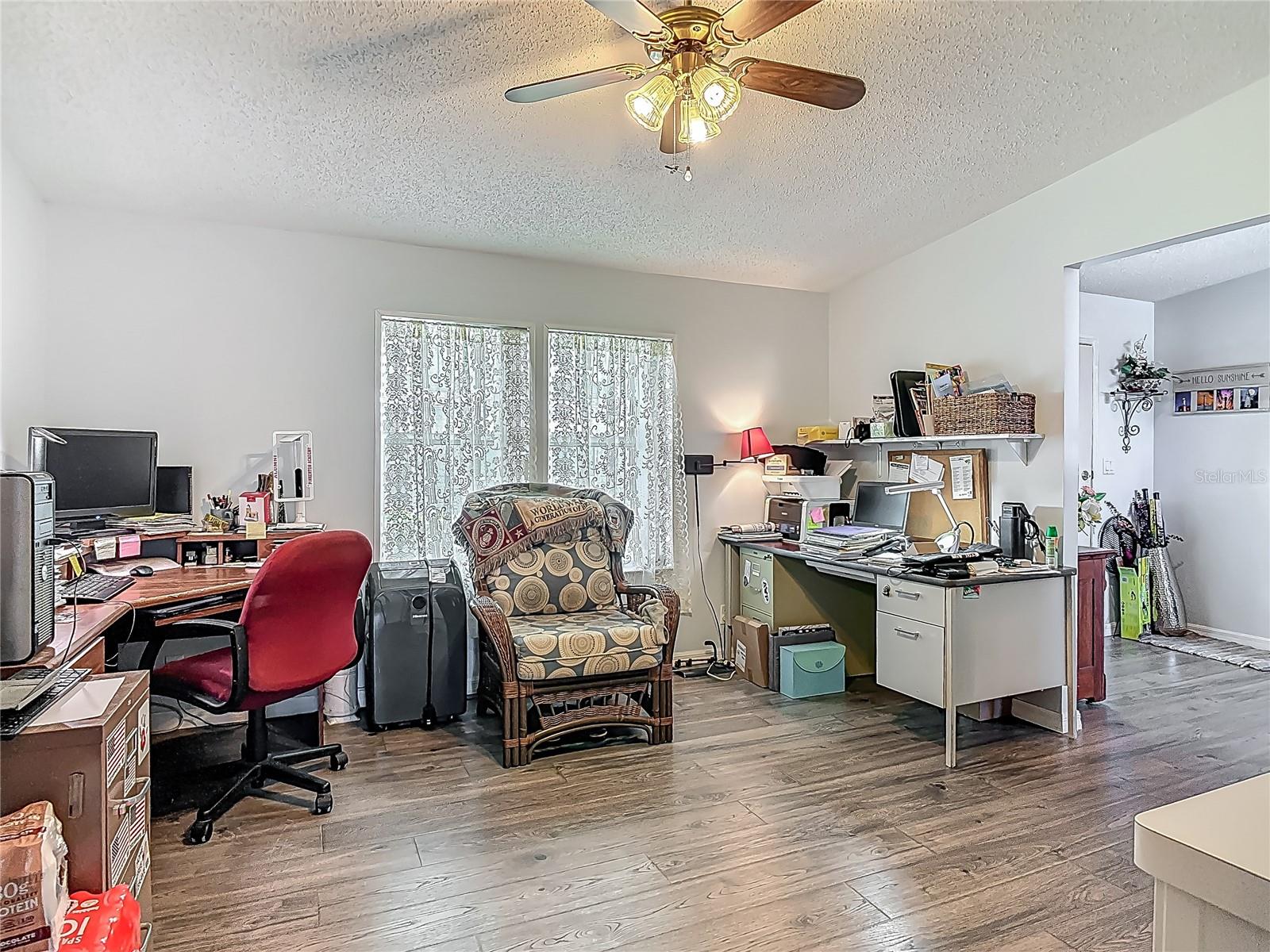 Welcome to this charming 3-bedroom, 2-bathroom home, perfectly nestled just off a peaceful cul-de-sac. From the moment you step inside, you'll love the spacious, open layout featuring a gourmet kitchen with sleek quartz countertops, a convenient eat-in dining area, pergo floors and plenty of room to gather and entertain. The split-bedroom floor plan offers privacy for guests or family, while sliding glass doors lead to your private patio and sun deck—ideal for grilling, relaxing, and enjoying spectacular sunrises and sunsets. Outside, you'll find a great bonus: a stylish shed for extra storage—perfect for tools, toys, or hobby gear. Located in a very active and vibrant community, you'll have access to a wide array of amenities including a heated pool, spa, exercise room, , shuffleboard , horseshoes tennis courts, pickle ball, bocce, bingo nights, boat and Rv storage when available. Best of all, you own your land, and the low quarterly HOA fee includes both internet and cable—giving you the perfect balance of affordability and lifestyle. Don't miss your opportunity to live in a home that has it all—comfort, community, and convenience!