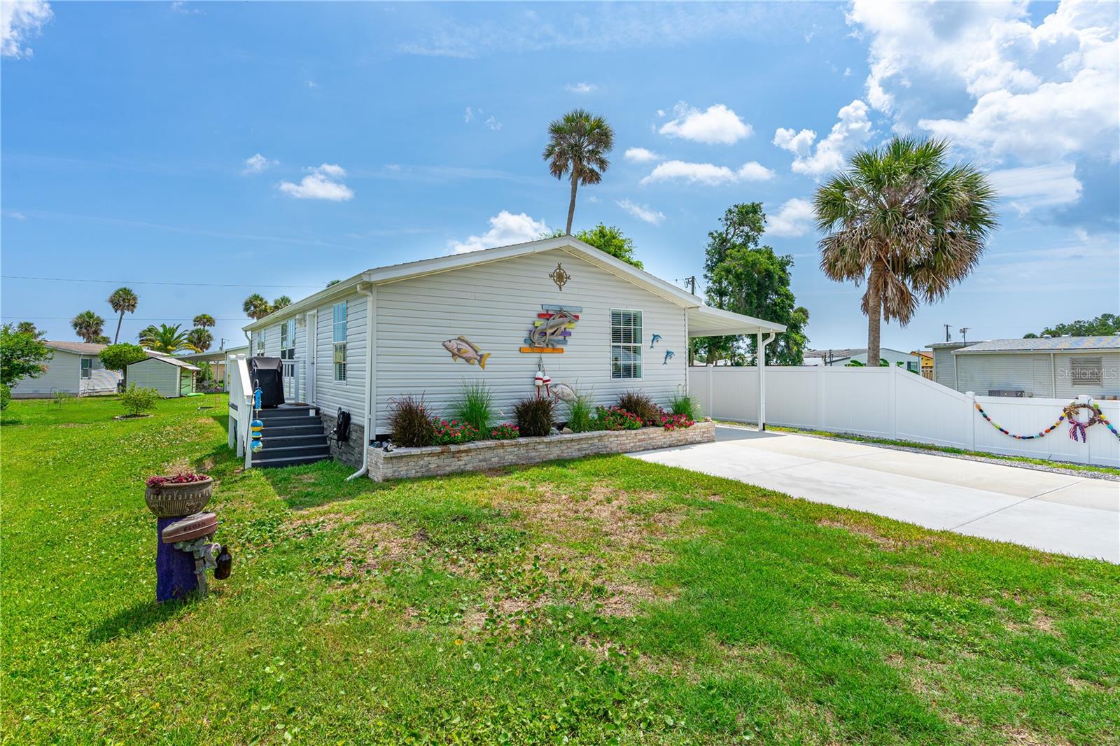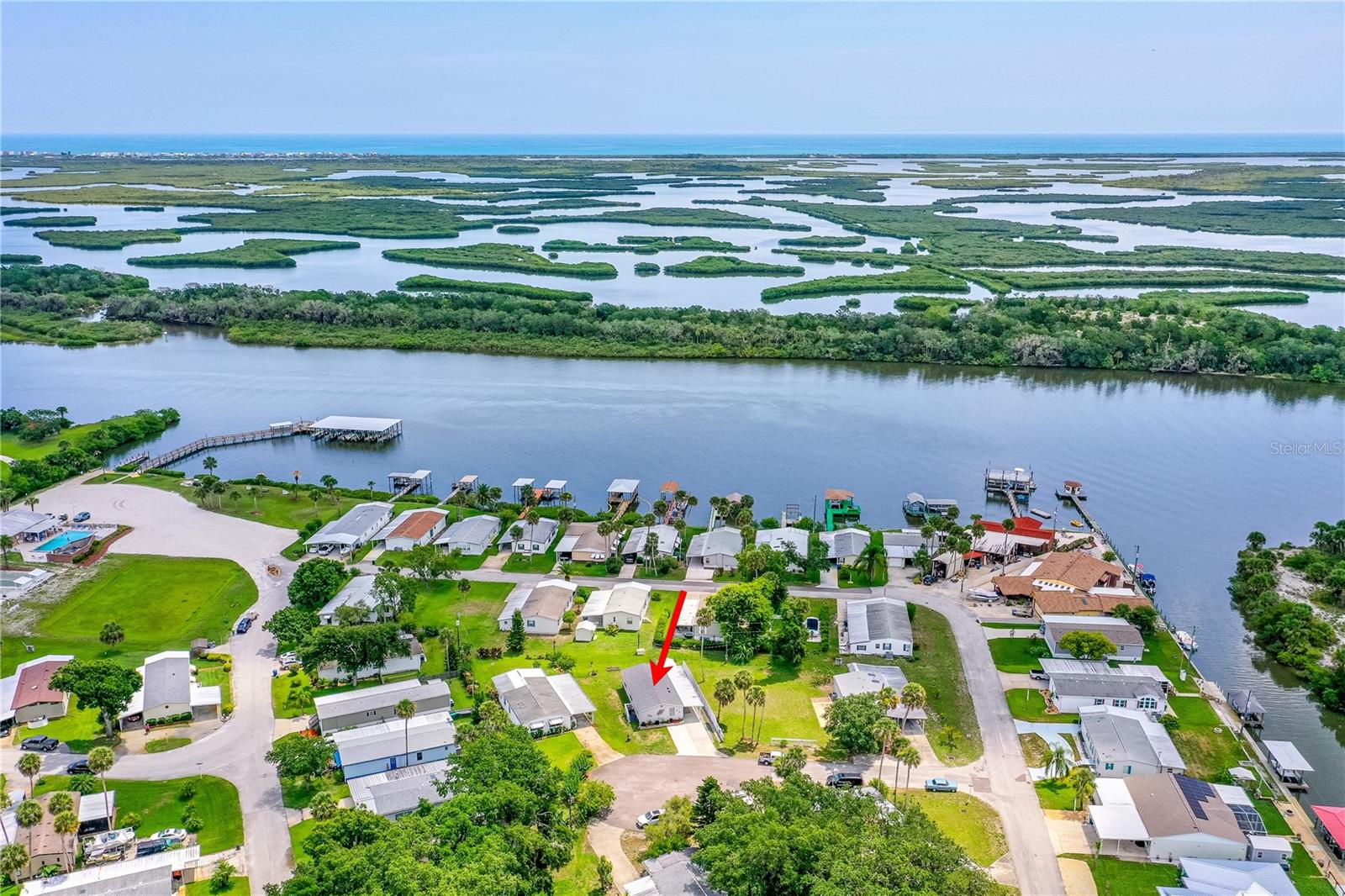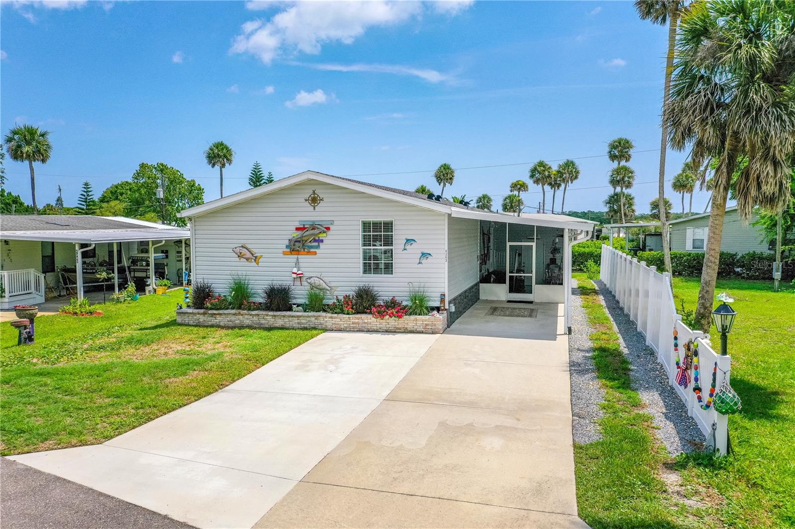 This new home checks all the boxes, OWN YOUR OWN LAND, Palm Trees, Property and Unlimited potential...Imagine, Turn Key 3 bedroom, 2 bath home offering an updated modern kitchen, a culinary delight with an abundance of counter and storage space. Enjoy the split floor plan as the double paned french doors accent the open floor plan. an abundance of closet space, oversized bedrooms, new laminate flooring and a dry bar area that compliments this home. Oversized entry stairs and much more add to the unstoppable features of this home. The crown molding throughout the home flairs a modern appeal. New roof installed April 2023. The home is situated on a private cul da sac which neighbors along a river front road.....Unbelievable!!! NON FLOOD ZONE, This golf cart community offers many amenities. Heated salt water riverfront pool with community clubhouse. An additional salt water pool is nestled along the outdoor shuffleboard courts. Complimenting the community is ability to lease anew boat slip complete with a wench lift kit, new 300 foot fishing pier, boat launch, engine flush area, RV on-site storage area (at an additional fee) community BBQ Grill, bocci court an on site laundry room and much more. Enjoy the relaxing lifestyle in this sleepy fishing village. This community has a low monthly amenity fee of $250. Community background check required. Whether you make this is your full time, part time or rental investment property this 2018 fully furnished home is a sheer delight. ;Water:& Sewer City Additionally a new RV Shed offering a roll down door as well as new pathway were recently installed.