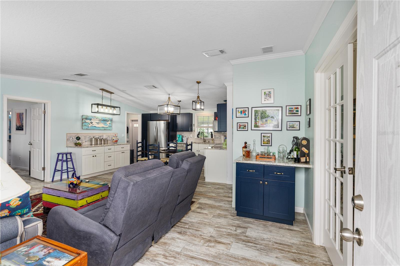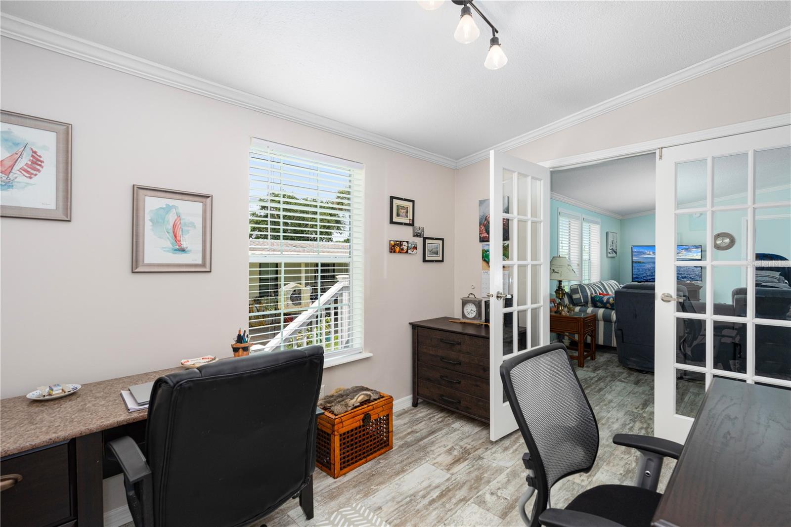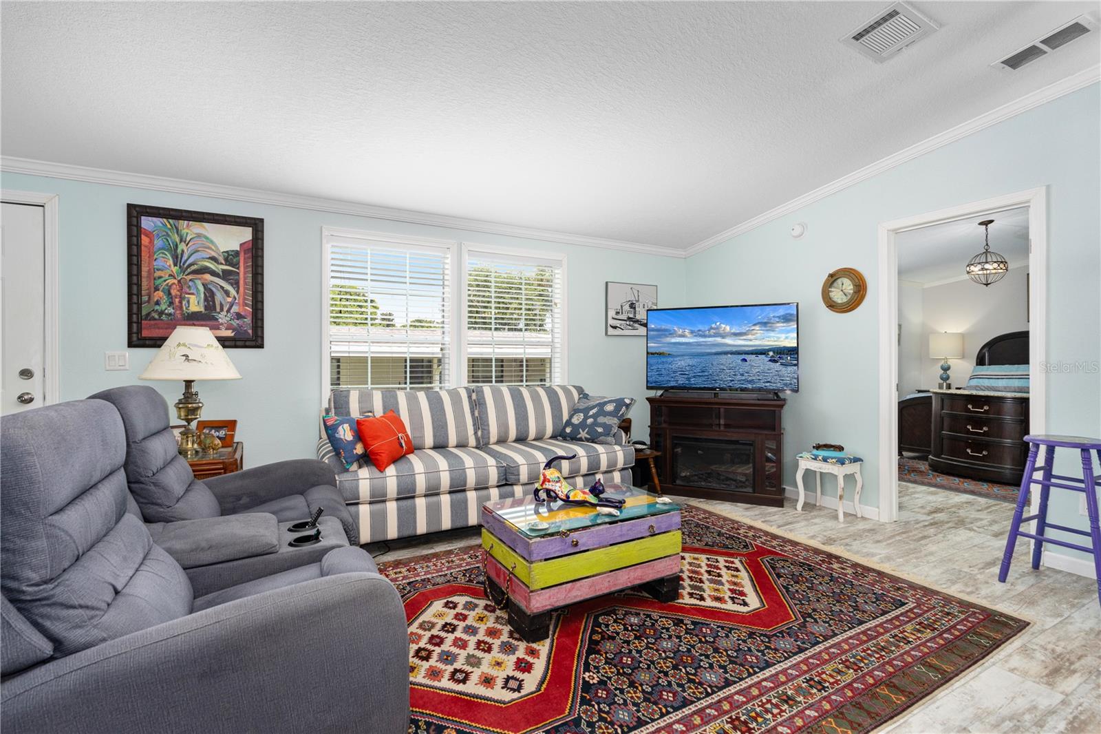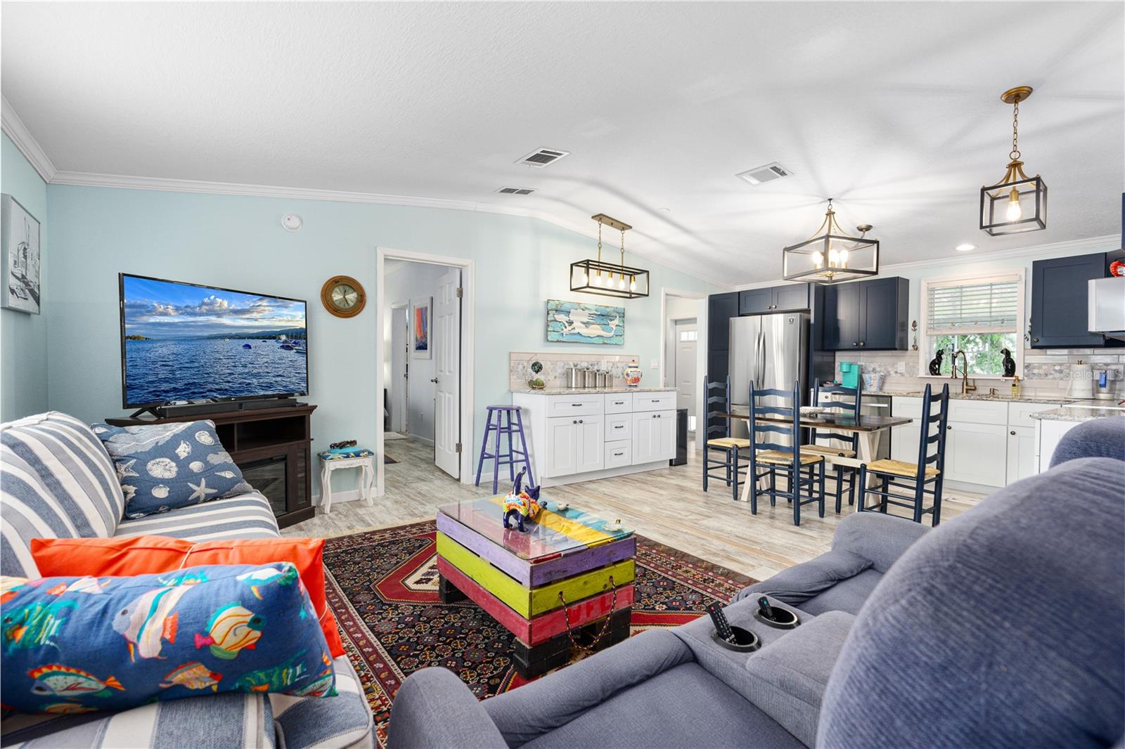 This new home checks all the boxes, OWN YOUR OWN LAND, Palm Trees, Property and Unlimited potential...Imagine, Turn Key 3 bedroom, 2 bath home offering an updated modern kitchen, a culinary delight with an abundance of counter and storage space. Enjoy the split floor plan as the double paned french doors accent the open floor plan. an abundance of closet space, oversized bedrooms, new laminate flooring and a dry bar area that compliments this home. Oversized entry stairs and much more add to the unstoppable features of this home. The crown molding throughout the home flairs a modern appeal. New roof installed April 2023. The home is situated on a private cul da sac which neighbors along a river front road.....Unbelievable!!! NON FLOOD ZONE, This golf cart community offers many amenities. Heated salt water riverfront pool with community clubhouse. An additional salt water pool is nestled along the outdoor shuffleboard courts. Complimenting the community is ability to lease anew boat slip complete with a wench lift kit, new 300 foot fishing pier, boat launch, engine flush area, RV on-site storage area (at an additional fee) community BBQ Grill, bocci court an on site laundry room and much more. Enjoy the relaxing lifestyle in this sleepy fishing village. This community has a low monthly amenity fee of $250. Community background check required. Whether you make this is your full time, part time or rental investment property this 2018 fully furnished home is a sheer delight. ;Water:& Sewer City Additionally a new RV Shed offering a roll down door as well as new pathway were recently installed.