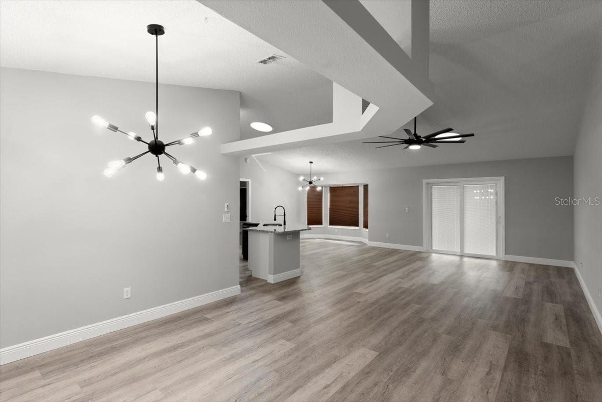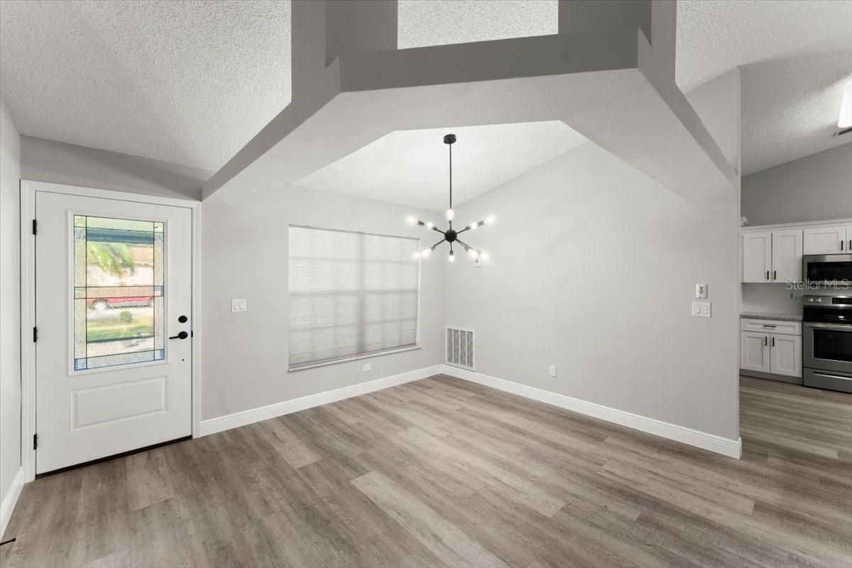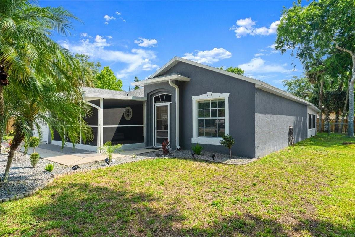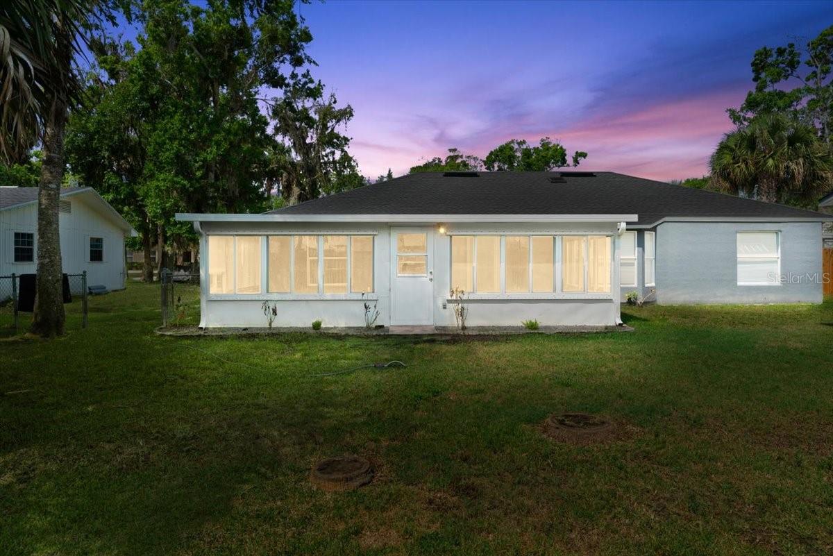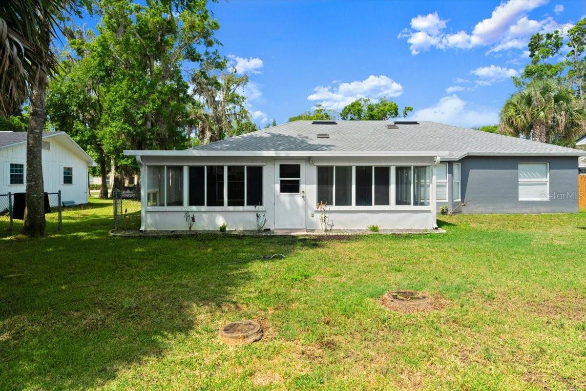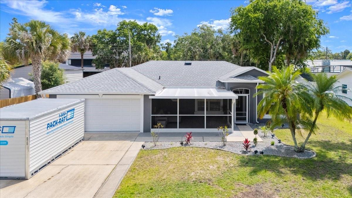 Welcome to this beautifully updated 3-bedroom, 2-bath home located in the desirable Florida Shores community with no HOA! This property features an open floor plan with vaulted ceilings and stylish laminate flooring throughout, creating a spacious and inviting atmosphere. The home sits on a generous lot, offering plenty of outdoor space to enjoy, along with a charming front screened-in lanai perfect for relaxing. The kitchen is equipped with stainless steel appliances and flows seamlessly into the living and dining areas, ideal for entertaining. Additional highlights include a convenient inside laundry room and a 2-car garage. Just a 20-minute drive to the sandy shores of New Smyrna Beach, this move-in ready gem combines comfort, style, and a prime location.