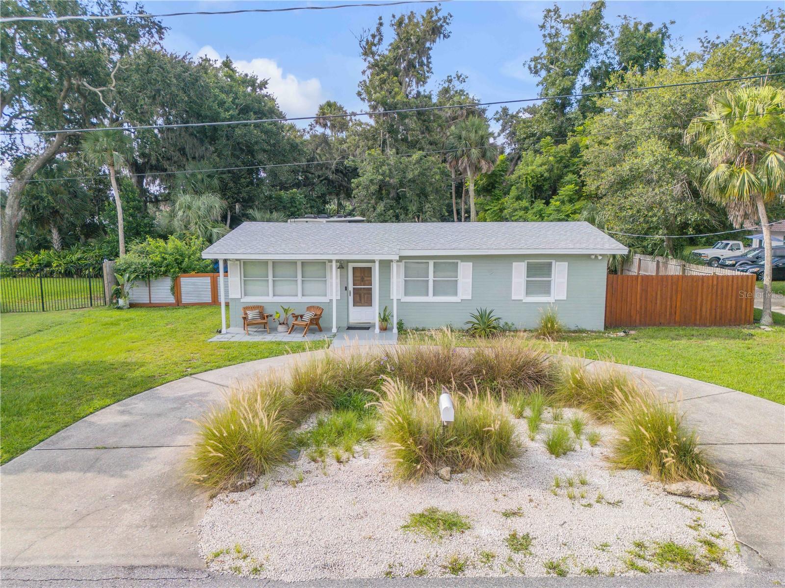 Charming coastal cottage on an oversized lot just steps to the Intracoastal Waterway and minutes to New Smyrna Beach. This solid block home offers the perfect setup for boating and beach enthusiasts, with a public boat launch only a few blocks away and plenty of room to store toys. Hop on a golf cart and be to the beach or exploring Flagler Avenue’s dining, boutiques, and nightlife in less than 10 minutes. Outdoor lovers can walk or bike scenic Riverside Drive to Veterans Memorial Park, where you will find a fishing pier, playground, and picnic pavilions. A screened porch overlooks the shaded, fully fenced backyard, complete with a patio ideal for barbecues and gatherings. Peace of mind comes with recent updates including a 2023 roof, double pane windows, hurricane shutters, and recently installed appliances. Whether you are searching for a full time home or a vacation retreat, this property offers the ultimate New Smyrna Beach lifestyle, close to marinas, golf courses, and just a short drive to Canal Street’s art galleries and restaurants.