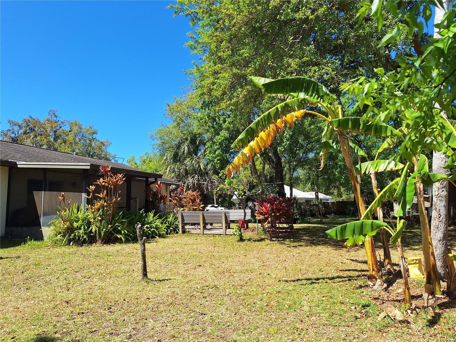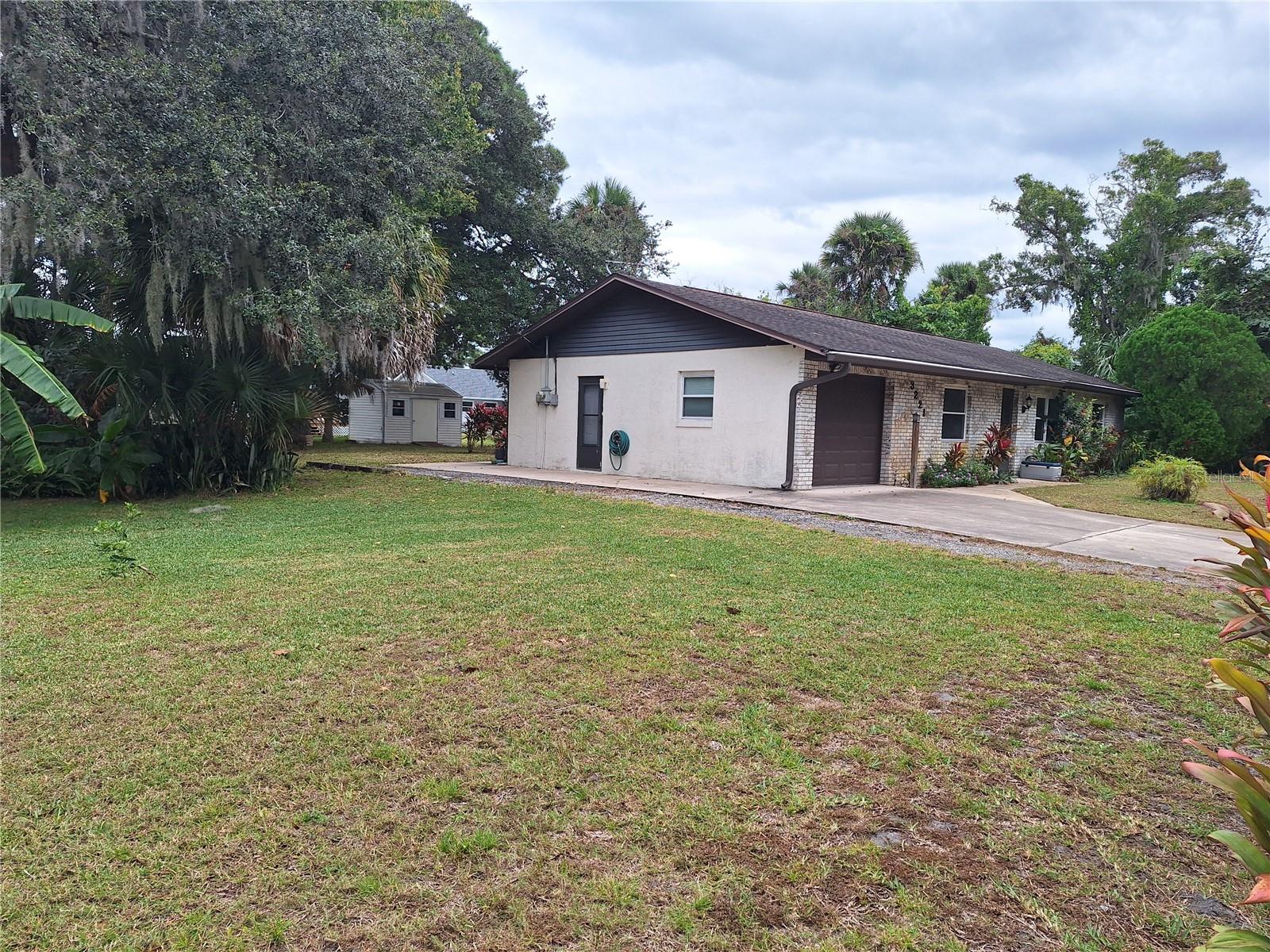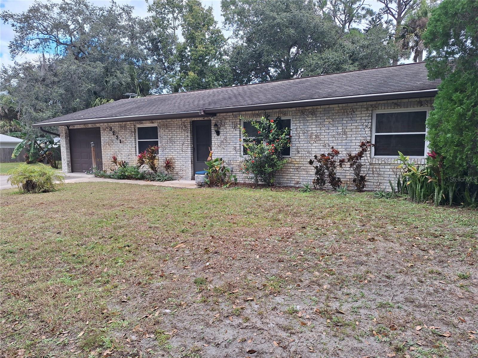 Would you love to have the benefit of privacy and space around your home? This is it! You can have a home AND your OWN buildable 80x125 lot to the North, making total lot size a rare 160’x125’ (home and extra lot are 1 parcel)! Extra lot is a serene park like setting, landscaped and mostly cleared allowing you to easily expand & create your vision- subdivide, build workshop, extra garage, or just simply enjoy the space. Solid concrete block home with brick front with attractive landscaping, 3BR 2BA with 1 car garage, expanded driveway space perfect for backing in your boat, camper, etc, Home features original charm, with just a little touch up here & there, you could easily be moved right in. Split floorplan, functional space, Galley kitchen with lots of counter space, roomy bedrooms, wood blinds, Newer windows and slider door, and even leaf guards on the 2022 installed gutters! Slider off dining room to 11'x10' screened porch over looking a nicely landscaped back yard with a sitting area out back too, perfect for outdoor entertainment. Yard features an abundance of fruit trees including banana trees, grapefruit, citrus & more. It gets better, 2 sheds (with electric) are included! Edgewater is nestled along the Indian River with fishing, kayaking and boating at your back door. About 4 miles to the closest boat ramp, just around corner from shopping, restaurants, skate park and more. No HOA. Just under 10 miles to beautiful New Smyrna Beach beaches! Welcome Home!