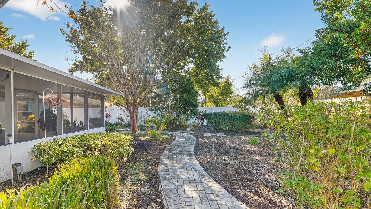 This well-maintained three-bedroom, two-bath home located in Edgewater’s no HOA community of Florida Shores offers a warm blend of style, comfort, and easy laid back living. Vaulted ceilings and an open floor plan create an airy, inviting interior, complemented by a beautifully updated kitchen, refreshed bathrooms, and split bedrooms for privacy. A brand-new HVAC system ensures year-round comfort. The extended screened lanai provides a relaxed space for morning coffee, evening gatherings, or peaceful downtime. Outside, a charming cottage-style shed offers the perfect spot for a workshop, gardening space, or additional storage, while the outdoor shower adds a refreshing coastal touch. The spacious backyard features winding garden paths and room to personalize or expand. Set high and dry with no history of flooding, this beautiful Edgewater home delivers peace of mind with comfort and charm.