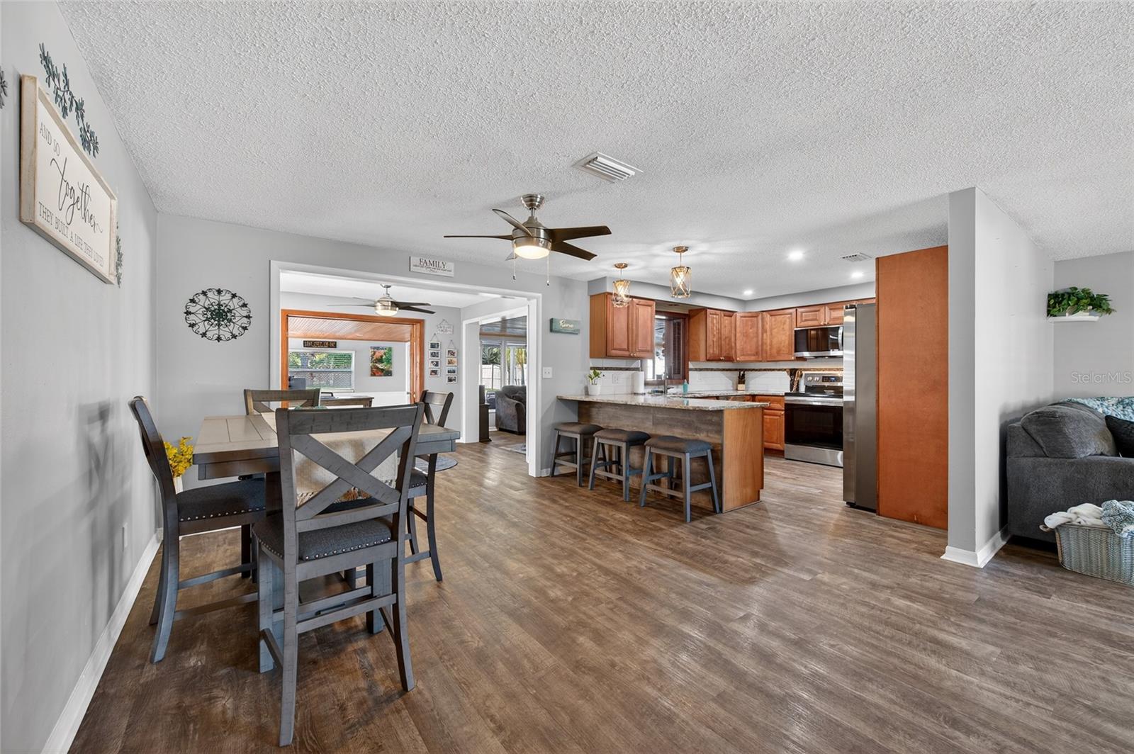 Discover coastal living at its best in this fully renovated, move-in ready ranch home just one block from the beautiful Indian River in Edgewater. Surrounded by lush coastal landscaping, this home offers the perfect blend of charm, comfort, and modern design—all just a short golf cart ride to Menard-May Park and the sandy shores of New Smyrna Beach. Step inside to a bright open layout featuring all-new finishes, luxury flooring, and a soothing coastal color palette. The modern kitchen boasts stainless steel appliances, sleek countertops, and custom cabinetry—ideal for both everyday living and entertaining. Two spacious bedrooms and two updated baths provide comfort and style, while the bonus spaces add incredible flexibility. Enjoy a cozy evening in the bonus room with a wood-burning stove, or entertain in the bar/recreation room with an en suite bath—either of which could easily convert into a third bedroom or private guest suite. Every detail has been thoughtfully updated, including a new roof, energy-efficient windows, and designer lighting. Outside, the private backyard and tropical landscaping create a peaceful retreat perfect for relaxing, grilling, or hosting friends after a day on the water; including a putting green!! With the river just steps away and the beach, park, and local restaurants accessible by golf cart, this home offers the ultimate Florida lifestyle—modern comfort, coastal beauty, and unbeatable convenience in one of Edgewater’s most desirable neighborhoods.