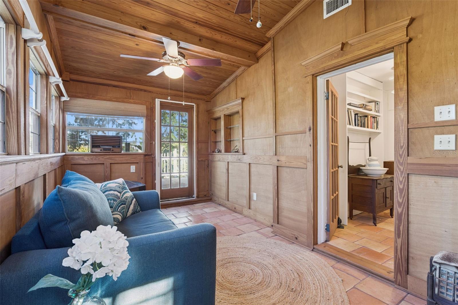 A Grand Estate with Endless Possibilities. Over Half an Acre with Intracoastal River Views! Set on an extraordinary oversized parcel, this remarkable property captures the essence of timeless Old Florida living. The main residence offers spectacular water views from the first-floor living room and family room, as well as the upstairs bedroom and bonus room, creating a serene backdrop throughout the home. A charming, detached one-bedroom cottage adds incredible versatility, complete with a full kitchen, bathroom, spacious laundry room with storage, and a screened back porch, ideal for guests, extended family, or a potential pool house. Beautiful wood accents throughout blend classic character with everyday comfort. As you follow the brick walkway to the stately, wide brick front porch, you are immediately welcomed by the home’s majestic presence and enduring charm. Inside, rich hardwood floors, a brick fireplace, elegant crown molding, tongue-and-groove ceilings with wood beams, and a custom kitchen featuring a gas cooktop and built-in oven create an atmosphere of warmth and refined comfort. Stroll the expansive grounds and be inspired by the lush variety of mature foliage, offering both privacy and endless opportunities to create your own outdoor oasis. This is a rare opportunity to own a truly special property, where charm, space, and potential come together in perfect harmony. The main residence is thoughtfully appointed with modern upgrades seamlessly blended into its timeless character. A tankless gas water heater, gas-integrated chef’s cooktop set within the island, built-in oven and microwave, farmhouse sink, and a custom built-in spice rack make the kitchen both beautiful and highly functional. The original kitchen space has been reimagined as an elegant butler’s pantry and bar area, complete with a stainless steel sink, perfect for entertaining. Throughout the home, exquisite wood craftsmanship takes center stage, including raised paneling, crown molding, board-and-batten detailing, and tongue-and-groove ceilings that add texture, depth, and true architectural soul. Natural fiber grasscloth wall coverings introduce warmth, character, and understated sophistication. Upstairs, the Florida room is wrapped in rich natural wood paneling and trim, creating an organic, biophilic retreat. A wall of windows floods the space with natural light while framing serene views of the lush greenery and mature trees that surround this magnificent property. The authentic brick fireplace has been converted to gas, offering both convenience and cozy ambiance. For peace of mind, the south side of the home is hard-wired for a generator. Major system updates include sewer lines replaced in 2022, a new A/C system and all new ductwork in 2023, and a roof replacement in 2019. This breathtaking property offers a rare blend of classic charm, thoughtful upgrades, and expansive outdoor beauty. It is everything you’ve been searching for, don’t wait. This is your opportunity to begin living the dream.