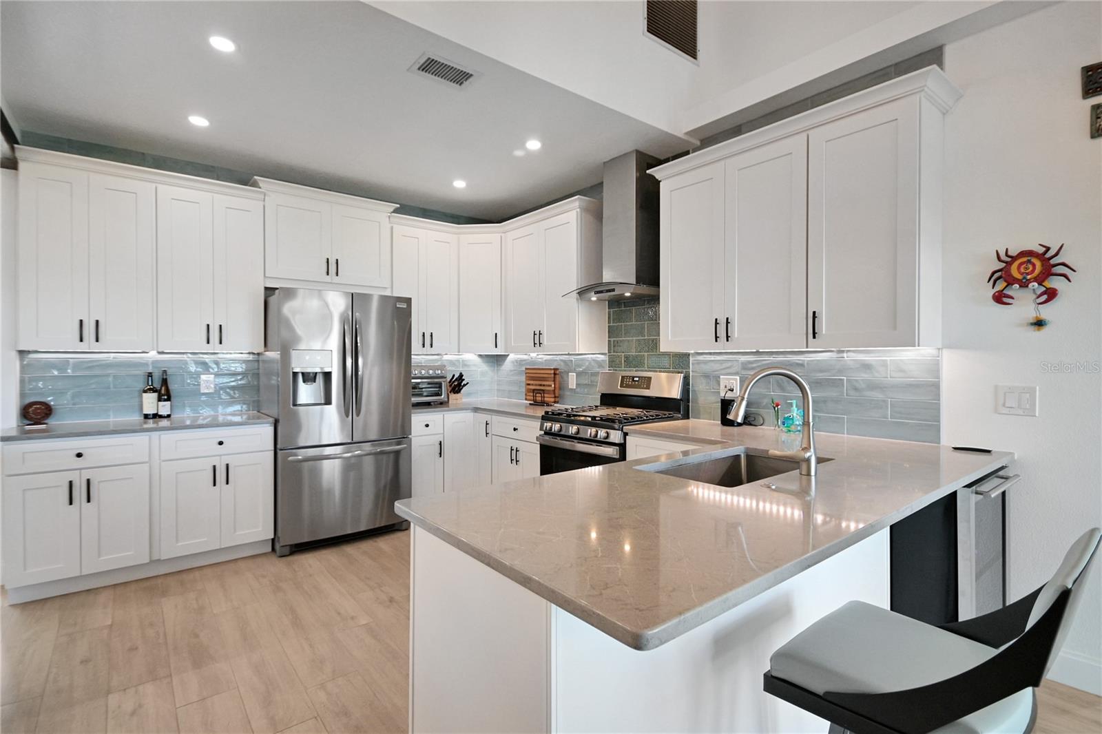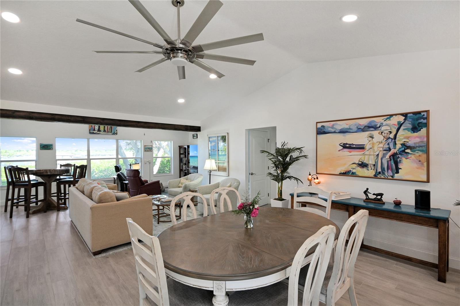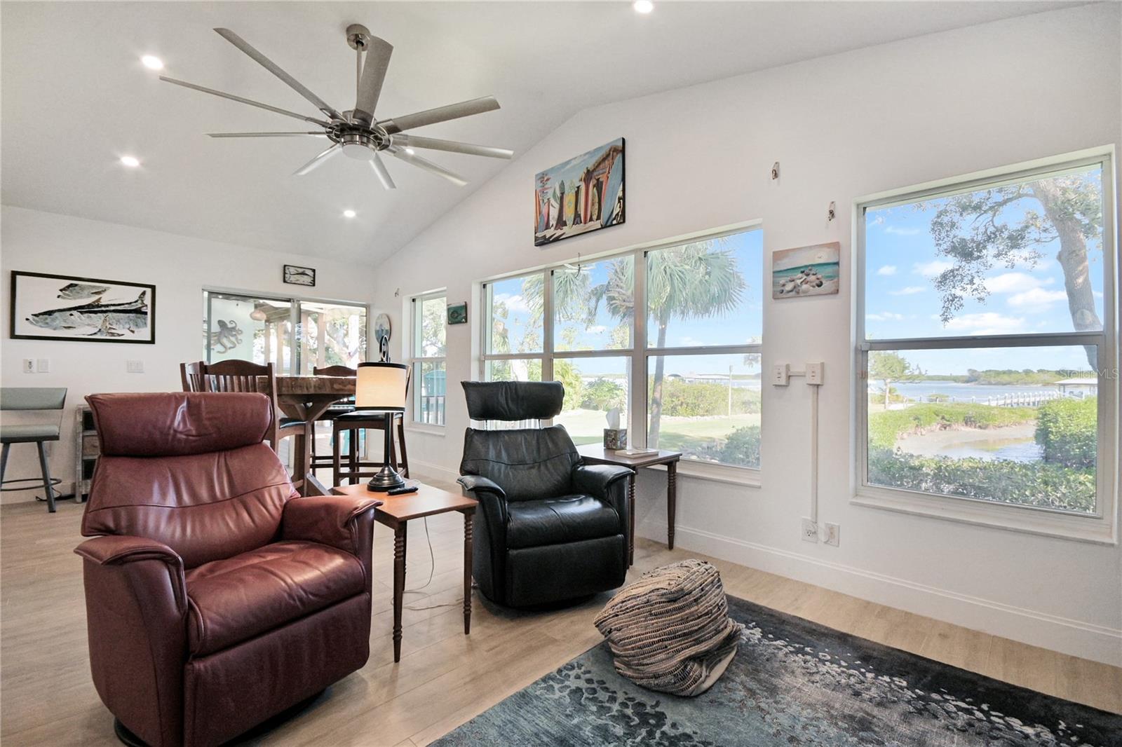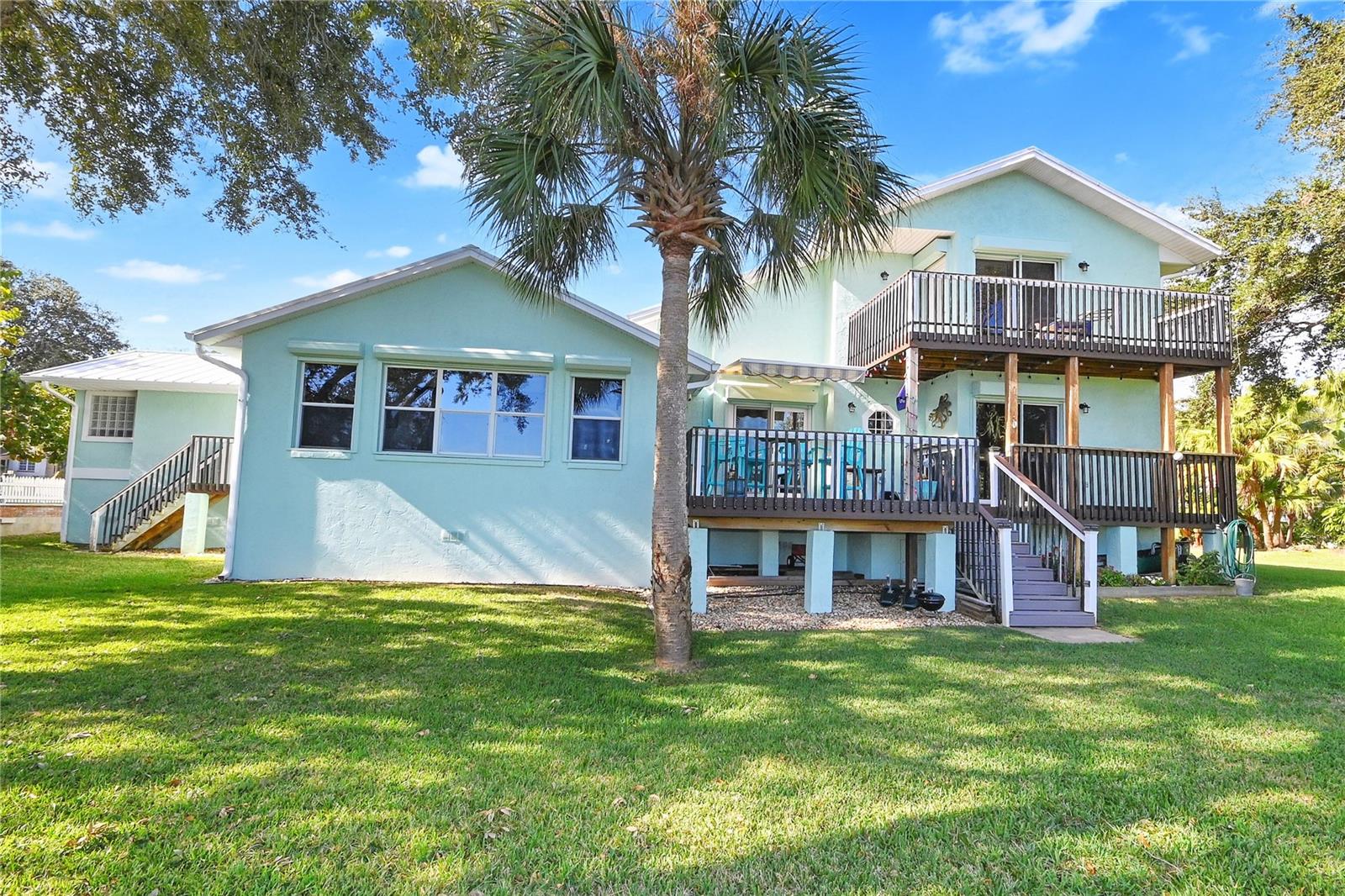 Experience true riverfront living on the Direct Intracoastal Waterway in North Edgewater along scenic Riverside Drive. This stunning 4-bedroom, 2.5-bath home was completely renovated and updated in 2021–2022 and offers a highly desirable open-concept floor plan with the primary en-suite conveniently located on the first floor. Designed for both everyday living and entertaining, the expansive kitchen features a gas range, quartz countertops, stainless steel appliances, custom cabinetry, and a large center island perfect for gathering with family and friends. Most living spaces capture breathtaking river views, while outdoor living is elevated with a large first-floor deck with low-maintenance composite decking and a second-floor balcony. The great room boasts LED lighting, a vaulted ceiling, plenty of dining space and new flooring, creating a bright and inviting atmosphere. Upstairs, you will find two oversized bedrooms, each with walk-in closets, along with a beautifully updated full bathroom and additional storage room. This home offers peace of mind with a Generac home generator, roll-down hurricane shutters and a strong track record of never flooding in previous storms. The spacious backyard lawn gently slopes down to the river and private dock, complete with a 10,000 lb boat lift, water, electric, recently replaced composite decking by Titan and a floating dock, making it ideal for serious boaters and waterfront enthusiasts. Additional highlights include an oversized paver circle driveway for ample parking and a 2-car garage with 12-foot ceilings with loft-style storage. Professional landscaped with Sylvester and Areca palm trees. Centrally located along the river, this property provides easy access to the area’s renowned boating lifestyle, whether fishing the backwaters for trout and redfish or cruising to nearby waterfront restaurants. This is Florida riverfront living at its finest. It’s also a great area to walk, bicycle or golf cart with sidewalks and low speed limits. Only 1.75-miles to Historic Canal Street, 3-miles to Flagler Avenue, 3.5-miles to the Beach and 5-miles to I-95.