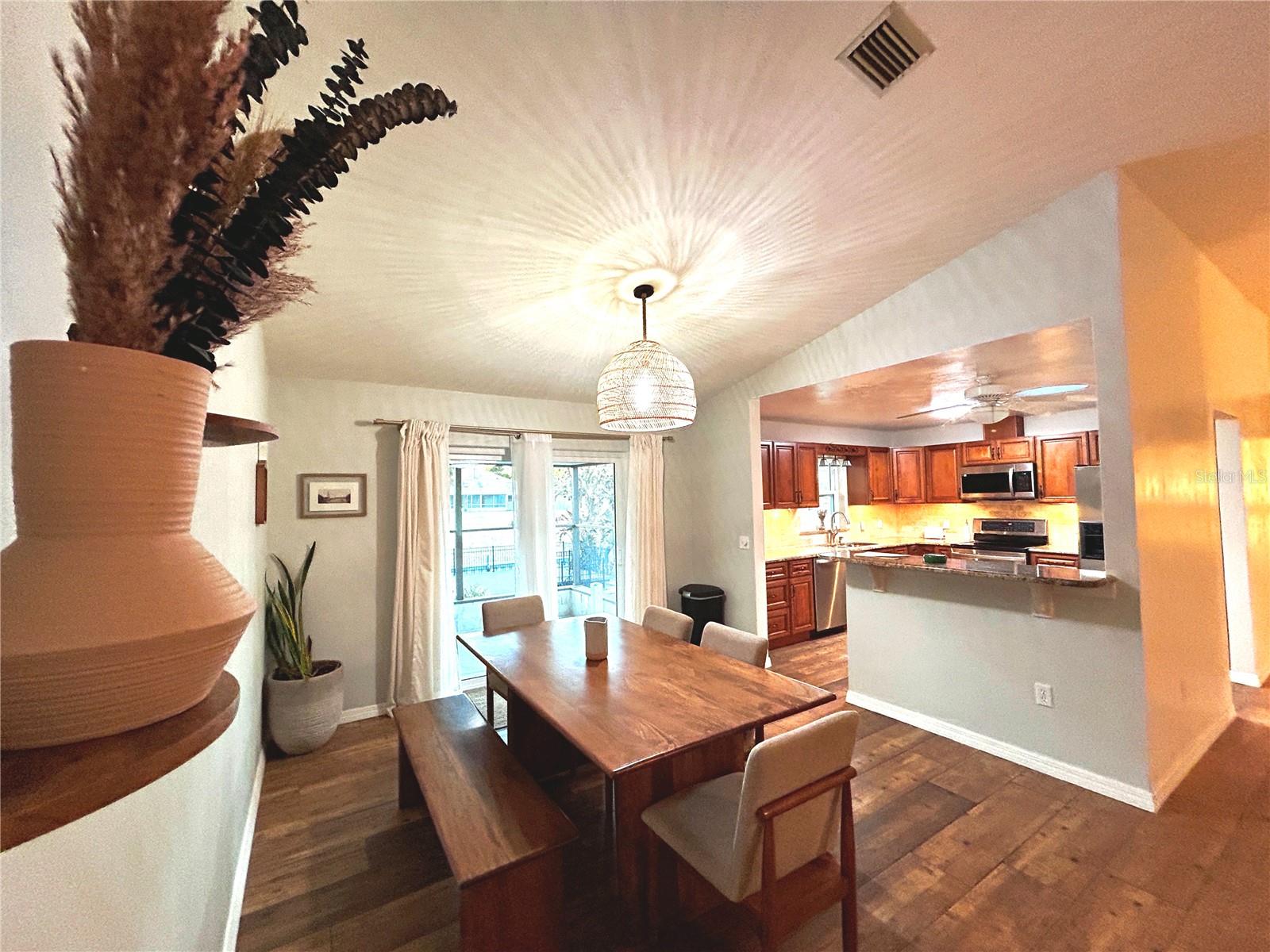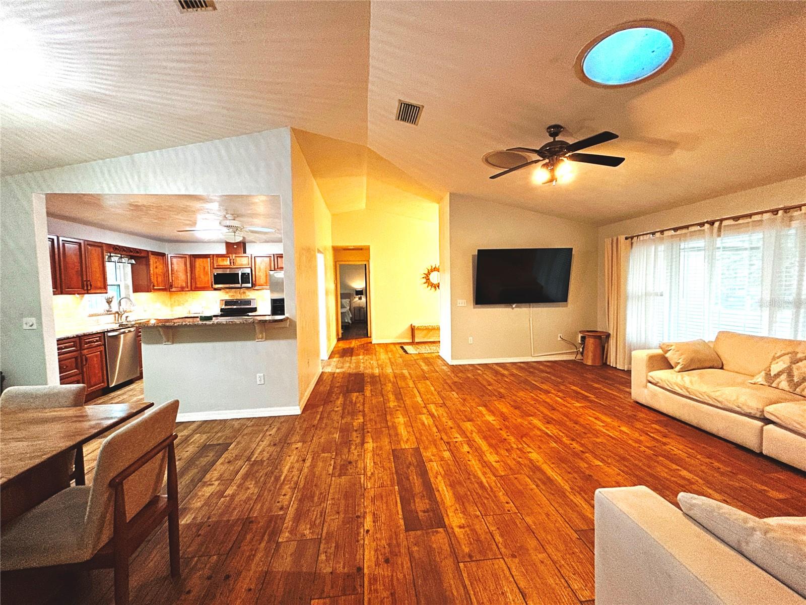 Welcome to 117 Azalea Road in Waterway Park, located in Flood Zone X for added peace of mind, a significant advantage for waterfront living. Situated in one of Edgewater’s most desirable canal front enclaves where neighbors know each other by name and holiday traditions bring the community together, this property offers true Florida boating with direct saltwater canal access to the Intracoastal Waterway and the Atlantic beyond with no low clearance fixed bridges between you and open water. Bring the boat, bring the jet skis, and head out at a moment’s notice from your private boathouse and seawall and a composite deck. Positioned on more than a third of an acre, the oversized waterfront lot provides exceptional space and flexibility, including generous room alongside the home for boats, RV parking, or additional recreational vehicles. The home offers 1,735 square feet under air and 2,917 total building square feet including the oversized two car garage, covered entry porch, and rear screened enclosure. The exterior presents a sharp cream façade complemented by black architectural shingles and clean coastal lines. Inside, a huge welcoming foyer opens to an expansive vaulted living room filled with natural light, enhanced by three sun tunnels and minimal texture ceilings that create a bright, airy feel. Wood look tile flooring runs throughout for durability and seamless flow, and the split bedroom floor plan provides privacy without sacrificing openness. The updated kitchen features all wood cabinetry with soft close drawers, a lazy Susan corner system, stainless appliances, electric under cabinet lighting, granite countertops, and abundant prep and storage space. The glass doors further enhancing efficiency and function. A spacious interior laundry room adds everyday convenience. Both guest bedrooms are generously sized and can comfortably accommodate king size beds, and mounted televisions remain in all three bedrooms. The updated guest bath and the primary bath reflect thoughtful upgrades, while the primary suite itself is generously proportioned with space for a king bed, an extremely large walk in closet, and a Zen style shower accented by a modern barn style sliding door. The oversized garage includes a dedicated workshop area and significantly updated electrical systems, adding practical value for hobbyists or additional storage needs. With no HOA, deep water access, a quiet paved street, proximity to shopping, dining, and the beach, and the added benefit of Flood Zone X positioning, this is not simply a waterfront property. It is a well appointed coastal lifestyle opportunity designed for both comfort and adventure.