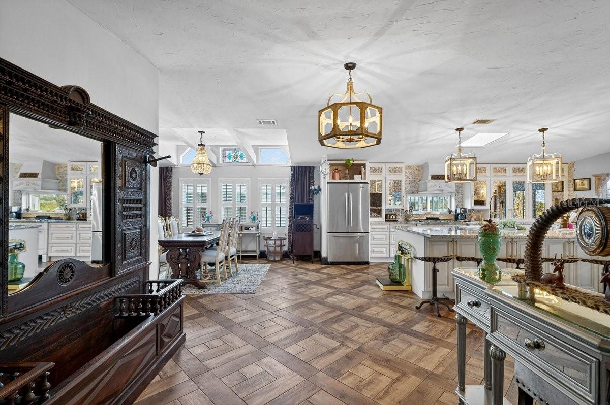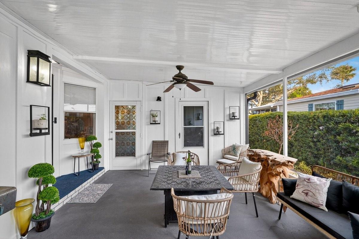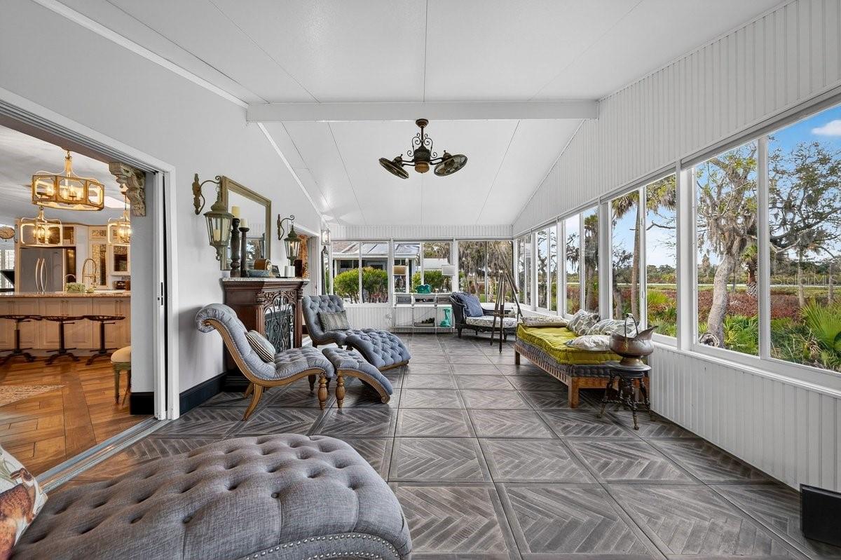 Perfectly positioned along 65 feet of direct Intracoastal Waterway frontage within the highly sought-after, guard-gated community of Edgewater Landing, this extraordinary 3BR/2BA/1-car garage residence redefines what manufactured home living can be. Known as the “condo alternative,” Edgewater Landing is an award-winning active 55+ community in Edgewater, Florida—voted one of the 50 Best Communities to Retire to—with a nearly $5M recreation center (currently under construction) recognized as #1 in America by the National Home Builders Association. This one-of-a-kind home has been completely transformed inside and out with elevated finishes rarely found at this price point, beginning with its striking board-and-batten Hardie-board exterior and fresh paint. Set along the riverfront walking path, the charming front garden and seating area invite friendly conversations with neighbors strolling by, while a screened lanai breezeway connects the garage, storage room, and main entry. Step inside and sweeping river views immediately command attention, showcased from nearly every room. The open living room features a fireplace and flows into a dining room with transom windows and beamed ceiling, leading to a showstopping chef’s kitchen with solid wood cabinetry, granite counters, full-height backsplash, stainless refrigerator and dishwasher, and an impressive $8,000 six-burner Italian gas range with custom hood that complements the cabinetry. A massive island with sink and abundant storage anchors the space, while two wide openings lead to an expansive, nearly 40-foot air-conditioned Florida room complete with wet bar, wood cabinets, granite counters, and wine cooler—perfect for entertaining as yachts glide past. Down the hall are two guest bedrooms, a well-appointed hall bath, and a spacious indoor laundry room with exterior access, while the gracious primary suite offers double closets and distinctive barn doors—collected from world travels—opening to a spa-like bath with clawfoot tub, separate shower, enclosed water closet, and dual vanities. Throughout the home, intricate tile flooring, designer lighting, and abundant natural light elevate the ambiance. Beyond the home, residents enjoy 24-hour security, clubhouse, heated pool, fitness center, dance floor, catering kitchen, outdoor BBQ and picnic areas, bocce ball, shuffleboard, tennis and pickleball courts, miles of scenic walking trails, two fishing docks, private boat ramp, canoe and kayak racks, plus RV and boat storage—an unparalleled waterfront lifestyle that truly embodies the Florida dream. ALL INFORMATION IS ASSUMED ACCURATE BUT NOT GUARANTEED. ALL MEASUREMENTS ARE APPROXIMATE. BUYERS AND THEIR AGENTS SHALL VERIFY ANY INFORMATION DEEMED IMPORTANT TO THEM.