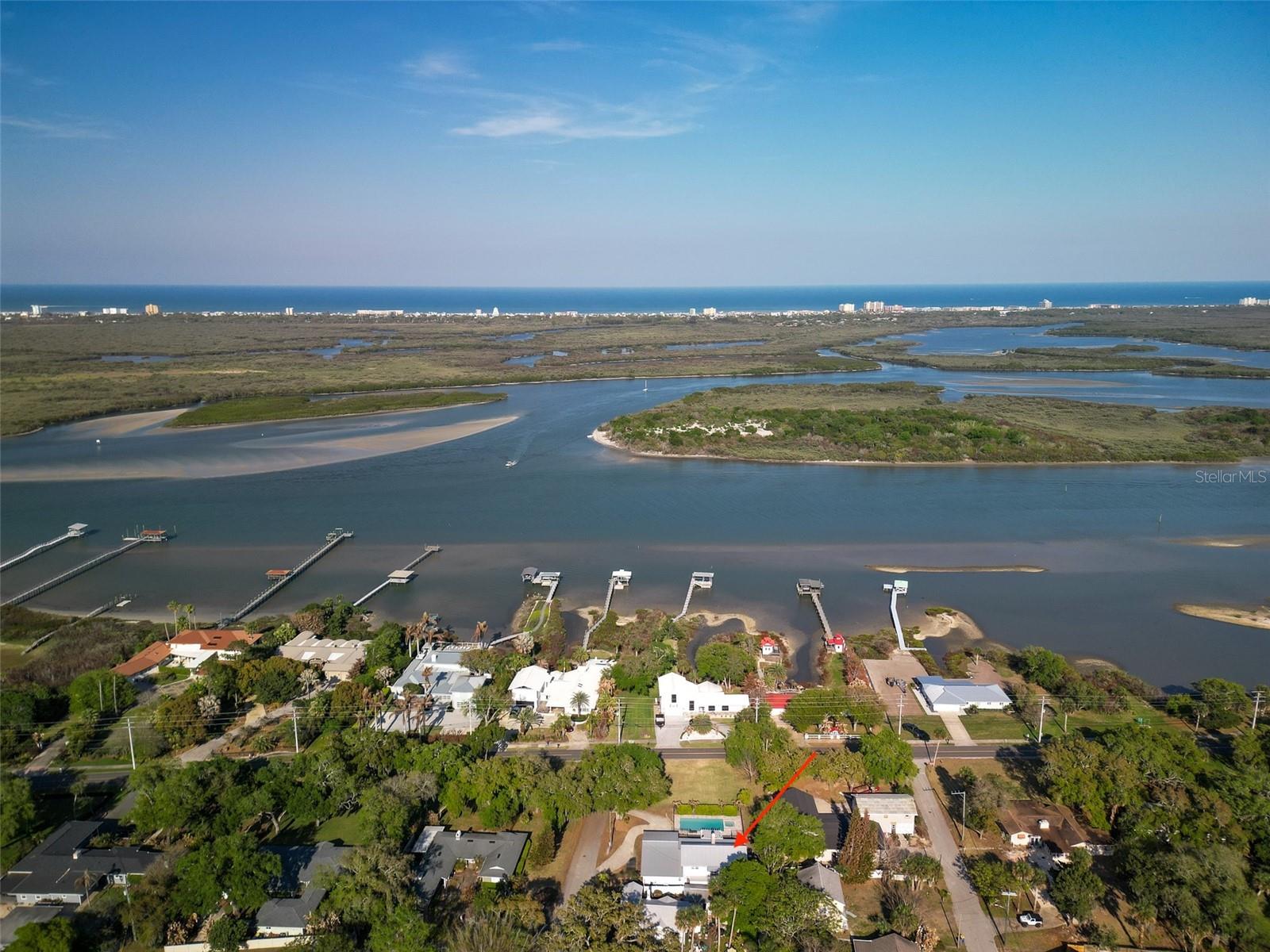 Between US#1 and River and just 1.8 miles to all that downtown Canal Street offers, this 4 bedroom 4 bath spacious home on nicely elevated Riverside Drive corner lot, was renovated in 2019 with a new primary suite and a fabulous pool both added in 2020. The spacious living room features a gas fireplace and a large picture window that overlooks the pool and yard with a glimpse of the river, too! The remodeled kitchen has a gas range, walk-in pantry, abundant cabinetry and generous counter space along with a bright southeast facing breakfast nook to enjoy the morning sun. The primary suite with two spacious closets is on the first level along with a first level guest bedroom presently used as a den. The second level bedrooms each have a walk in closet, a private bath and river views. The laundry room includes a full pool bath. The heated 16x32 resort-style salt pool is surrounded by travertine and there’s an expansive low-maintenance Trex deck offering plenty of outdoor living space for relaxing year-round in true Florida style! The large garage (new door 2020) with retractable screen (2023), is under air (not counted in living area) and is set up as recreational and additional living space. Don’t miss the small storage area that is accessed from the rear of the building. Metal roof (2020). Natural gas serves the central HVAC (2024) for the original home, the stove, water heater (2019), pool, spa and fireplace. Kitchen appliances were replaced in 2019. With a flexible layout ideal for multi-generational living, potential in-law accommodations, or as a primary or vacation home, this property offers both versatility and location in one exceptional package.
