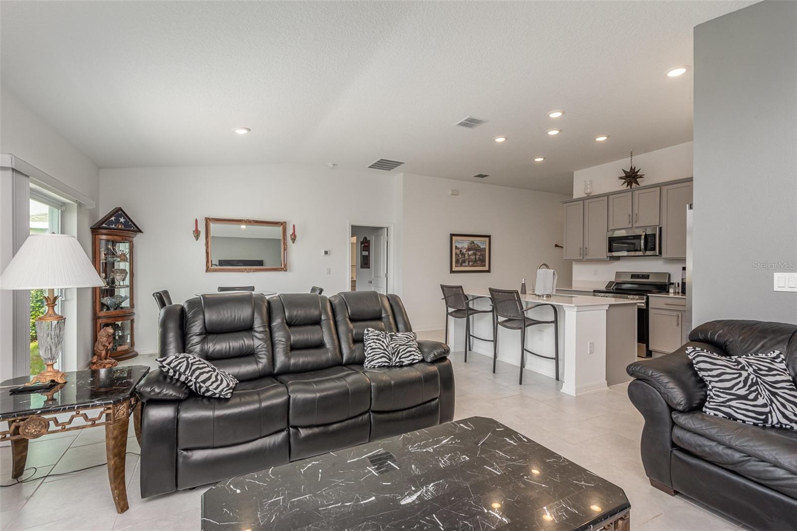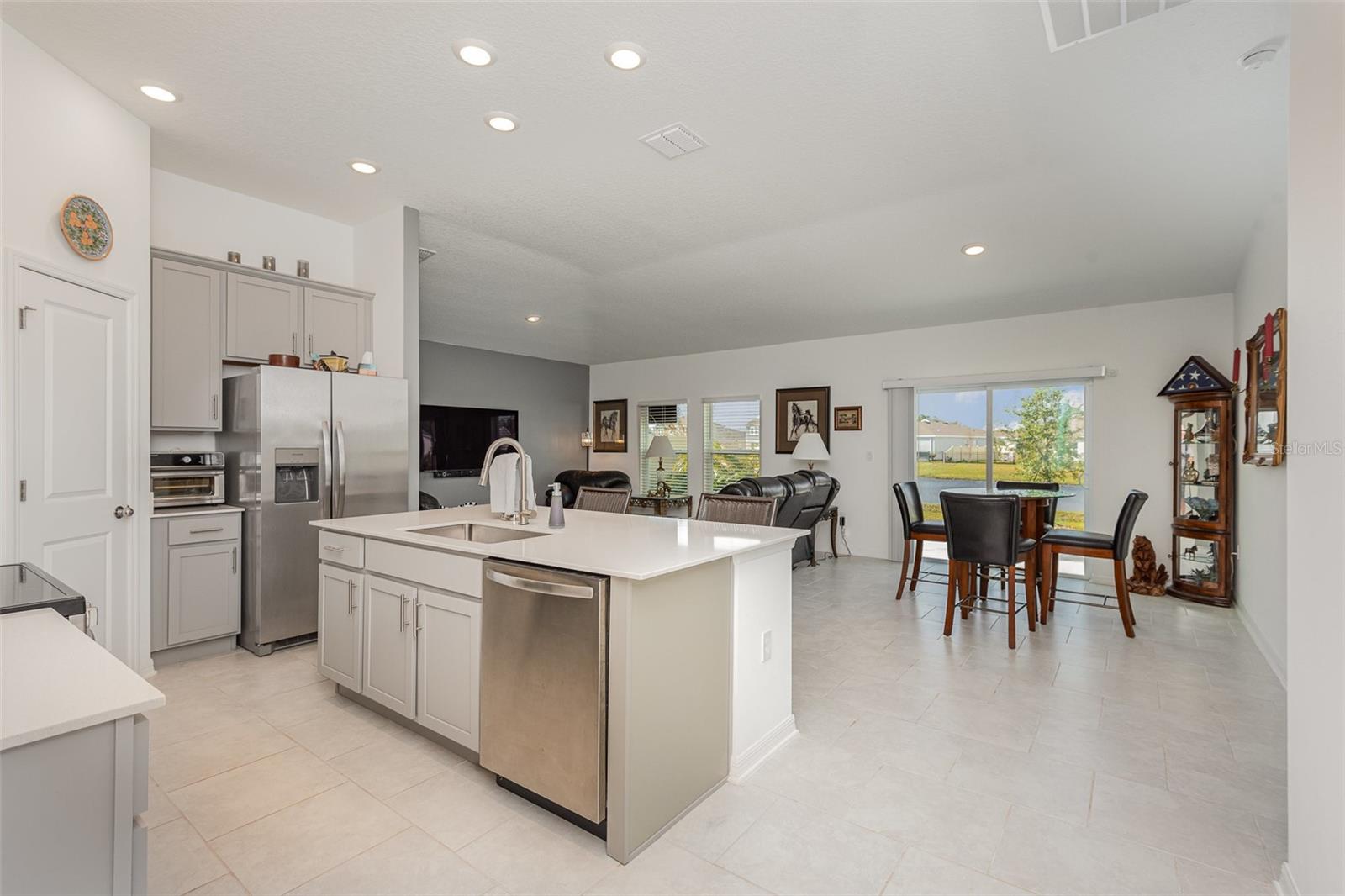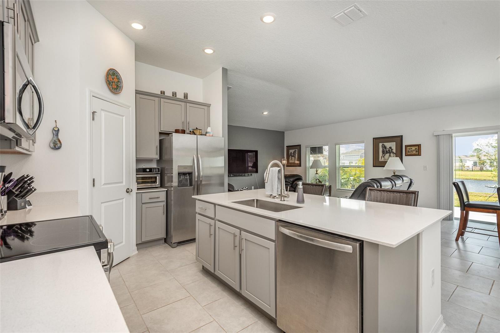 Why wait to build when the perfect home is ready for you now?? This stunning 2023-built, move-in-ready home combines modern design with thoughtful functionality. The open floor plan boasts upgraded tile flooring throughout the main living areas, creating a seamless flow that’s perfect for entertaining or relaxing. The heart of the home features a gourmet kitchen with quartz countertops, stainless appliances, ample cabinetry, and a spacious island that opens to the living and dining areas. The split bedroom layout ensures privacy, with a luxurious primary suite featuring a walk-in closet and en-suite bathroom, complete with dual vanities and a glass-enclosed shower. Two additional bedrooms share a well-appointed bathroom, offering comfort for family or guests. Step outside to a tranquil backyard with a picturesque pond view, a perfect way to end the day. The garage offers above-head storage, maximizing functionality. This home is the perfect blend of style, comfort, and convenience!