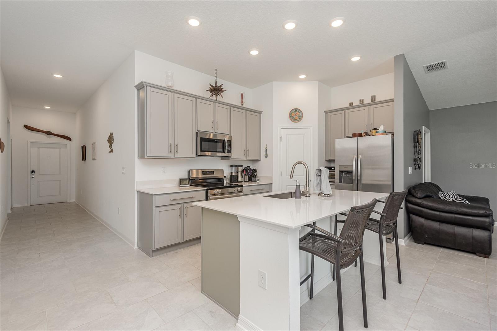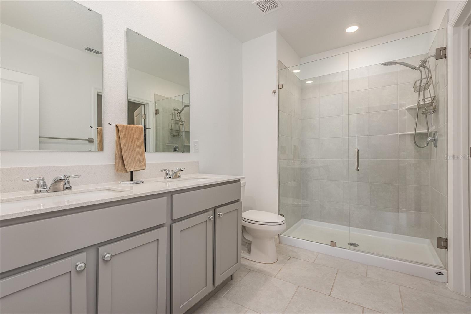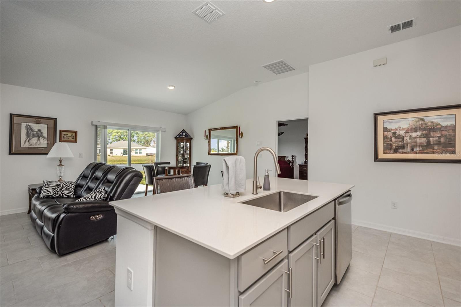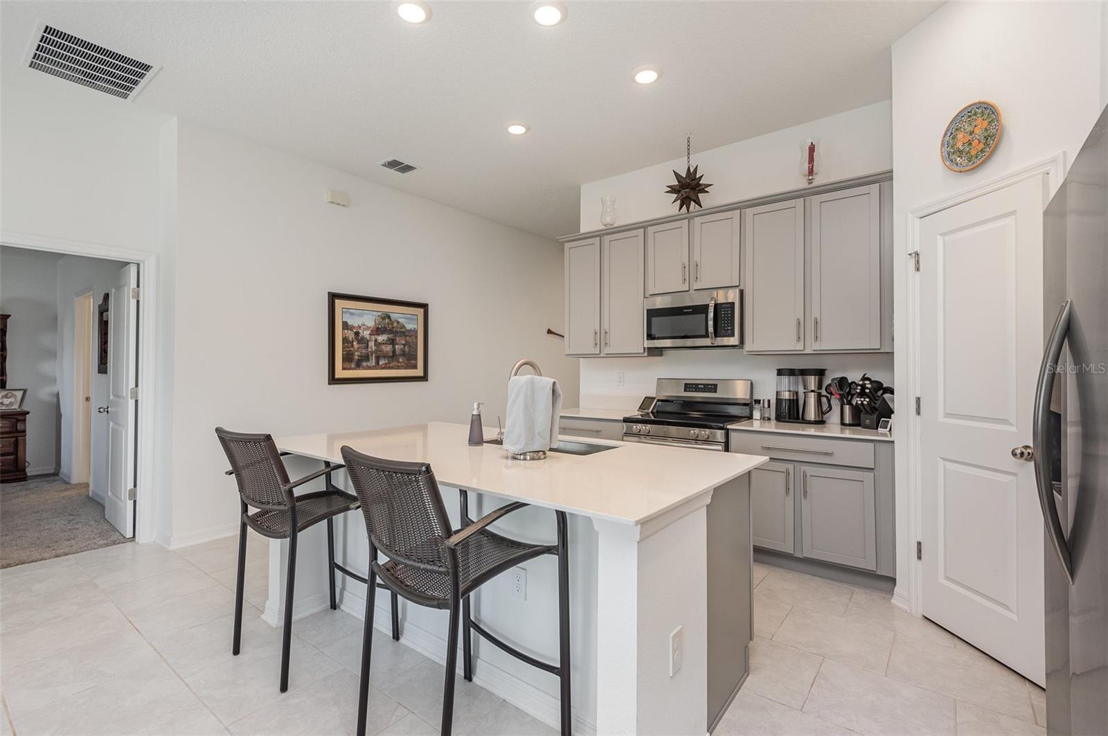 Why wait to build when the perfect home is ready for you now?? This stunning 2023-built, move-in-ready home combines modern design with thoughtful functionality. The open floor plan boasts upgraded tile flooring throughout the main living areas, creating a seamless flow that’s perfect for entertaining or relaxing. The heart of the home features a gourmet kitchen with quartz countertops, stainless appliances, ample cabinetry, and a spacious island that opens to the living and dining areas. The split bedroom layout ensures privacy, with a luxurious primary suite featuring a walk-in closet and en-suite bathroom, complete with dual vanities and a glass-enclosed shower. Two additional bedrooms share a well-appointed bathroom, offering comfort for family or guests. Step outside to a tranquil backyard with a picturesque pond view, a perfect way to end the day. The garage offers above-head storage, maximizing functionality. This home is the perfect blend of style, comfort, and convenience!