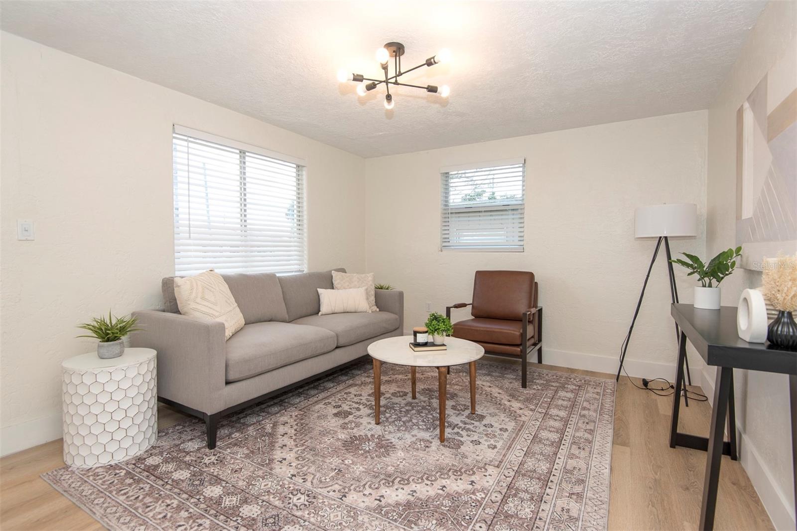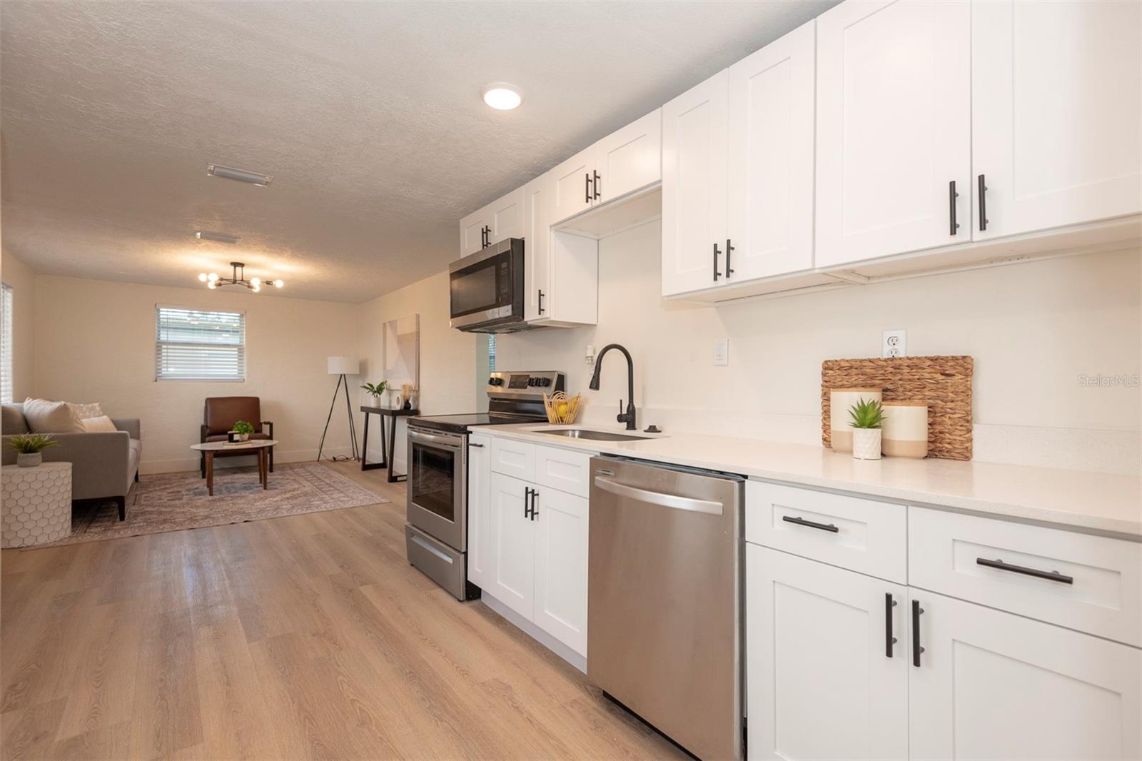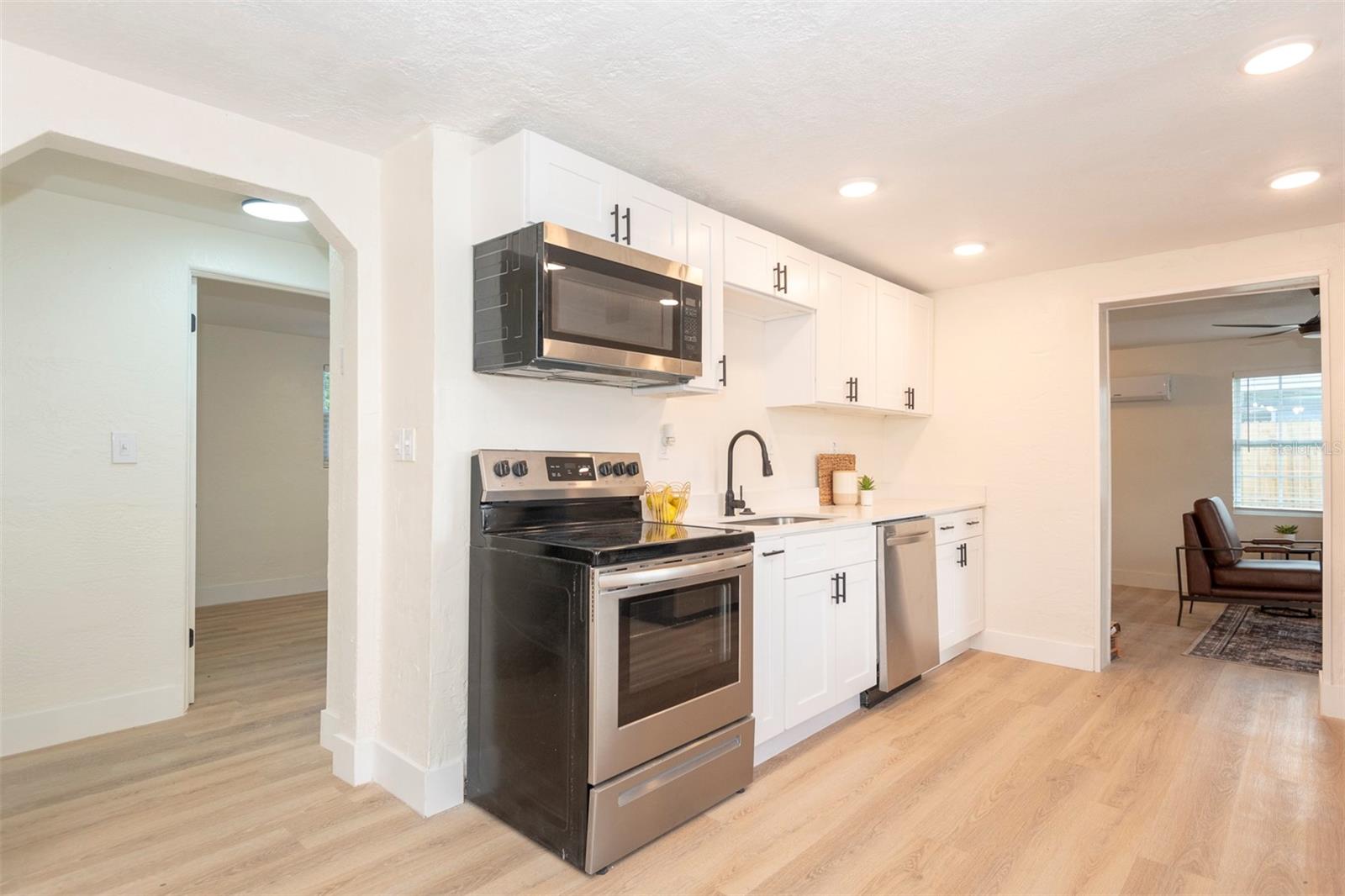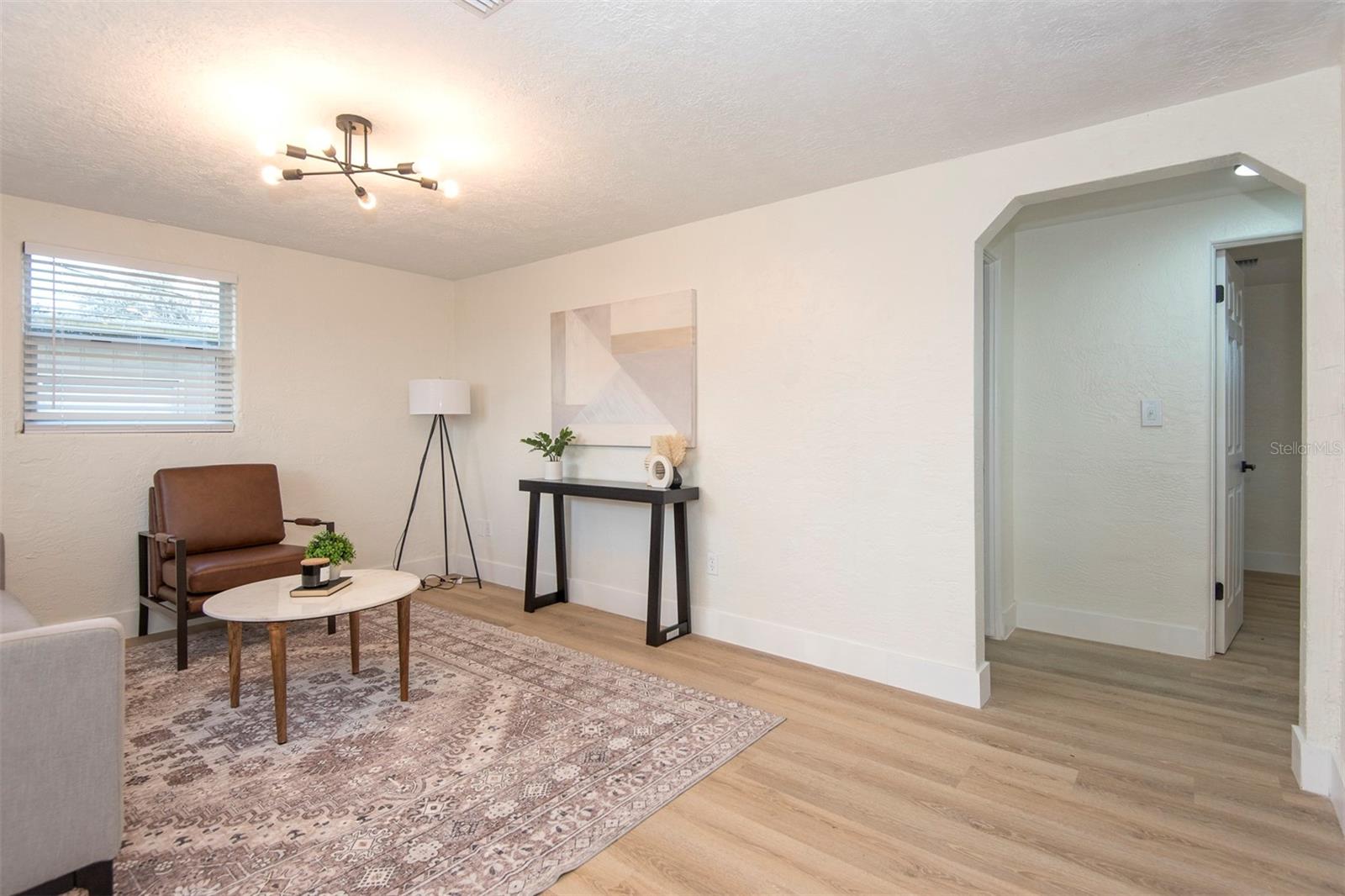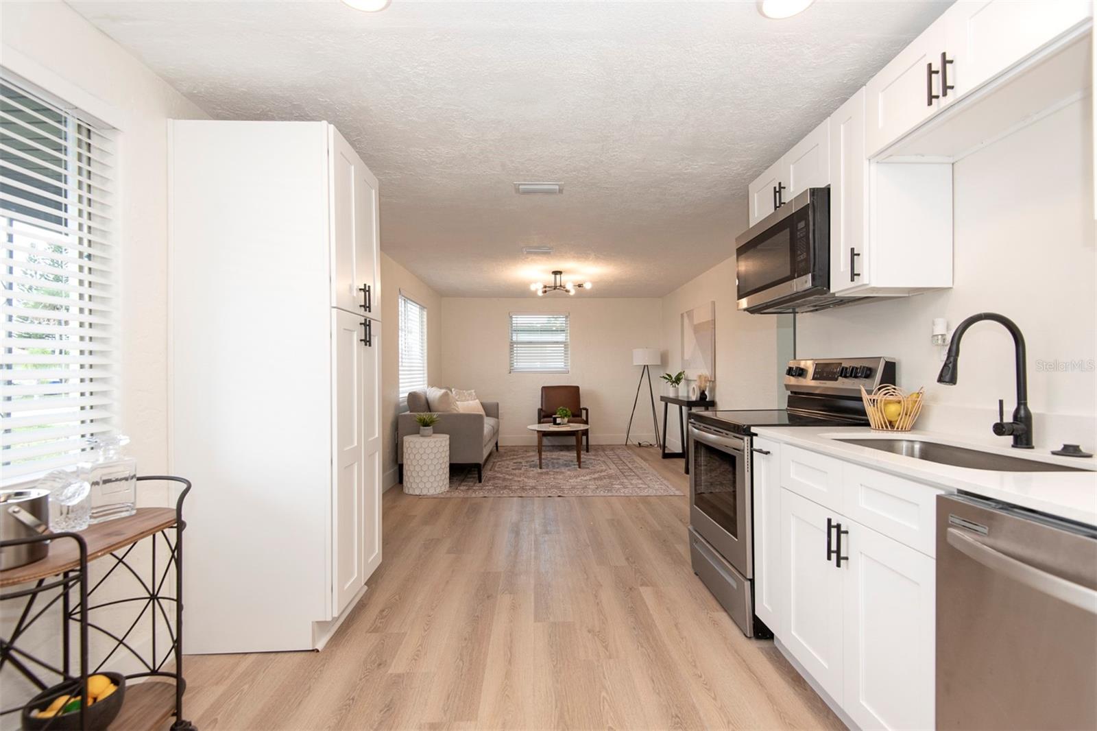 This beautifully updated home has been completely renovated inside and out, offering a fresh and modern living space. The home features a brand-new roof, providing peace of mind for years to come. The exterior and interior have been freshly painted, creating a clean, inviting atmosphere throughout. Inside, the brand-new kitchen is equipped with new cabinetry, quartz countertops, and stainless steel appliances, designed for both style and function. New Luxury vinyl plank flooring extends throughout the entire home, offering durability and an elegant, seamless flow. The home also includes a brand-new HVAC/AC system to keep you comfortable year-round. The fully renovated bathroom features a new shower with modern tile work, a stylish vanity with a quartz countertop, and updated fixtures. New light fixtures throughout the home enhance its contemporary feel. this move-in-ready property has a spacious big backyard, perfect for outdoor activities, gardening, or creating your own private retreat. Book your showing today!
