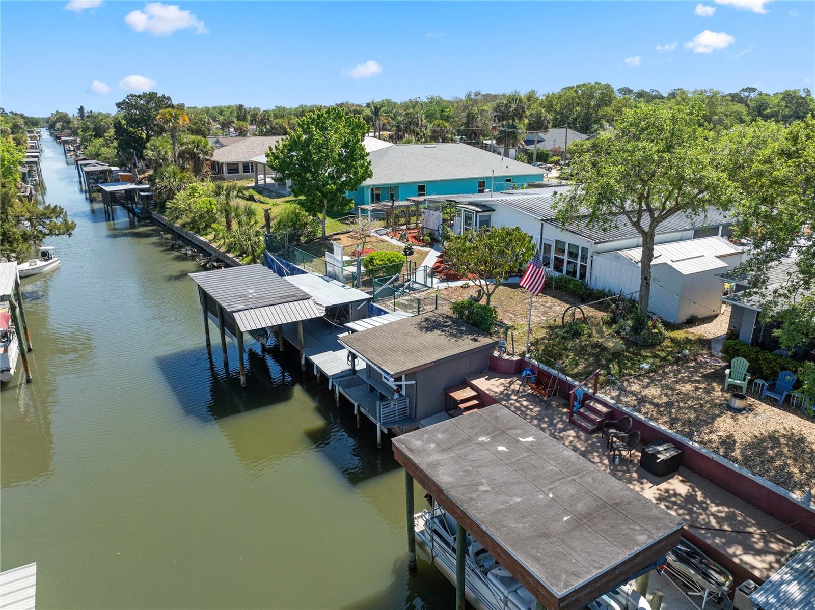 Welcome to waterfront living where you drop your boat from the covered boatlift your backyard and head out to the intercoastal. Home to some of the best fishing, shrimping and boating. Or fish from your deck where your will catch snook, tarpon, sheepshead and snapper to name a few. There is an additional boat lift for smaller vessels also. Plenty of areas to relax from the screened porch, covered dock and open covered porch surrounded by a tropical oasis and trellis gardens. This home has been updated with a new kitchen remodel, center island, backsplash, lighting, vinyl flooring throughout and bathrooms updated. This 4 bedroom, 2 bath home has plenty of opportunities to accommodate everyone. The 4th bedroom can be a den or additional living area and has built in closets. Walkthrough closets in the bedrooms and many windows for natural light. A large storage room in the home has storage for an extra refrigerator, freezer, house all your extras here, or this could be a great room for a craft, sewing, game room, man cave or she shed. Plenty of room for parking extra vehicles and all the toys, including a covered carport and a large shed that could fit a vehicle, boat, golf cart or use as a workshop as the current is utilizing it. A second driveway on the other side of the home has full set up with sewer, water and electric for an RV. It's minutes from beautiful New Smyrna Beach, where the nightlife is fun, the restaurants are amazing, and the shopping is plenty. Also, very close to hospitals, medical facilities, grocery stores and highway 95 for easy commute.