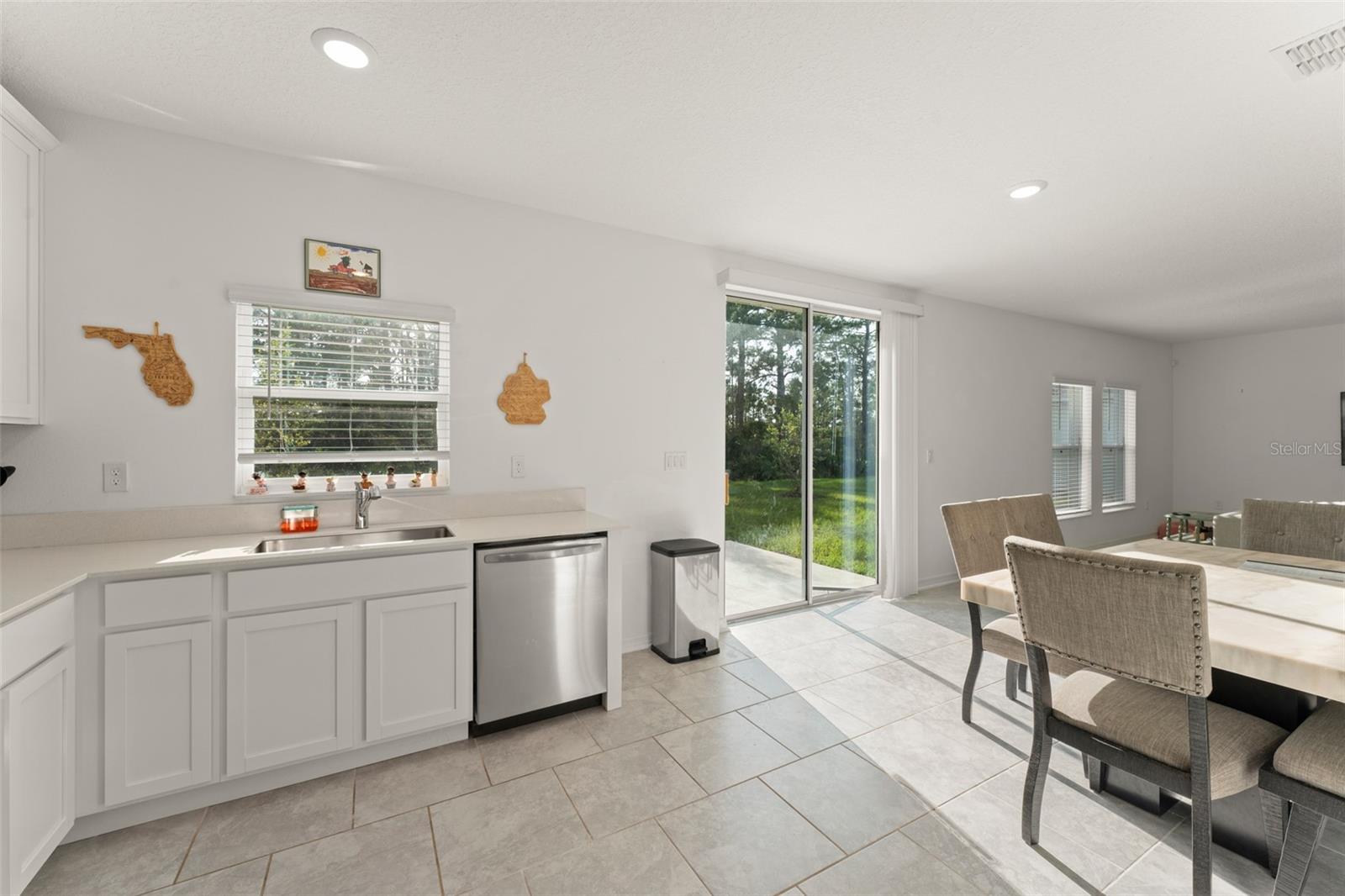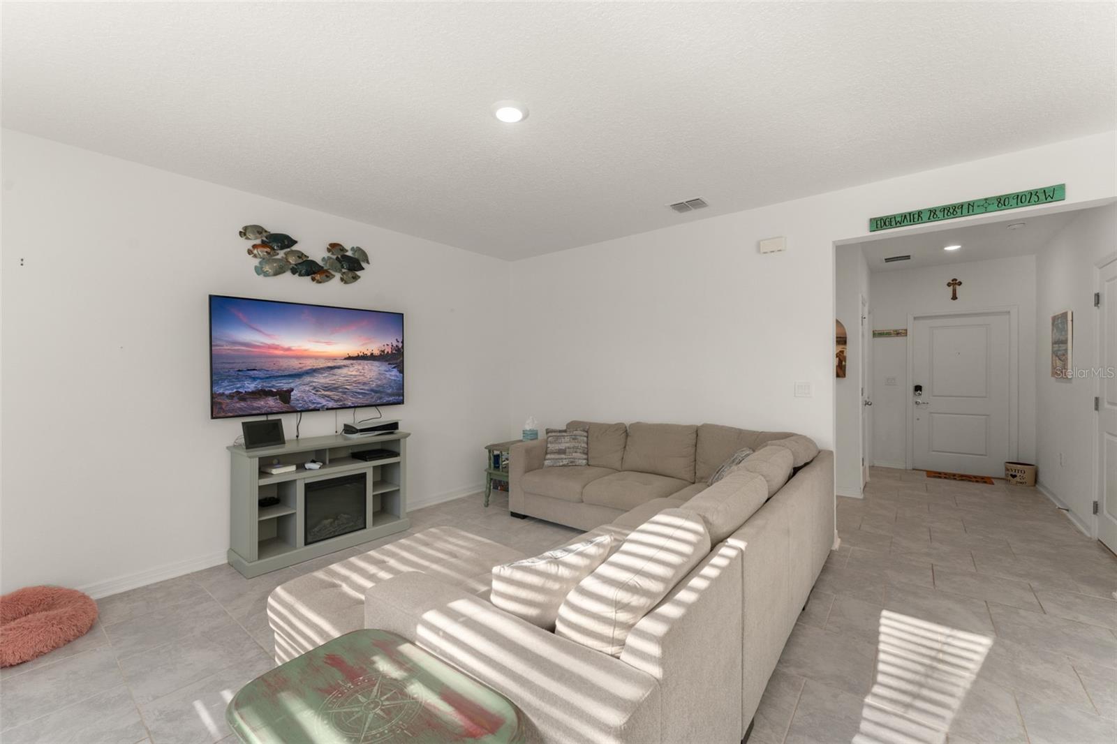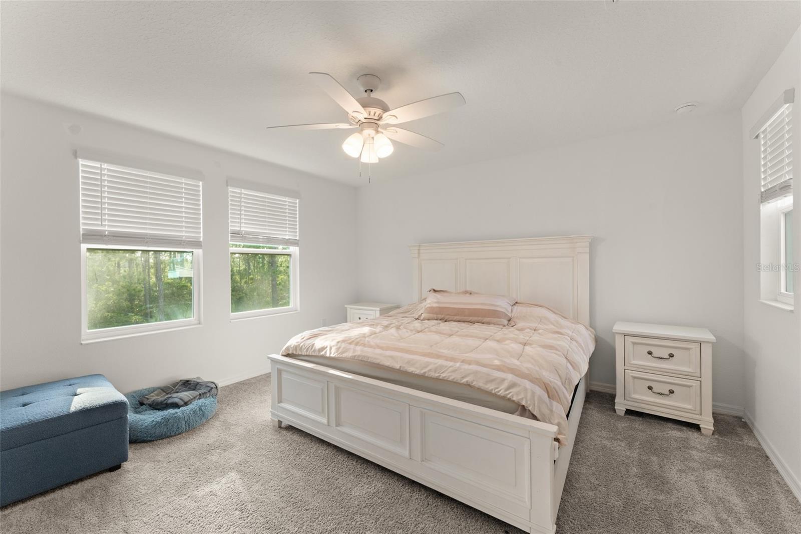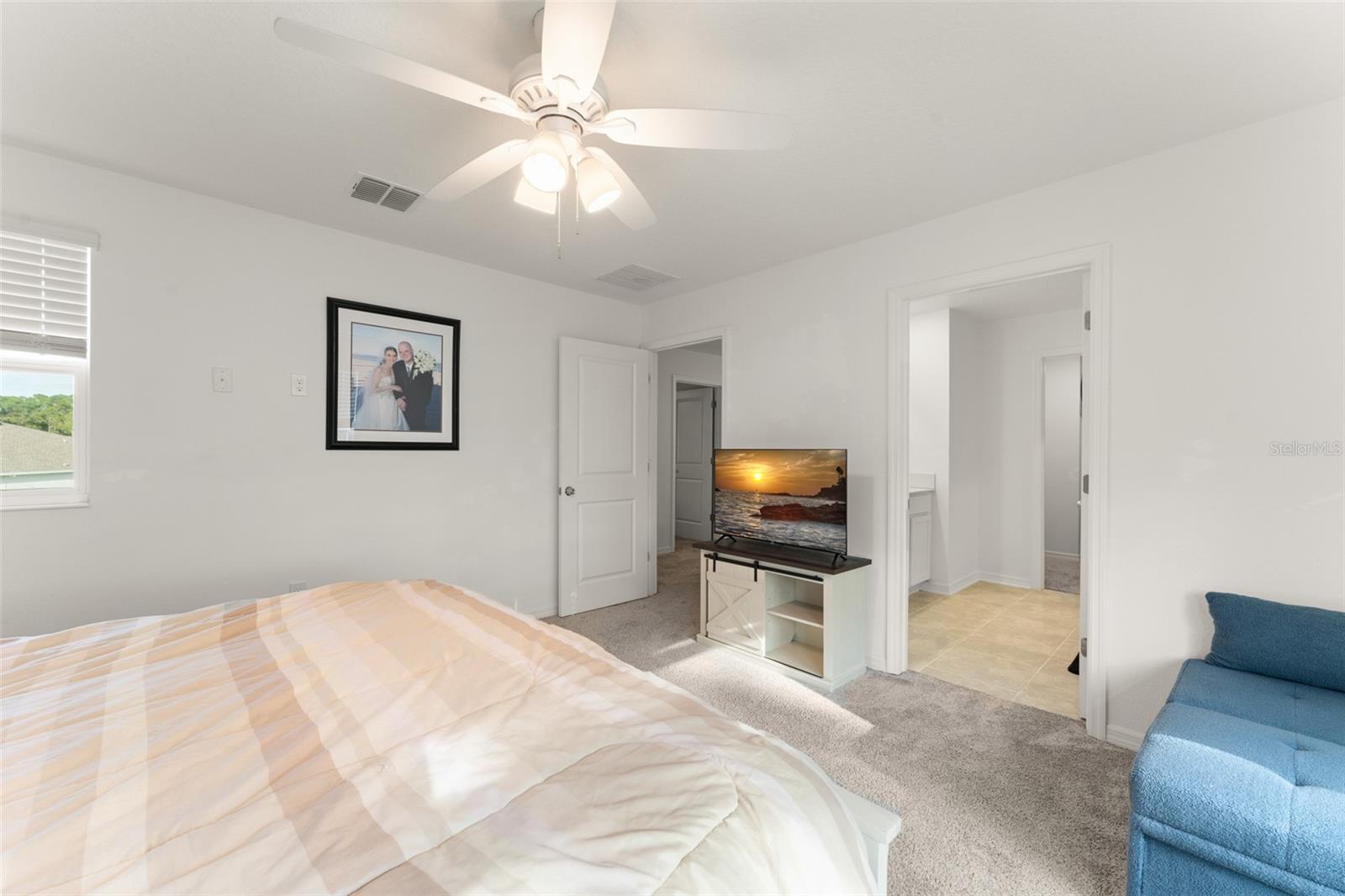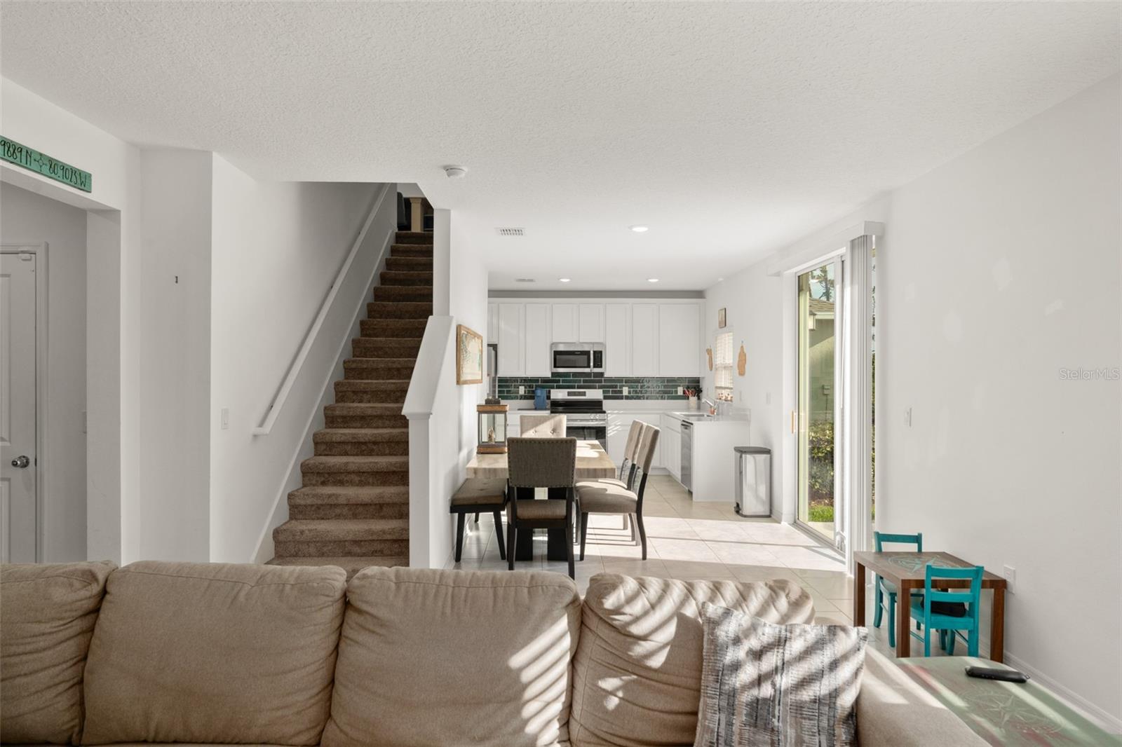 **This home qualifies for lending with NO DOWN PAYMENT required, 100% financing available. ** Welcome to an inviting 4-bedroom, 3-bathroom single-family home nestled in the peaceful community of Edgewater. From the moment you arrive, you’ll be greeted by a beautifully landscaped front yard and a welcoming two-car garage. The front porch, with space for two rocking chairs, is the perfect spot to relax and soak in the tranquil surroundings. Step inside and take in a sneak peek of the bright and airy living room just down the hall. To your right, you'll find a cozy first-floor bedroom with a built-in closet, ideal for guests or a home office, along with a nearby full bathroom featuring a bathtub. As you continue through the home, access to the garage is conveniently located on the left. The living room, with windows overlooking the lush backyard, flows effortlessly into the galley-style dining area and open-concept kitchen. The kitchen features crisp white cabinetry, stone countertops, a vibrant tile backsplash, and stainless steel appliances—perfect for both everyday living and entertaining. A sliding glass door off the dining area opens to a patio and offers beautiful views of the greenery beyond. Upstairs, a versatile loft area has been thoughtfully modified with a built-in counter—ideal as a desk or workspace. Two additional bedrooms feature built-in closets and share a Jack-and-Jill bathroom with stylish cabinetry and a tub. The laundry room is conveniently located between the third bedroom and the primary suite, complete with a modern bottom-loading washer and dryer and built-in shelving for easy organization. The primary bedroom is a sunlit retreat with multiple windows and a spacious en suite bathroom featuring dual sinks, matching white cabinetry, and a luxurious walk-in shower with floor-to-ceiling tile. The walk-in closet includes wrap-around built-in shelving to keep everything in its place. Step out back and enjoy a blank canvas backyard—a perfect setting for your dream outdoor living space, framed by mature vegetation for privacy and natural beauty. Don’t miss your chance to own this thoughtfully designed home that blends comfort, style, and functionality. Schedule your showing today!