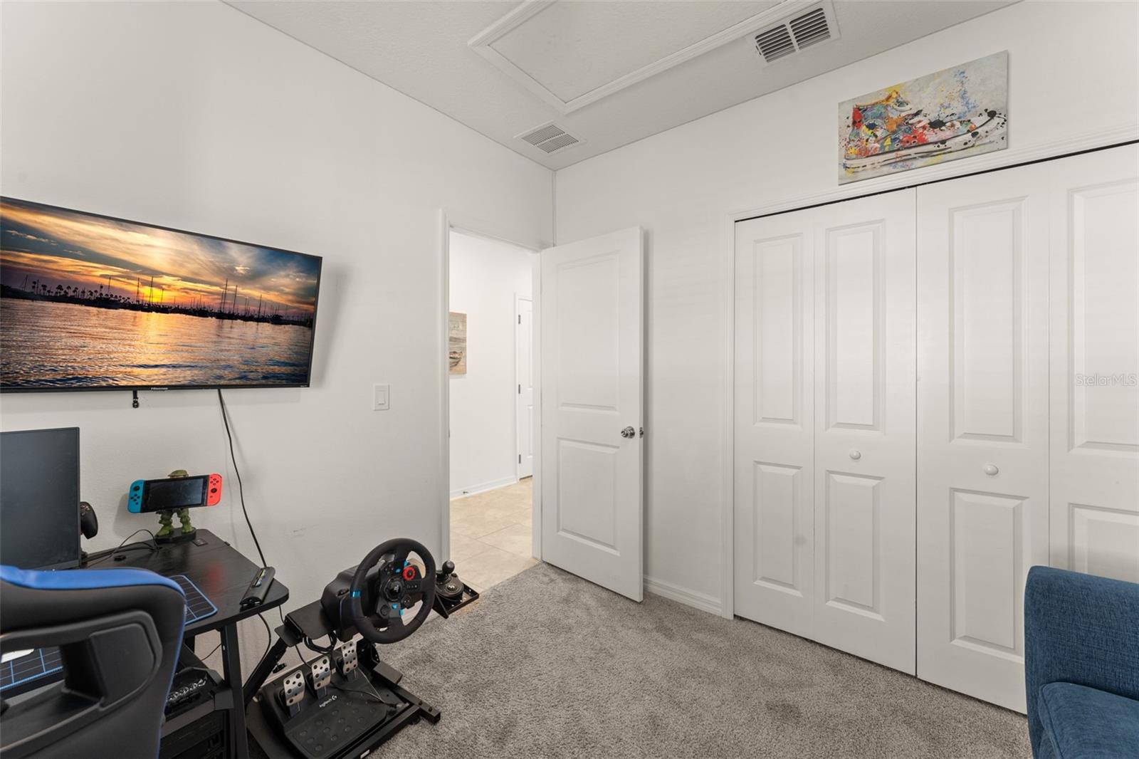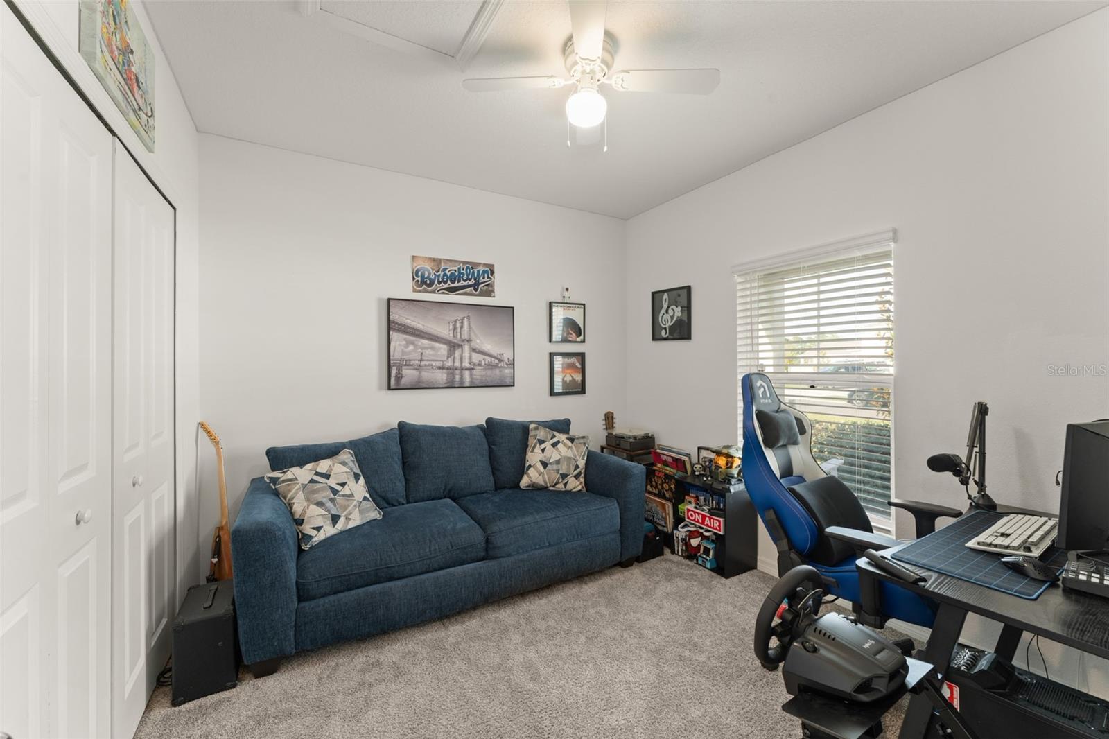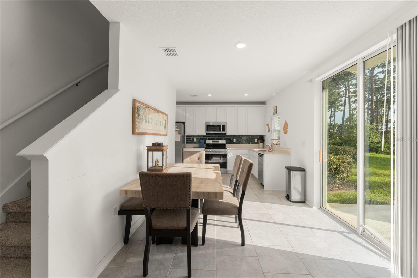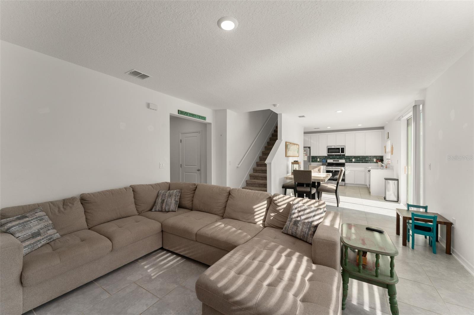 **This home qualifies for lending with NO DOWN PAYMENT required, 100% financing available. ** Welcome to an inviting 4-bedroom, 3-bathroom single-family home nestled in the peaceful community of Edgewater. From the moment you arrive, you’ll be greeted by a beautifully landscaped front yard and a welcoming two-car garage. The front porch, with space for two rocking chairs, is the perfect spot to relax and soak in the tranquil surroundings. Step inside and take in a sneak peek of the bright and airy living room just down the hall. To your right, you'll find a cozy first-floor bedroom with a built-in closet, ideal for guests or a home office, along with a nearby full bathroom featuring a bathtub. As you continue through the home, access to the garage is conveniently located on the left. The living room, with windows overlooking the lush backyard, flows effortlessly into the galley-style dining area and open-concept kitchen. The kitchen features crisp white cabinetry, stone countertops, a vibrant tile backsplash, and stainless steel appliances—perfect for both everyday living and entertaining. A sliding glass door off the dining area opens to a patio and offers beautiful views of the greenery beyond. Upstairs, a versatile loft area has been thoughtfully modified with a built-in counter—ideal as a desk or workspace. Two additional bedrooms feature built-in closets and share a Jack-and-Jill bathroom with stylish cabinetry and a tub. The laundry room is conveniently located between the third bedroom and the primary suite, complete with a modern bottom-loading washer and dryer and built-in shelving for easy organization. The primary bedroom is a sunlit retreat with multiple windows and a spacious en suite bathroom featuring dual sinks, matching white cabinetry, and a luxurious walk-in shower with floor-to-ceiling tile. The walk-in closet includes wrap-around built-in shelving to keep everything in its place. Step out back and enjoy a blank canvas backyard—a perfect setting for your dream outdoor living space, framed by mature vegetation for privacy and natural beauty. Don’t miss your chance to own this thoughtfully designed home that blends comfort, style, and functionality. Schedule your showing today!