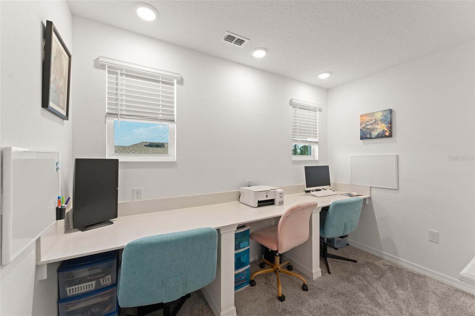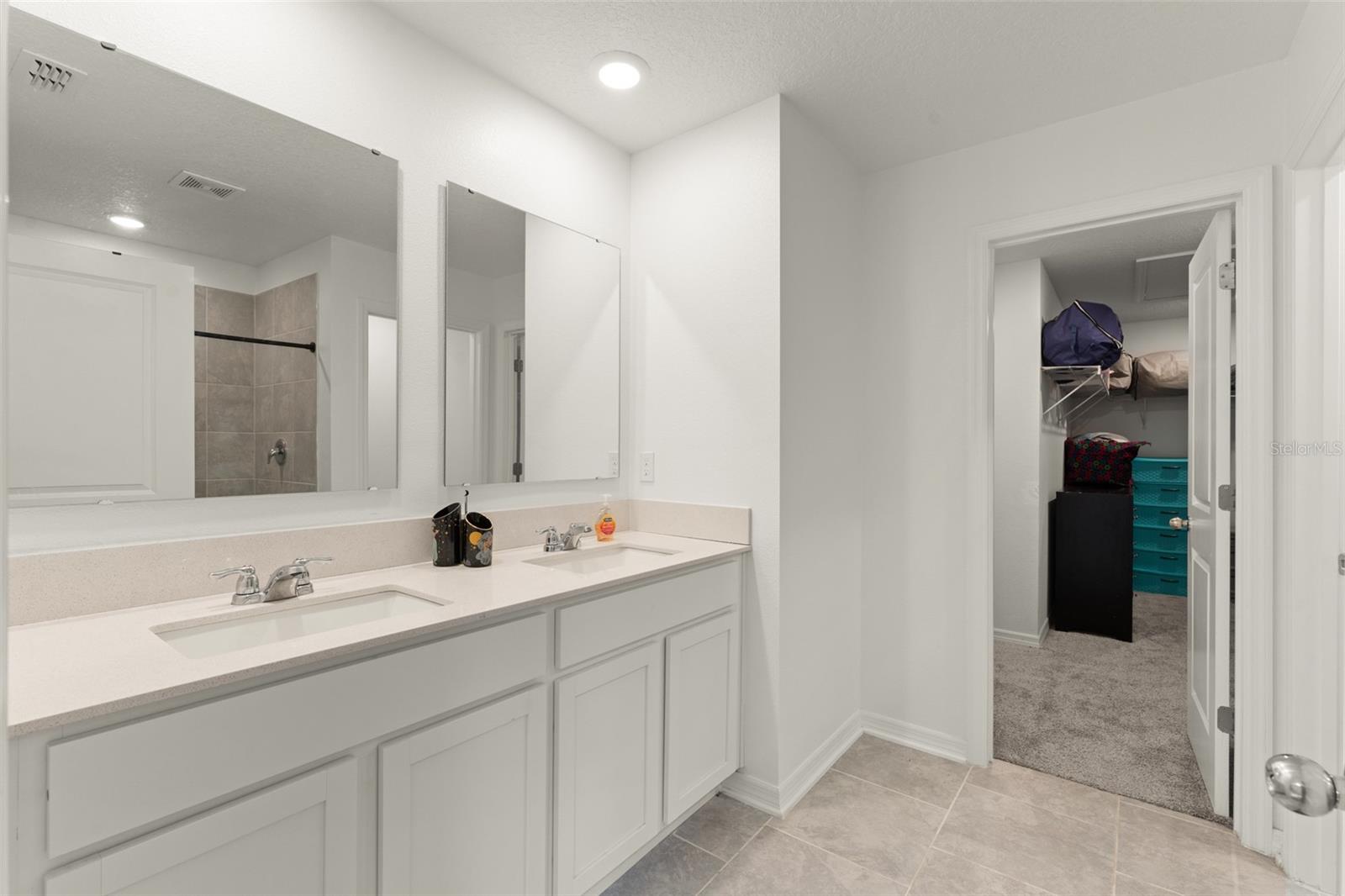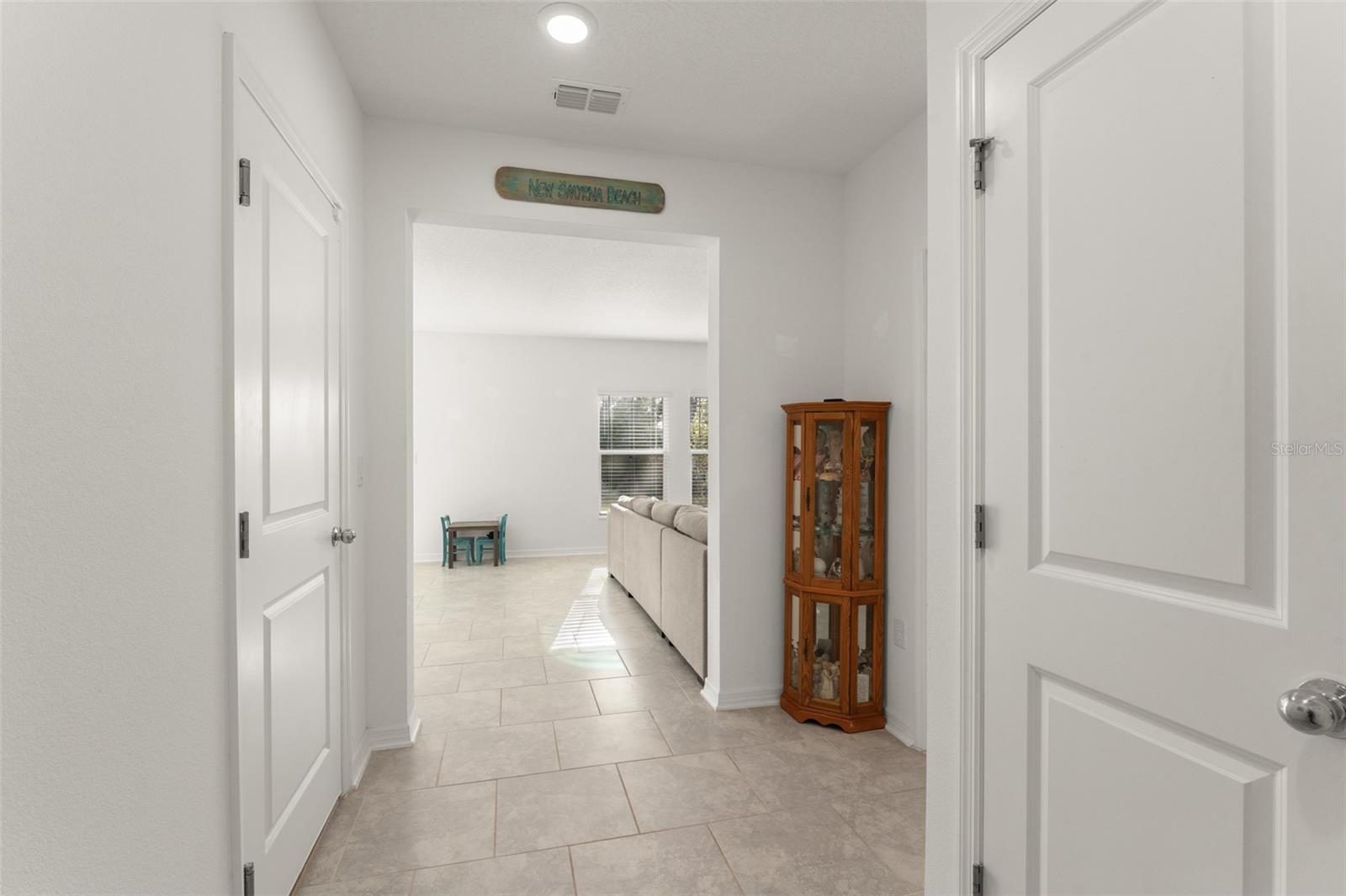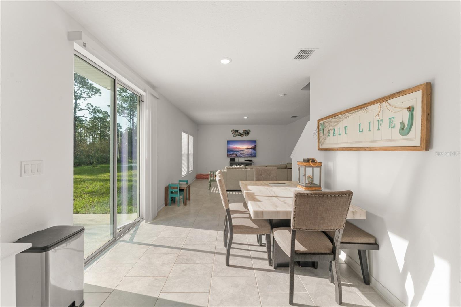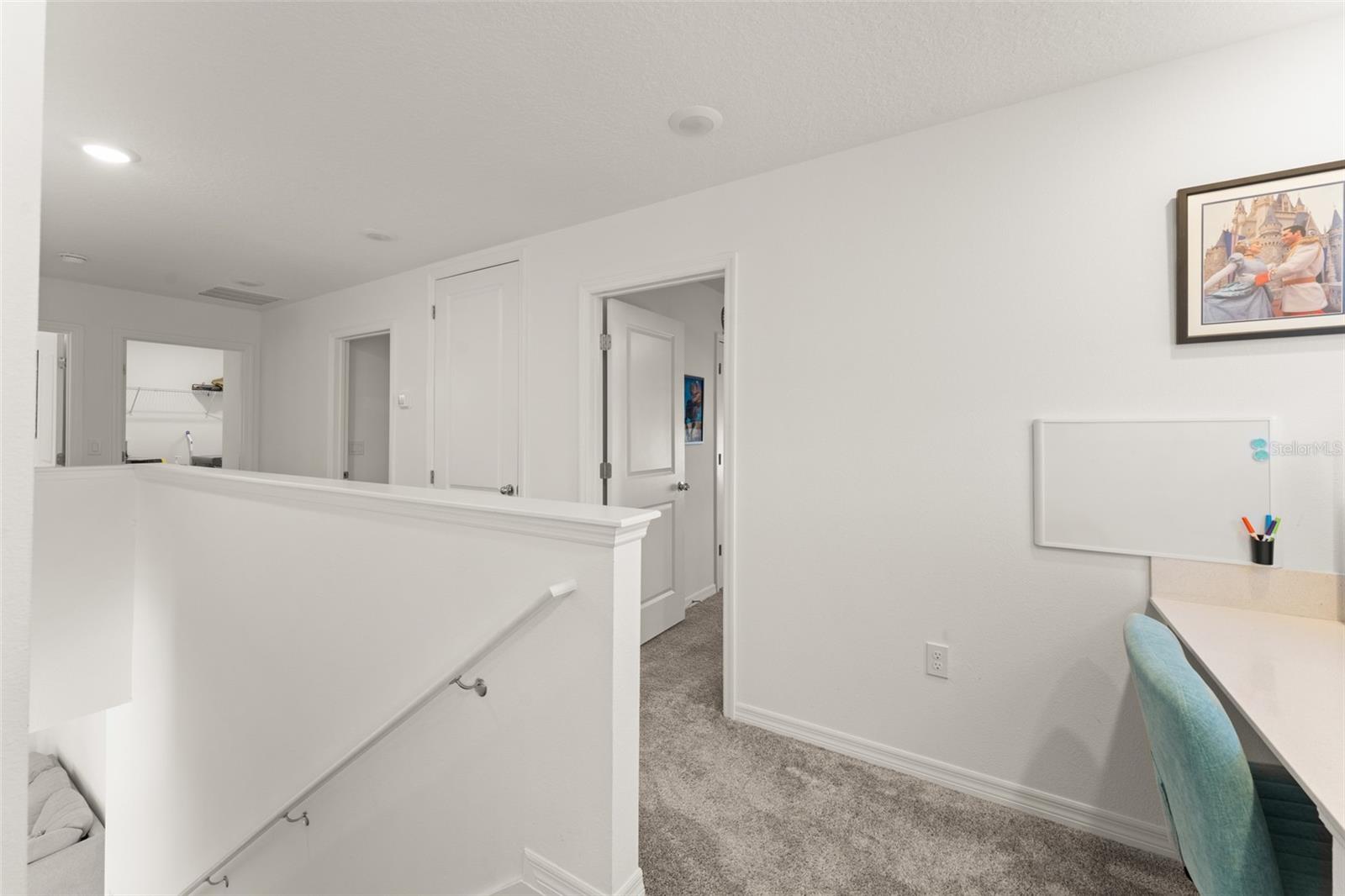 **This home qualifies for lending with NO DOWN PAYMENT required, 100% financing available. ** Welcome to an inviting 4-bedroom, 3-bathroom single-family home nestled in the peaceful community of Edgewater. From the moment you arrive, you’ll be greeted by a beautifully landscaped front yard and a welcoming two-car garage. The front porch, with space for two rocking chairs, is the perfect spot to relax and soak in the tranquil surroundings. Step inside and take in a sneak peek of the bright and airy living room just down the hall. To your right, you'll find a cozy first-floor bedroom with a built-in closet, ideal for guests or a home office, along with a nearby full bathroom featuring a bathtub. As you continue through the home, access to the garage is conveniently located on the left. The living room, with windows overlooking the lush backyard, flows effortlessly into the galley-style dining area and open-concept kitchen. The kitchen features crisp white cabinetry, stone countertops, a vibrant tile backsplash, and stainless steel appliances—perfect for both everyday living and entertaining. A sliding glass door off the dining area opens to a patio and offers beautiful views of the greenery beyond. Upstairs, a versatile loft area has been thoughtfully modified with a built-in counter—ideal as a desk or workspace. Two additional bedrooms feature built-in closets and share a Jack-and-Jill bathroom with stylish cabinetry and a tub. The laundry room is conveniently located between the third bedroom and the primary suite, complete with a modern bottom-loading washer and dryer and built-in shelving for easy organization. The primary bedroom is a sunlit retreat with multiple windows and a spacious en suite bathroom featuring dual sinks, matching white cabinetry, and a luxurious walk-in shower with floor-to-ceiling tile. The walk-in closet includes wrap-around built-in shelving to keep everything in its place. Step out back and enjoy a blank canvas backyard—a perfect setting for your dream outdoor living space, framed by mature vegetation for privacy and natural beauty. Don’t miss your chance to own this thoughtfully designed home that blends comfort, style, and functionality. Schedule your showing today!
