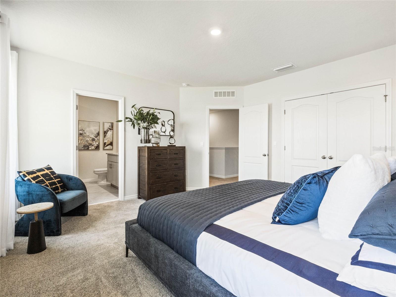 Luxurious 3-bedroom, 2.5-bath townhome in Rivers Edge, featuring concrete construction and modern design. Open floor plan with a spacious family room, sleek kitchen, and dining area. Upstairs, three bedrooms including a primary suite with walk-in closet and ensuite bath. Smart home technology integrated for convenience. Private patio for outdoor enjoyment. Located in Edgewater with easy access to amenities. Ideal for relaxing and enjoying Florida living. This home is open for self-touring 7 days a week.
