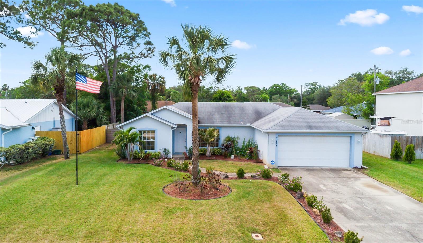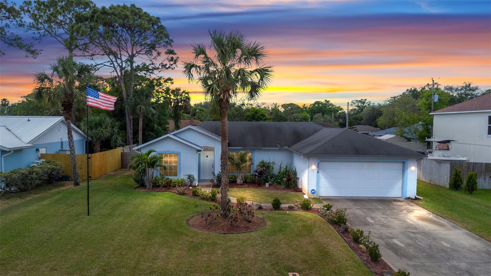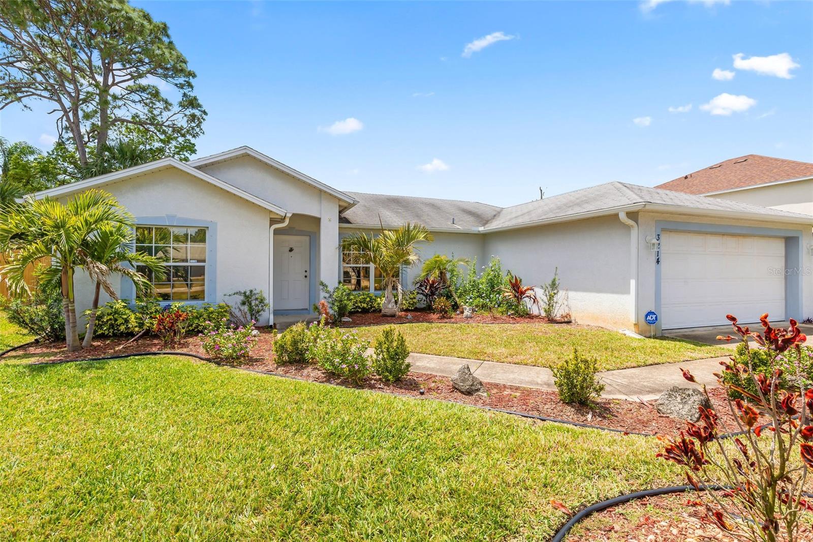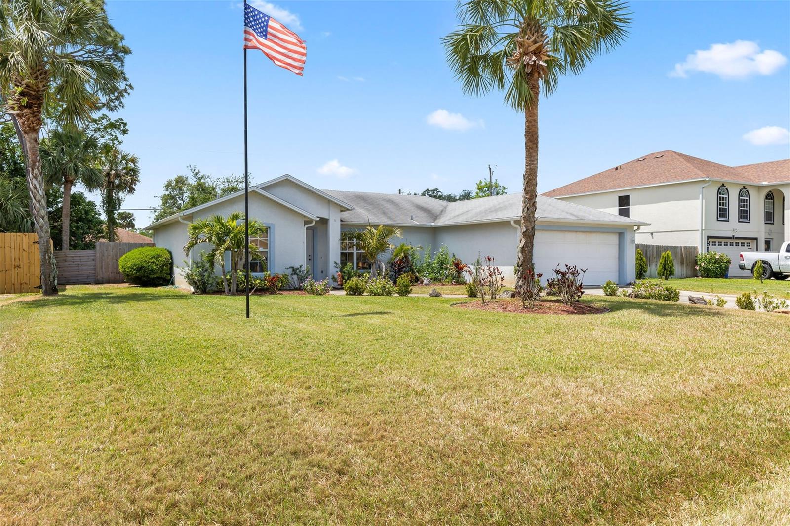 Edgewater is widely known for its affordable and quaint homes that are perfectly situated for families - located close to schools, a neighborhood Publix, and many opportunities for shopping and dining - and to top it off, Edgewater is only a few miles away from the New Smyrna Beach arts and cultural scene, beautiful beaches, and great entertainment options! This three-bedroom, two-bathroom home was lovingly cared for by its owner and shows the true pride of ownership. It has a beautiful green yard adorned with plants and flowers and shows a lot of curb appeal from the street. This street did NOT flood and the neighbors' homes all have character and are well cared for. This open floorplan home has a center island in the kitchen, lots of natural light, tile and laminate floors throughout (no carpeting), a split plan for convenience and comfort, a good-sized primary bedroom and ensuite bath, indoor laundry, a two-car garage and a screened porch out back for enjoying the yard after a long day at work. The owner has an irrigation system, hurricane shutters, and has fully fenced the back yard for children and pets. Add to all of this a newer AC and hot water heater, and a first-time buyer or retiree can be assured they are getting a home that has been maintained well. Edgewater is growing quickly, and lots of new jobs are coming, so make your appointment today to see this home before it is gone. All information taken from the tax record, and while deemed reliable, cannot be guaranteed.
