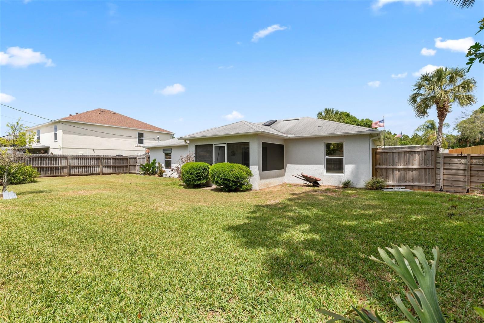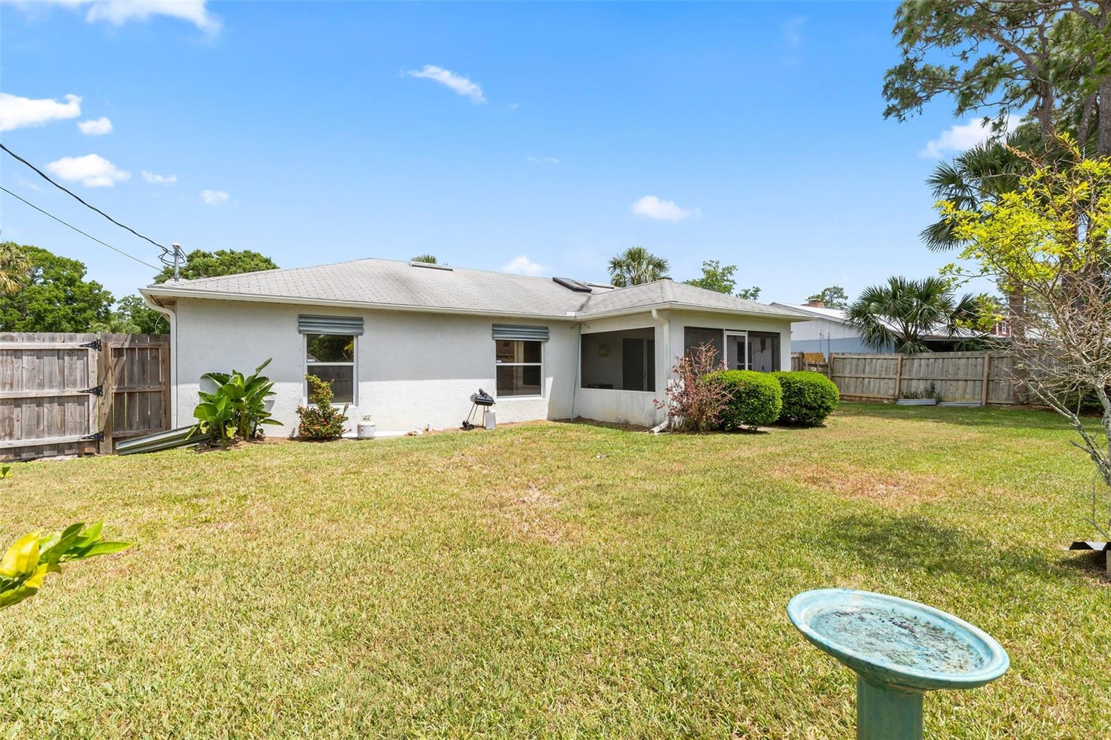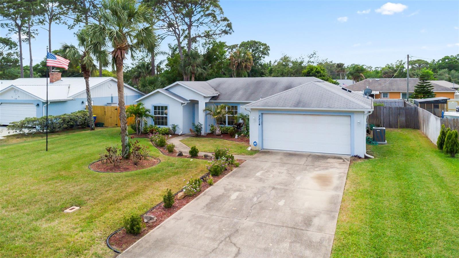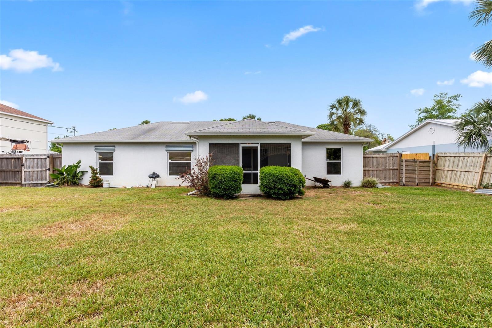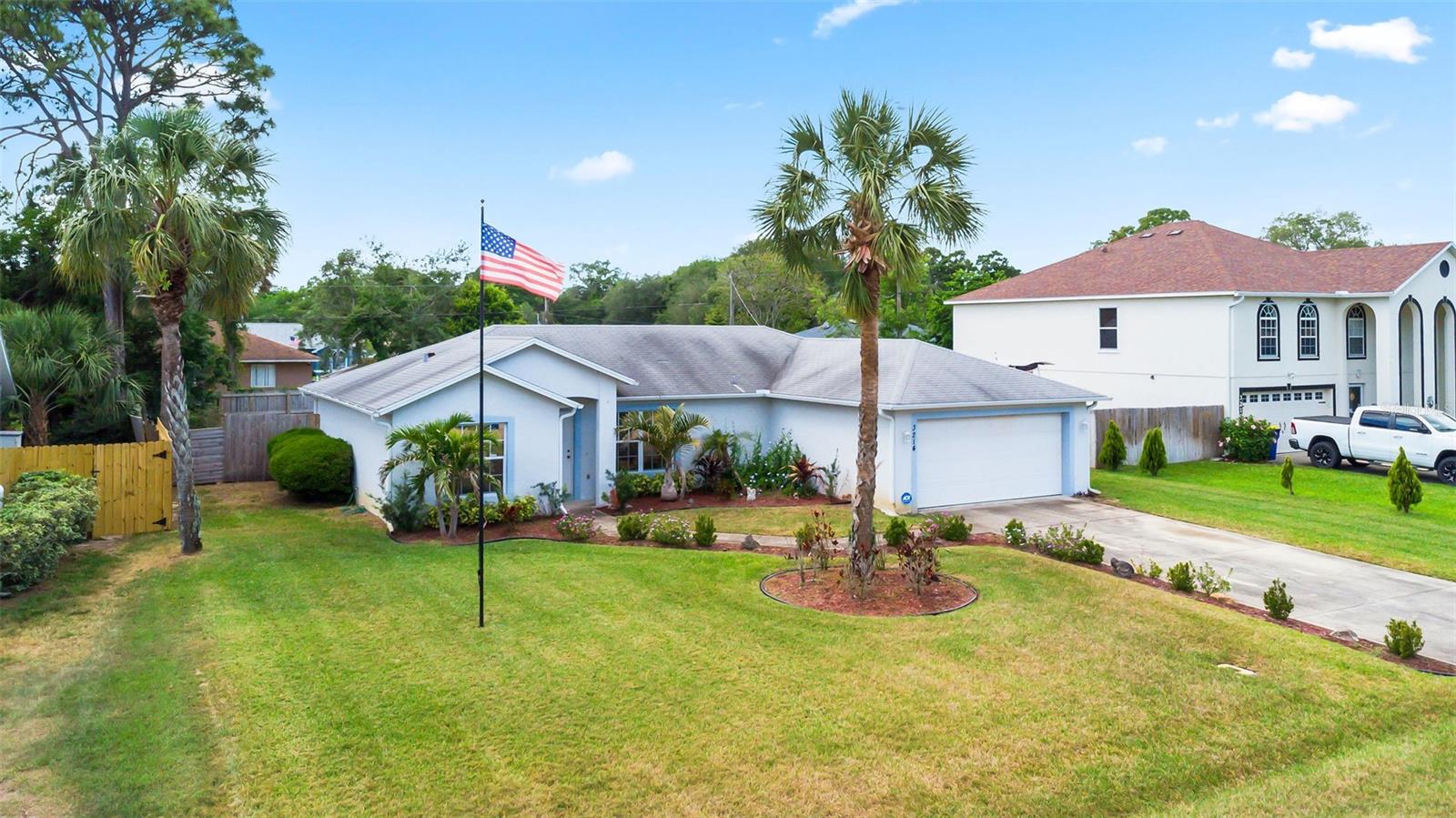 Edgewater is widely known for its affordable and quaint homes that are perfectly situated for families - located close to schools, a neighborhood Publix, and many opportunities for shopping and dining - and to top it off, Edgewater is only a few miles away from the New Smyrna Beach arts and cultural scene, beautiful beaches, and great entertainment options! This three-bedroom, two-bathroom home was lovingly cared for by its owner and shows the true pride of ownership. It has a beautiful green yard adorned with plants and flowers and shows a lot of curb appeal from the street. This street did NOT flood and the neighbors' homes all have character and are well cared for. This open floorplan home has a center island in the kitchen, lots of natural light, tile and laminate floors throughout (no carpeting), a split plan for convenience and comfort, a good-sized primary bedroom and ensuite bath, indoor laundry, a two-car garage and a screened porch out back for enjoying the yard after a long day at work. The owner has an irrigation system, hurricane shutters, and has fully fenced the back yard for children and pets. Add to all of this a newer AC and hot water heater, and a first-time buyer or retiree can be assured they are getting a home that has been maintained well. Edgewater is growing quickly, and lots of new jobs are coming, so make your appointment today to see this home before it is gone. All information taken from the tax record, and while deemed reliable, cannot be guaranteed.