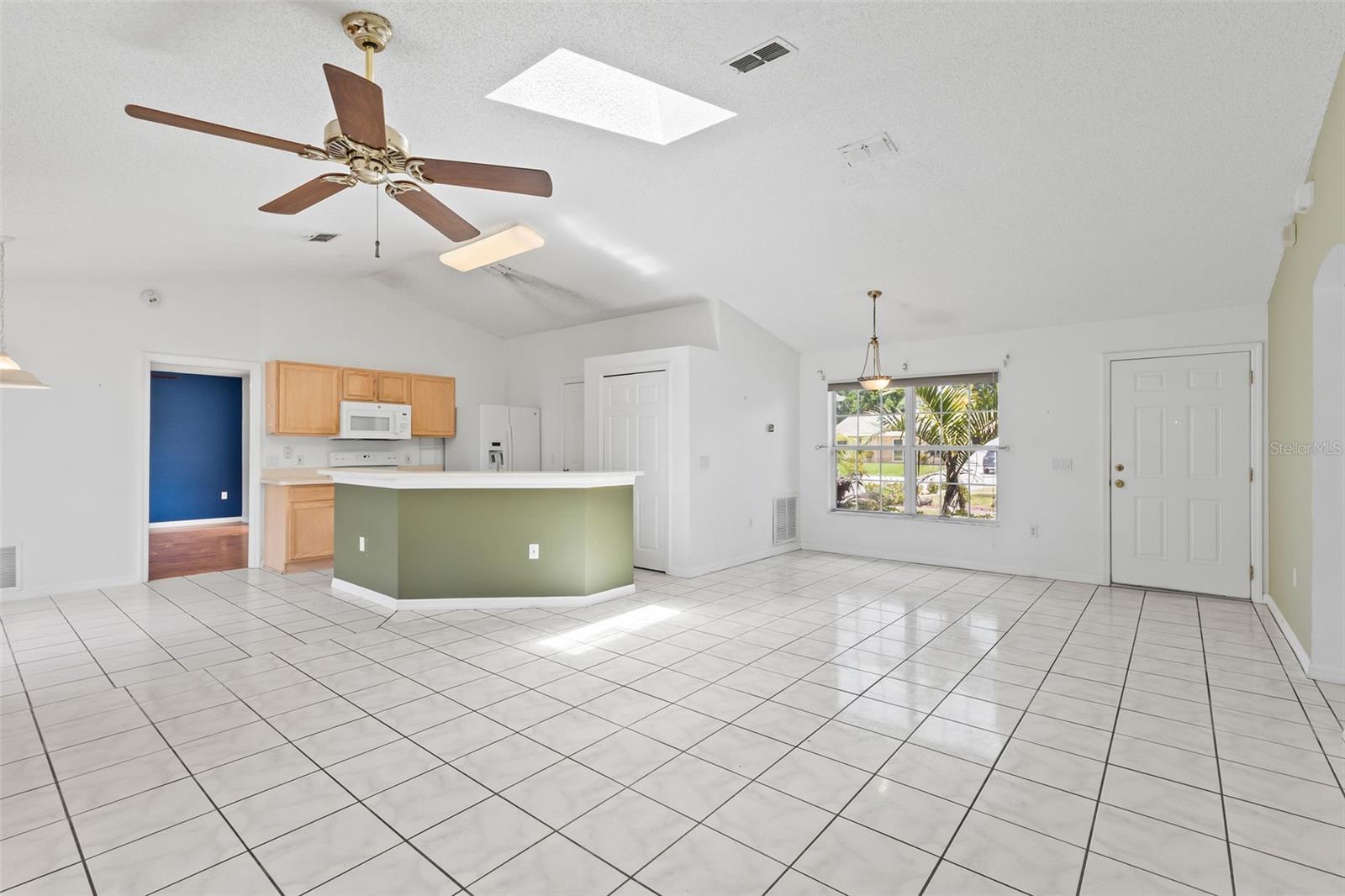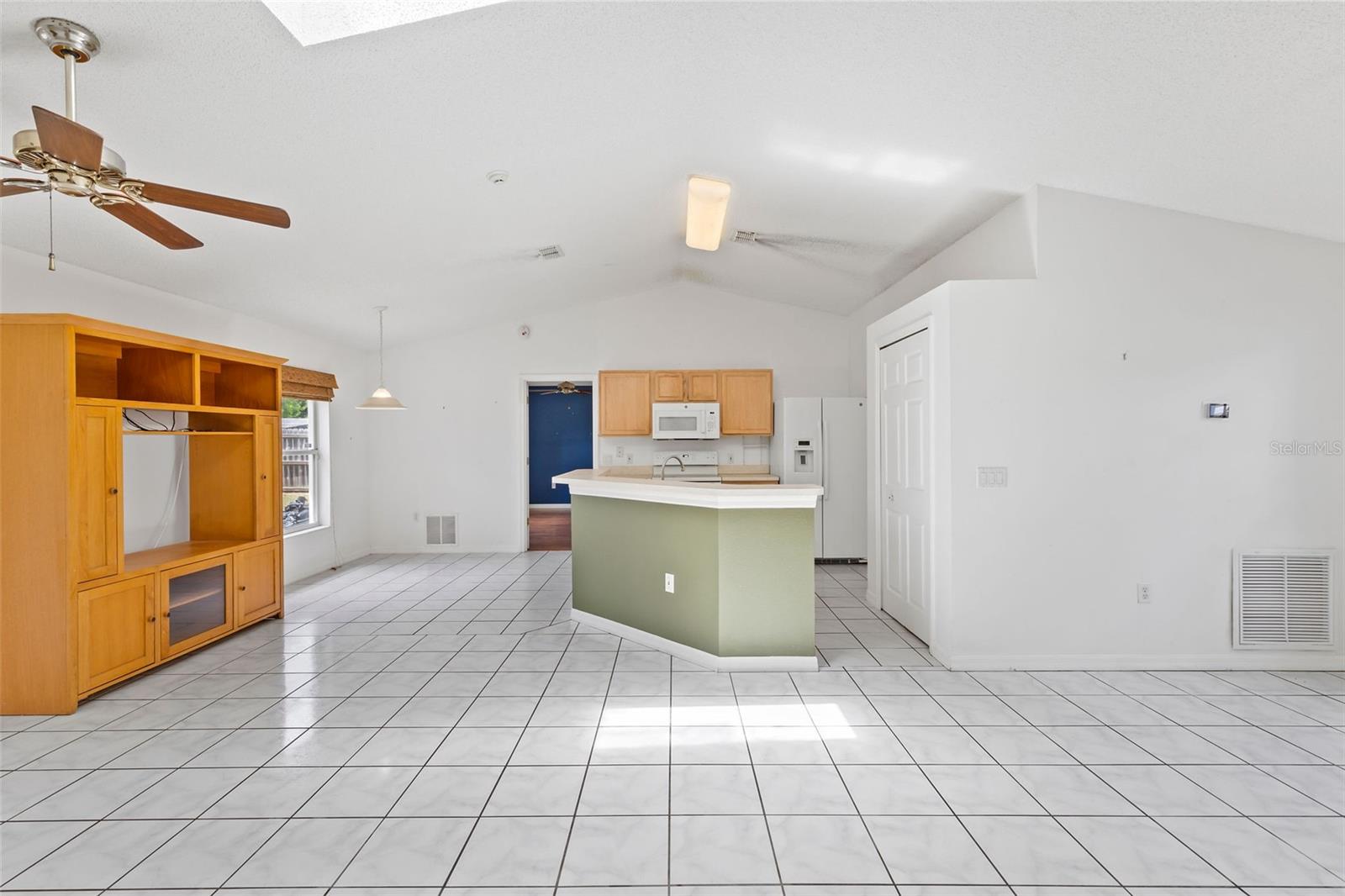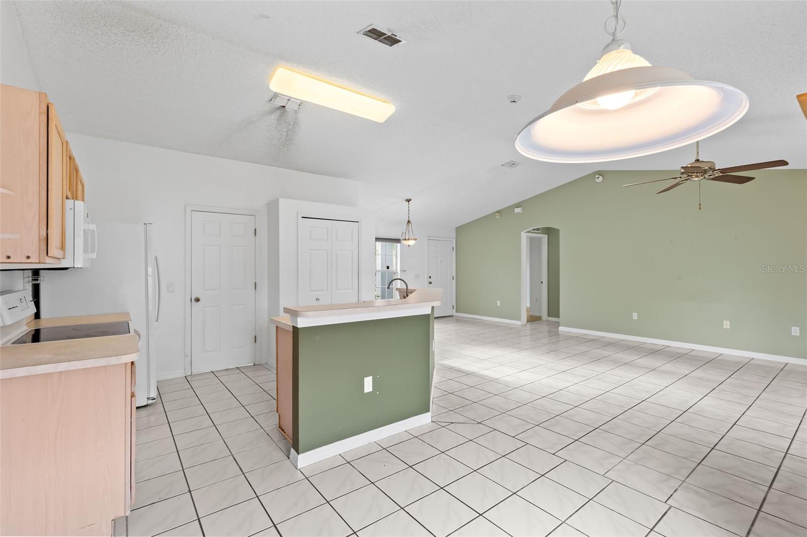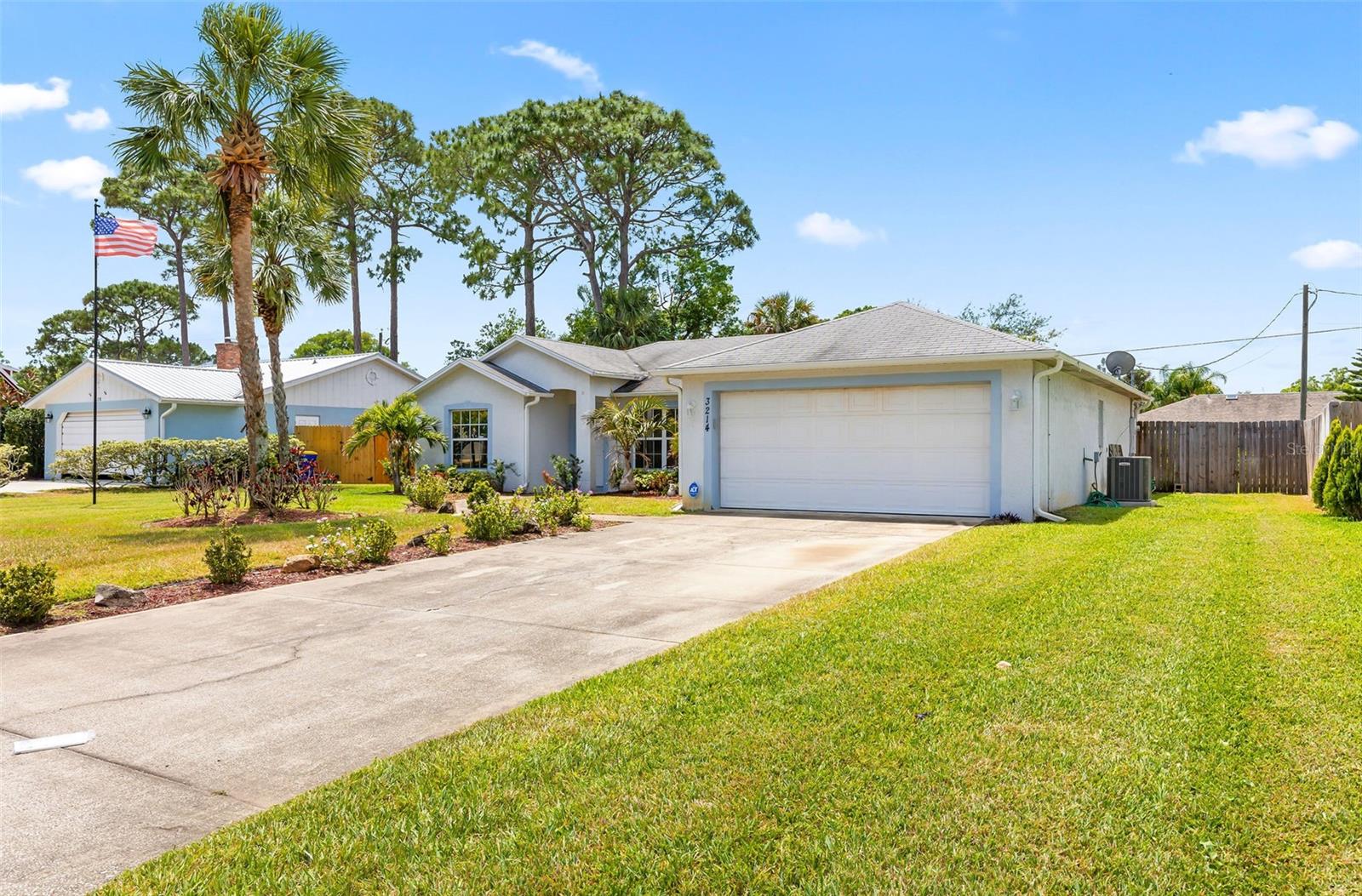 Edgewater is widely known for its affordable and quaint homes that are perfectly situated for families - located close to schools, a neighborhood Publix, and many opportunities for shopping and dining - and to top it off, Edgewater is only a few miles away from the New Smyrna Beach arts and cultural scene, beautiful beaches, and great entertainment options! This three-bedroom, two-bathroom home was lovingly cared for by its owner and shows the true pride of ownership. It has a beautiful green yard adorned with plants and flowers and shows a lot of curb appeal from the street. This street did NOT flood and the neighbors' homes all have character and are well cared for. This open floorplan home has a center island in the kitchen, lots of natural light, tile and laminate floors throughout (no carpeting), a split plan for convenience and comfort, a good-sized primary bedroom and ensuite bath, indoor laundry, a two-car garage and a screened porch out back for enjoying the yard after a long day at work. The owner has an irrigation system, hurricane shutters, and has fully fenced the back yard for children and pets. Add to all of this a newer AC and hot water heater, and a first-time buyer or retiree can be assured they are getting a home that has been maintained well. Edgewater is growing quickly, and lots of new jobs are coming, so make your appointment today to see this home before it is gone. All information taken from the tax record, and while deemed reliable, cannot be guaranteed.