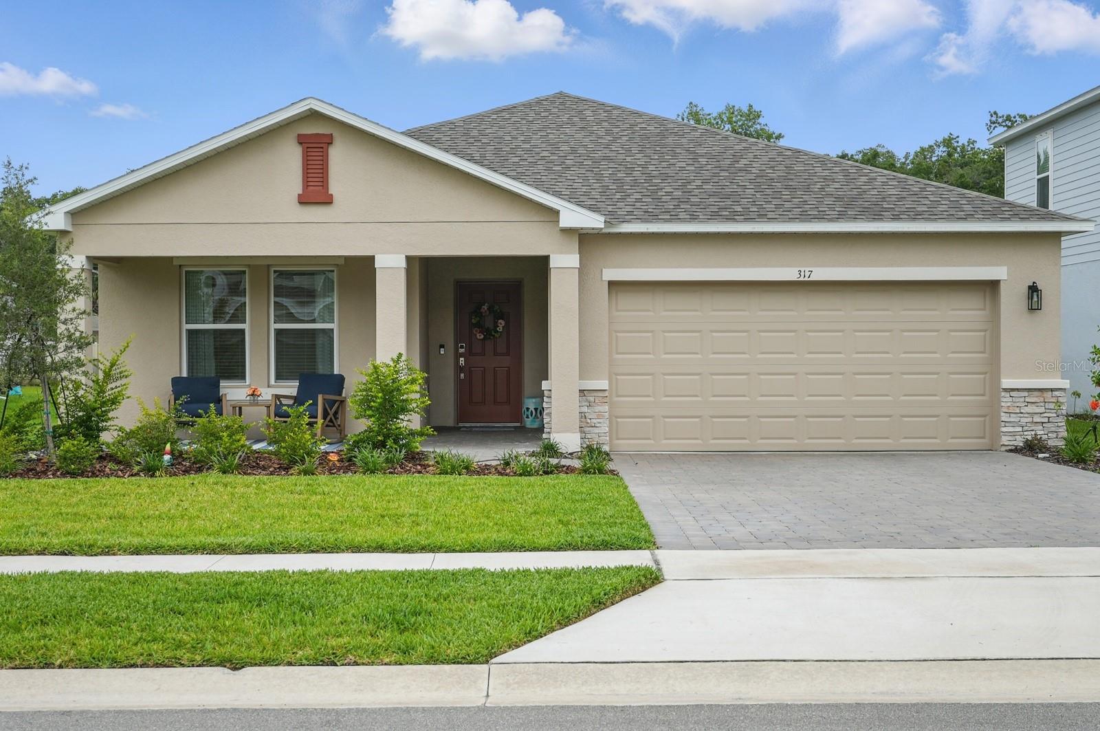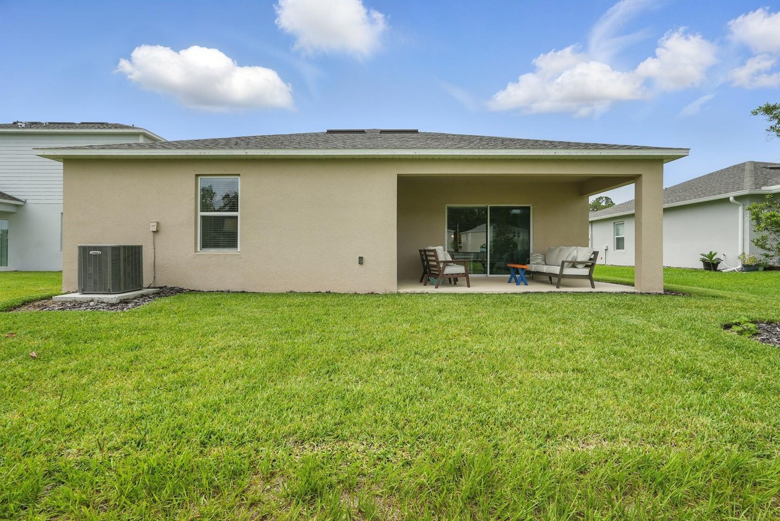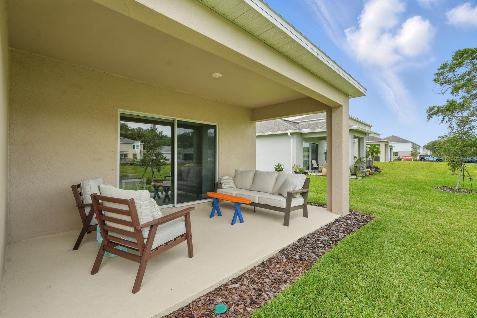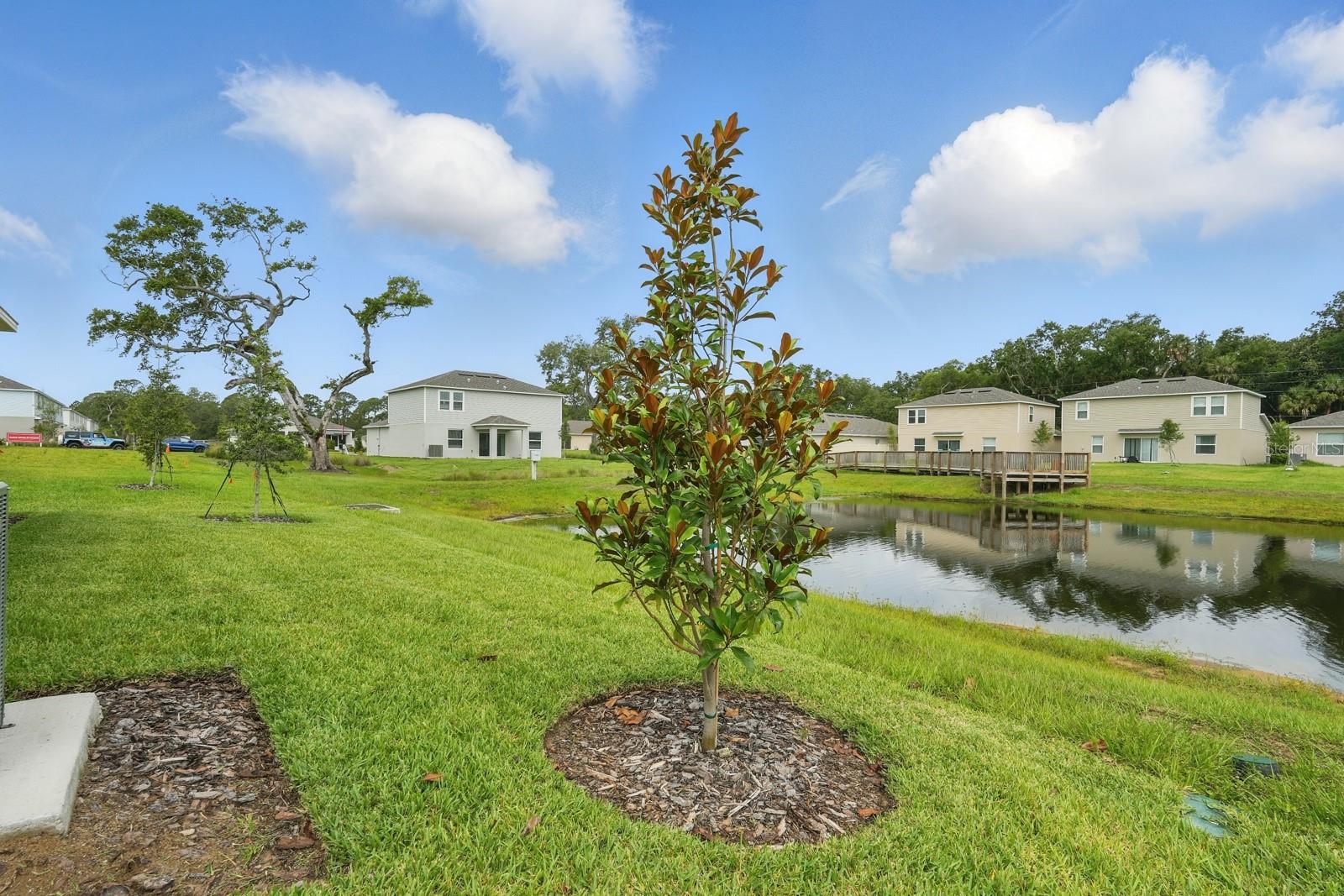 Welcome to your dream home—where modern elegance meets tranquil waterfront living. Built in 2024, this stunning 4-bedroom, 3-bathroom Magnolia floor plan offers the perfect blend of luxury and natural beauty, all in a serene, coastal setting. Step onto the charming front porch and take in peaceful views of the community pond, complete with a graceful fountain. Inside, the open-concept layout flows effortlessly between spacious living areas with tile throughout the main living space, a designer kitchen complete with quartz countertops, and light-filled rooms—perfect for both entertaining and everyday comfort. Out back, a large covered porch invites you to unwind and enjoy the breeze, or head down to your private observation dock for panoramic views of the Intracoastal Waterway. Whether you're watching the boats go by or soaking in a vibrant sunset, this space is pure coastal magic. Additional highlights include a split-bedroom layout, luxurious primary suite, and high-end finishes throughout. Don't miss this rare opportunity to own a brand-new home with front-row access to Florida's most beautiful waterways. Square footage received from tax rolls. All information recorded in the MLS intended to be accurate but cannot be guaranteed.
