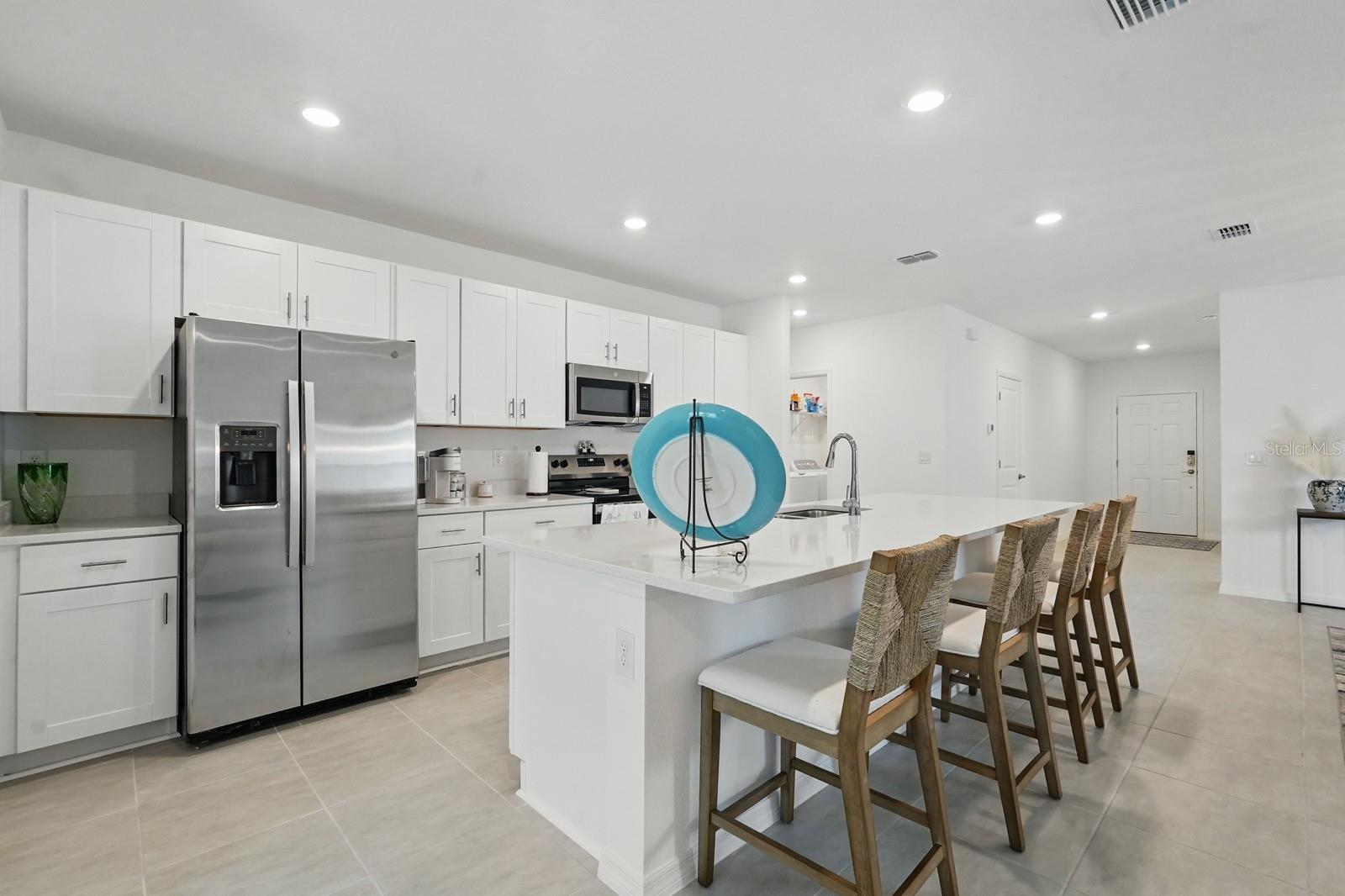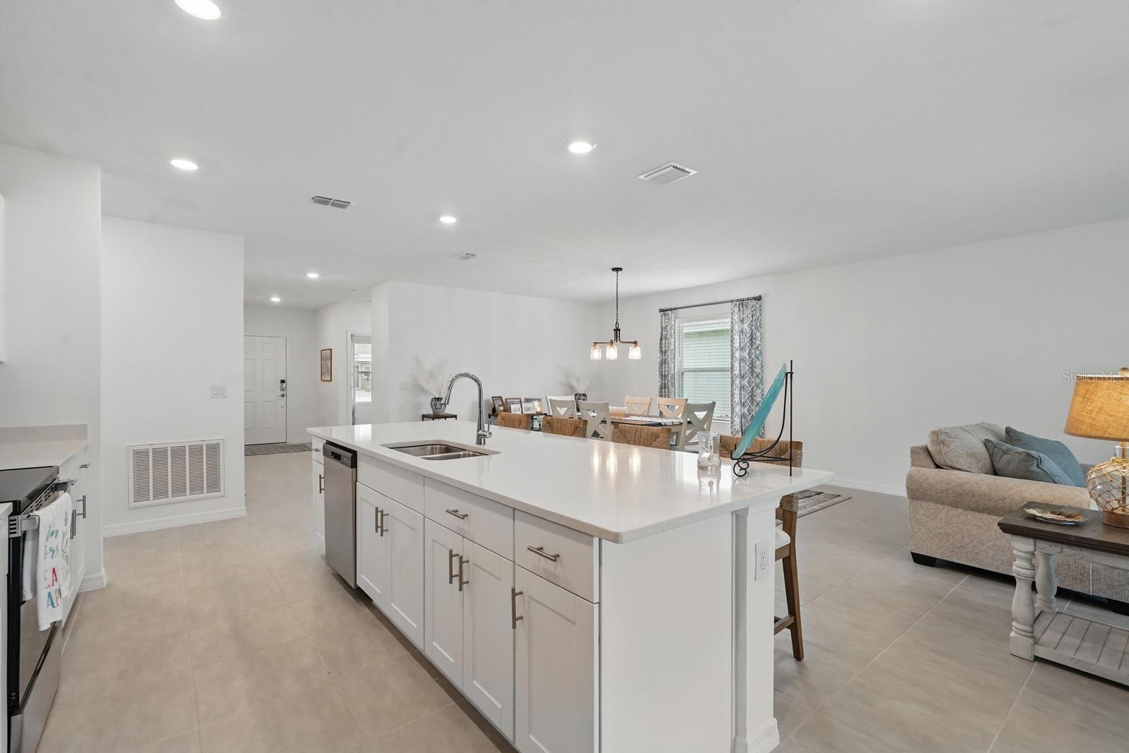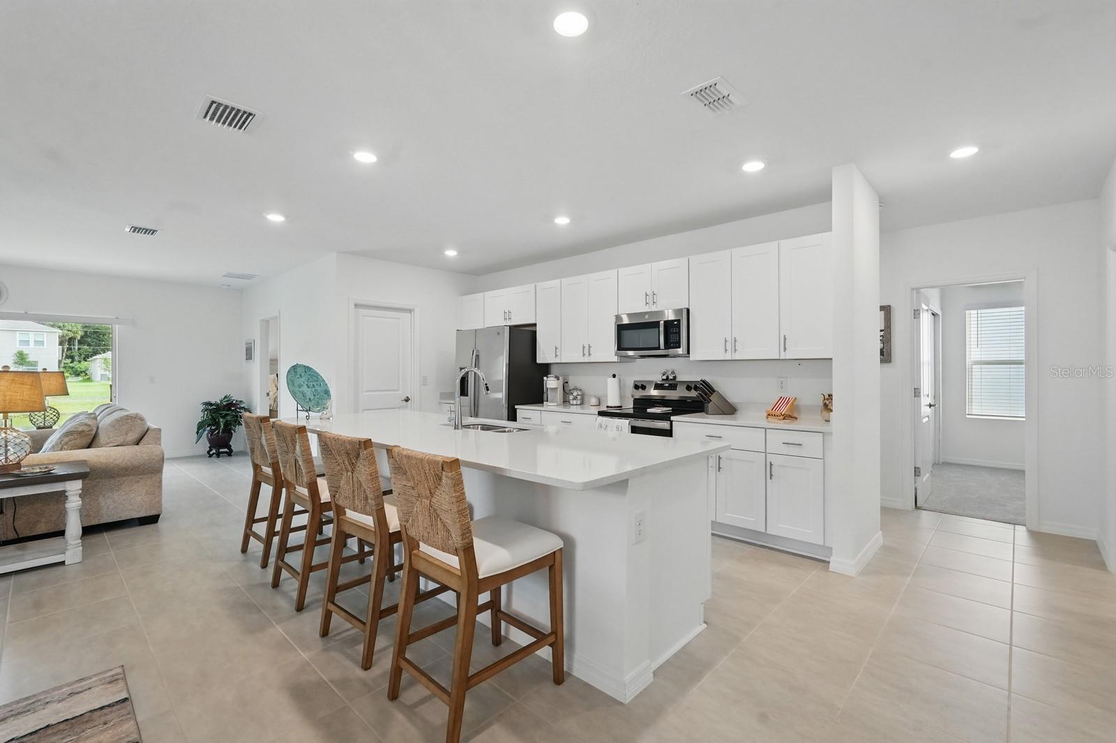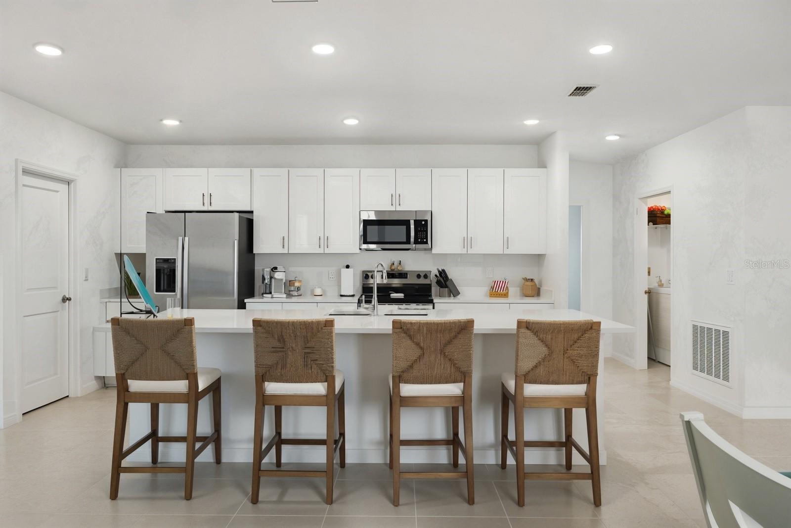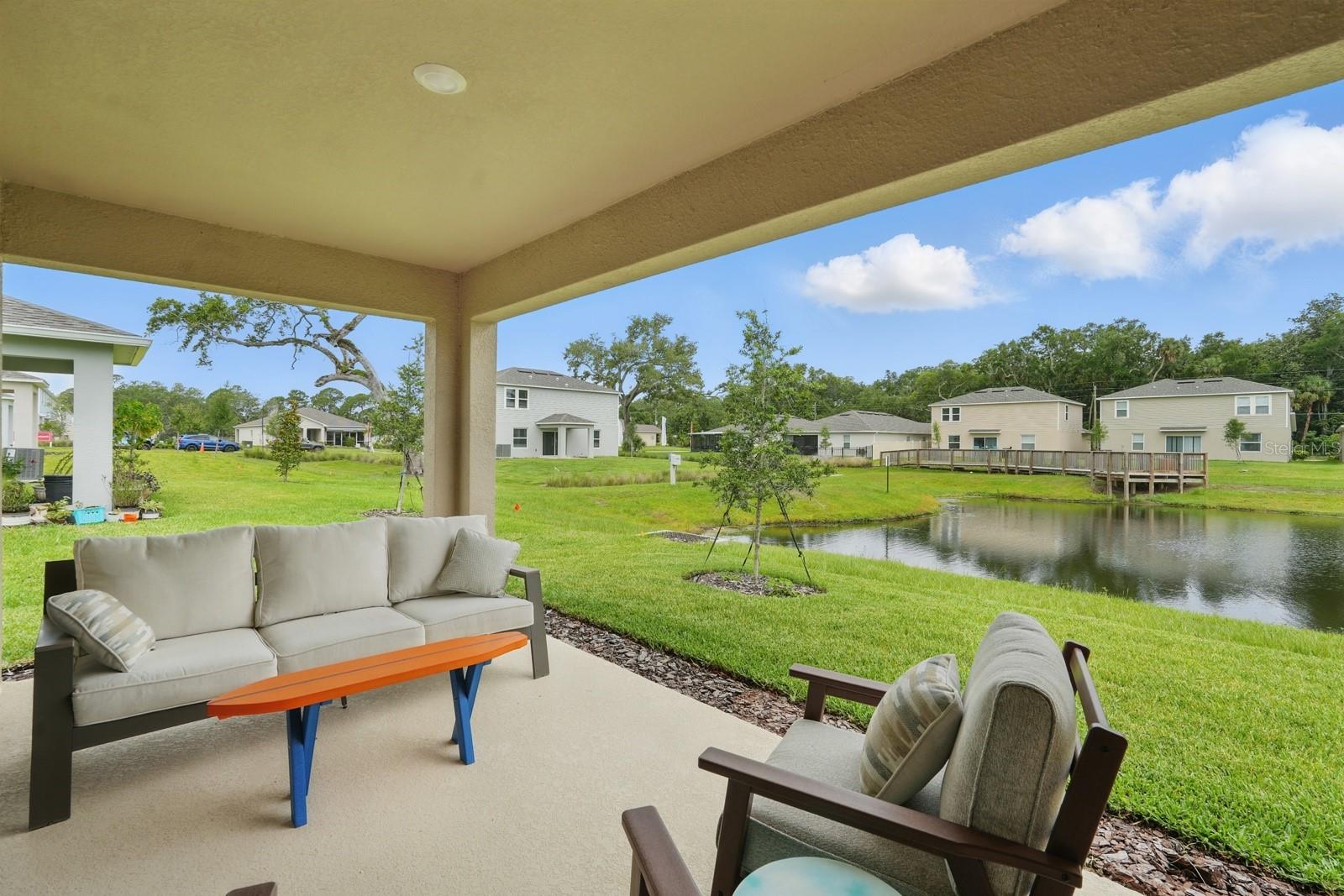 Welcome to your dream home—where modern elegance meets tranquil waterfront living. Built in 2024, this stunning 4-bedroom, 3-bathroom Magnolia floor plan offers the perfect blend of luxury and natural beauty, all in a serene, coastal setting. Step onto the charming front porch and take in peaceful views of the community pond, complete with a graceful fountain. Inside, the open-concept layout flows effortlessly between spacious living areas with tile throughout the main living space, a designer kitchen complete with quartz countertops, and light-filled rooms—perfect for both entertaining and everyday comfort. Out back, a large covered porch invites you to unwind and enjoy the breeze, or head down to your private observation dock for panoramic views of the Intracoastal Waterway. Whether you're watching the boats go by or soaking in a vibrant sunset, this space is pure coastal magic. Additional highlights include a split-bedroom layout, luxurious primary suite, and high-end finishes throughout. Don't miss this rare opportunity to own a brand-new home with front-row access to Florida's most beautiful waterways. Square footage received from tax rolls. All information recorded in the MLS intended to be accurate but cannot be guaranteed.