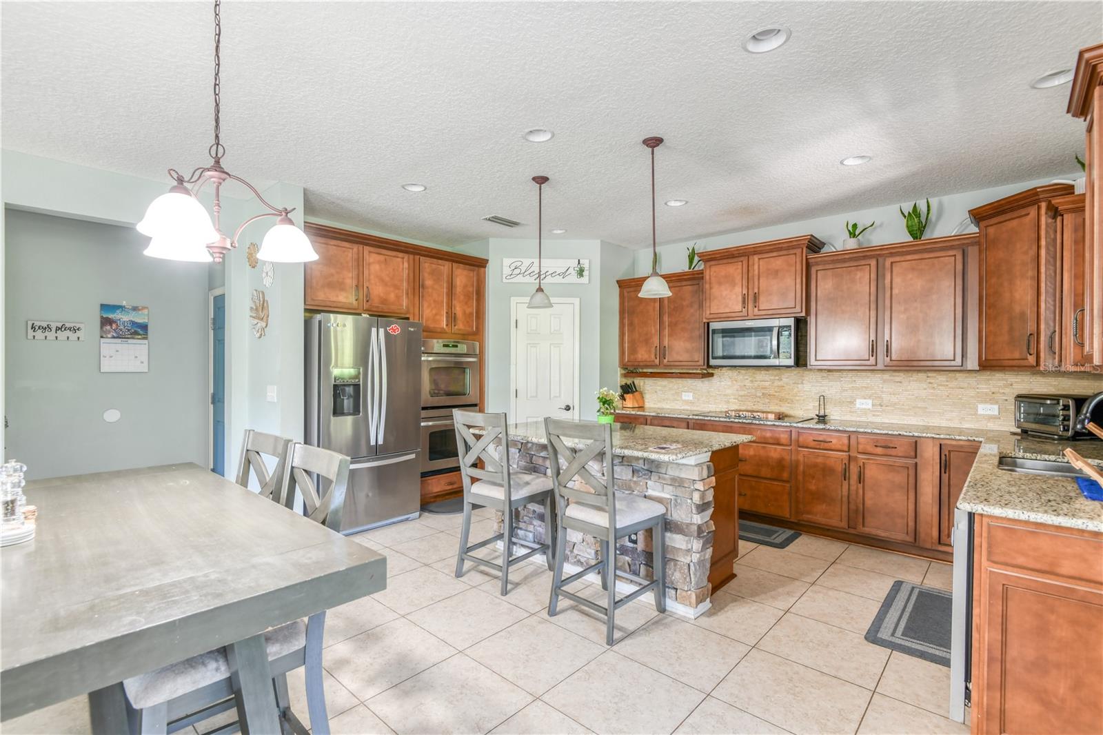 This remarkable family home features 2530 sf of luxury, four bedrooms, two and a half baths and a large private backyard with panoramic water & preserve views. An inviting two-story foyer opens to an elegant formal dining. The well-appointed gourmet kitchen boasts granite counter tops, upgraded cabinets, stainless appliances, tiled backsplash, walk-in pantry, and a center work island that overlooks a sun lit breakfast area that has direct access to the expansive family room and screened lanai. Upstairs, an open view of the foyer and a welcoming bonus space is perfect as an extra living or play room. After a long day relax in the comfortable owner’s suite with coffered ceilings, large walk-in closet and a luxurious bath with dual granite vanity, Roman tub, walk-in tiled shower and a private water closet. This home also has three additional bedrooms, a full guest bath with an upgraded granite raised vanity, conveniently located powder bath, a separate laundry room, and a two car garage. Additional interior upgrades include quality ceramic tile, upgraded light fixtures, pendant lighting, recessed lighting, custom blinds, double ovens, upgraded hardware, ceiling fans throughout, wrought iron stair railing, wrought iron glass front entry doors, and lots of extra storage. The outdoor living area offers a screened lanai, huge private backyard, irrigation system with private well, stone fire pit, fully fenced backyard and terrific water views. Additional exterior upgrades include stone accents, covered front entry, termite bond, fully sodded yard, lots of extra parking, custom stone mailbox, and a cul-de-sac lot.