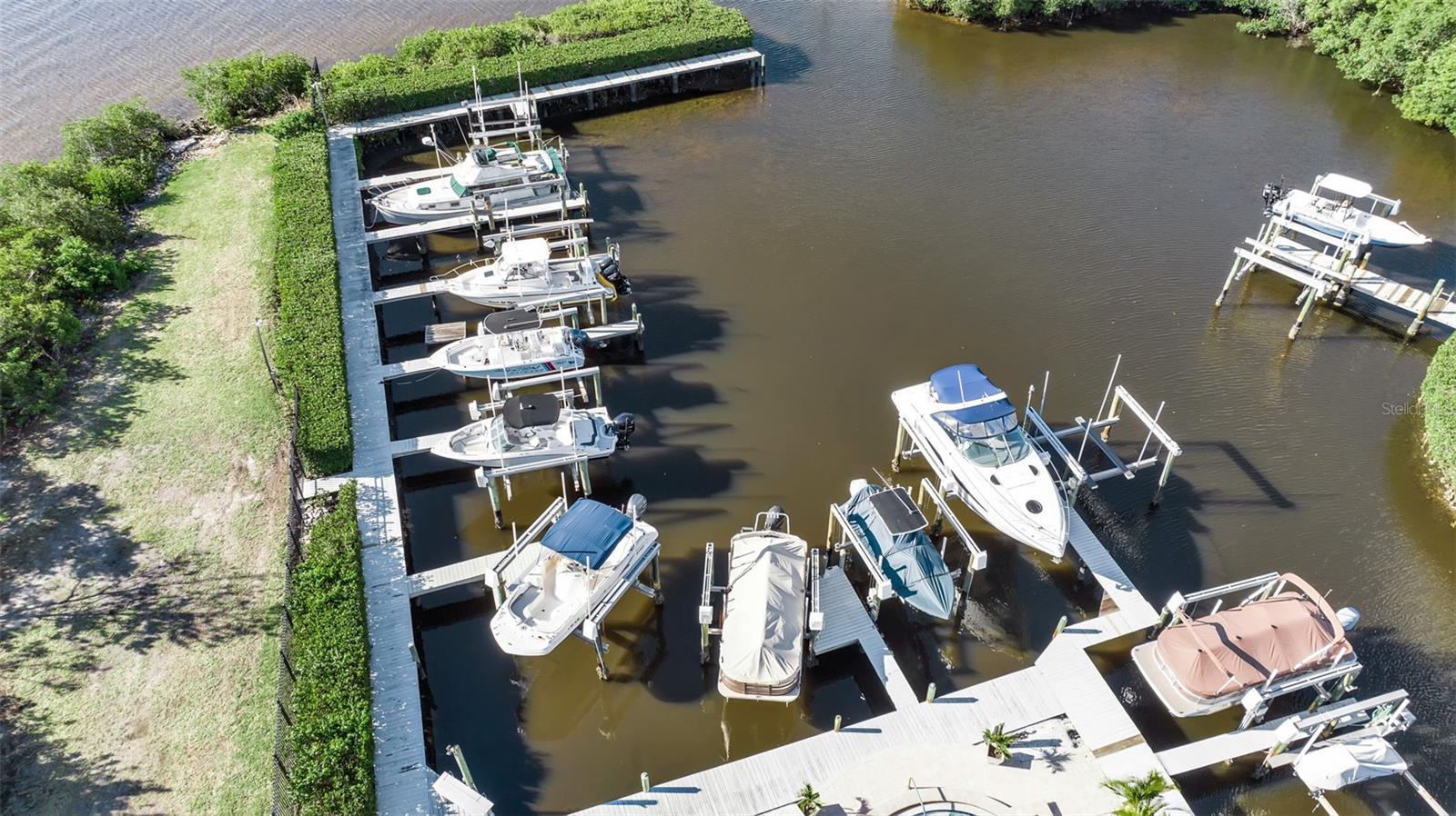 One or more photo(s) has been virtually staged. BOATERS! This 2 bedroom, 2 bathroom with a den condo is ideal for a boaters life. You will love this water property on a canal with direct access to the Manatee River! Water and Electric at Boat Slip. Screened lanai spans across the back of the Condo which also includes a storage closet at the end. Assigned storage unit #11 near your under building parking spot and you have a 2nd assigned parking space as well. Very nice condo with engineered wood floors, granite counters, stainless appliances, a full sized Kenmore Pro Freezer and a Full sized Kenmore Pro Refrigerator, solid wood cabinets which are soft closing, kitchen island, both bedrooms have walk-in closets and a 2nd closet for the primary Bedroom, whirlpool bathtub in guest bathroom, plantation shutters and HVAC system is 2019. Lots of closet and storage space. Once you exit the Marina on your boat there is convenient access up the Manatee River or out to the Gulf. River Place Community includes marina, pool house, pool bathrooms, a place to clean the catch of the day, kayak and canoe storage, outdoor grills, tennis court and gated on West side of complex. Can't help but love it here. Can be leased annually and NO need to wait a year or more to lease. Indoor Pest Service every other month and Outdoor Pest Service every other month by Association. Condo location is only approximately 1 mile from I75 at Exit 224 which is the Ellenton Outlet Mall Exit and 275 North is Exit 228. Approximate miles to 5 Airports! -Tampa airport is 44.4 miles, St. Pete airport is 38.8 miles, Sarasota airport is only 13.2, Punta Gorda airport is 65.8 miles and Ft. Myers airport is 100 miles! Great location. Downtown Tampa to the Amalie Arena is approximately 42.2 miles. UTC Mall is Exit 213 and downtown Sarasota is approximately 22 miles, so much to do in Sarasota , Bradenton and Tampa. Jump on your boat and pick a beach to go to or head out to Egmont Key or find that premium fishing spot. Sports enthusiasts-You can water ski, tube, wake board or go out to the Gulf for some Scuba Diving or snorkeling. 9000 lb boat lift. Gulf Sunsets are spectacular.