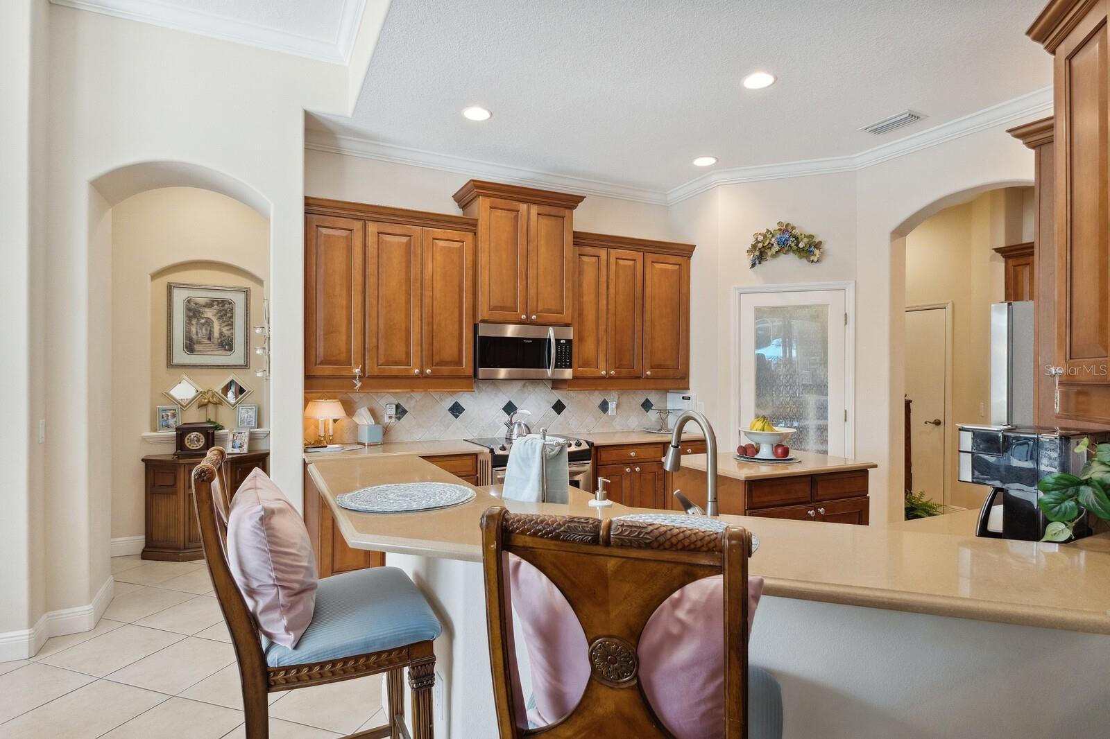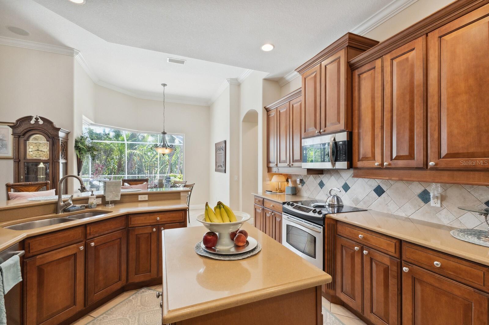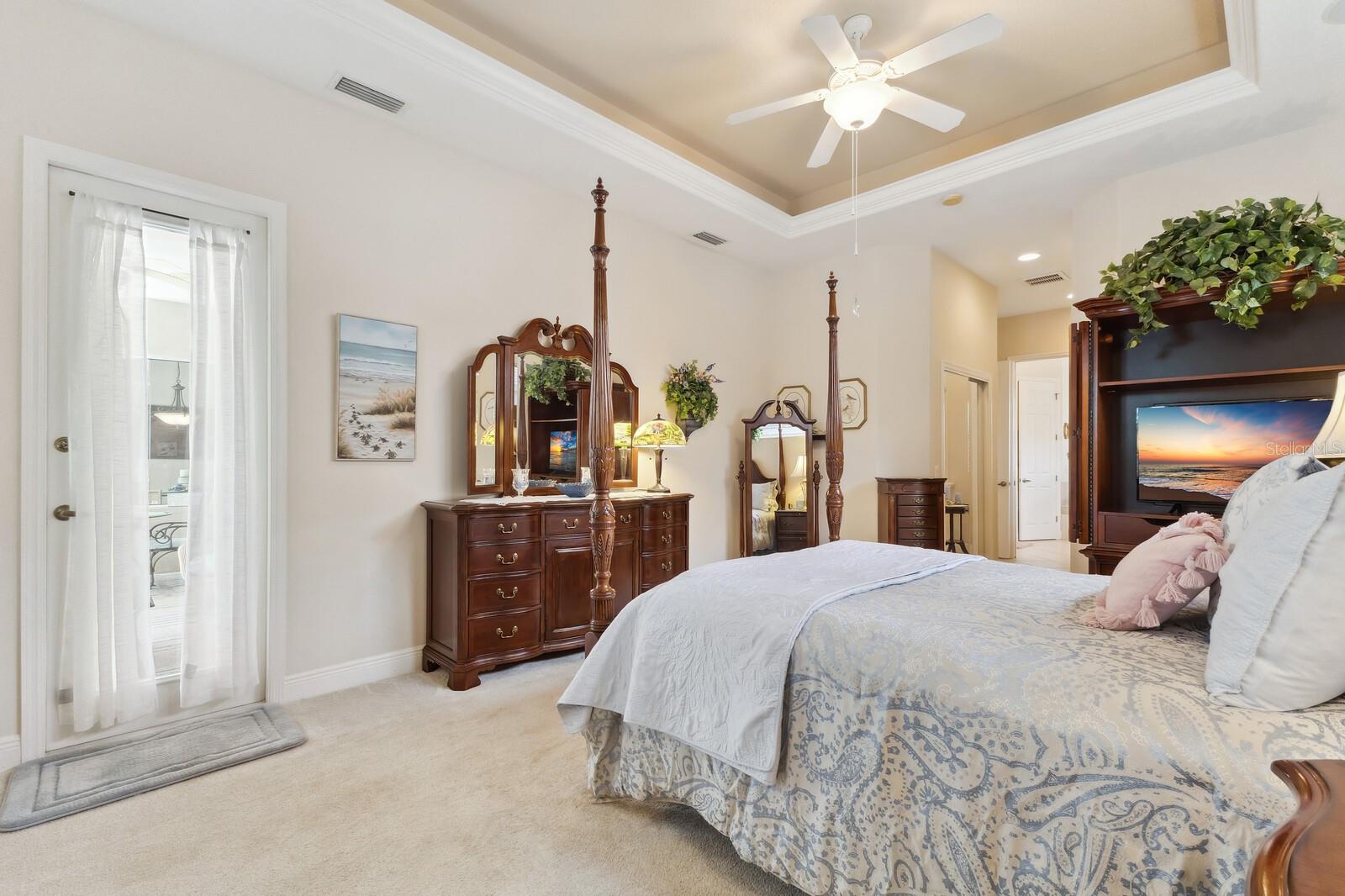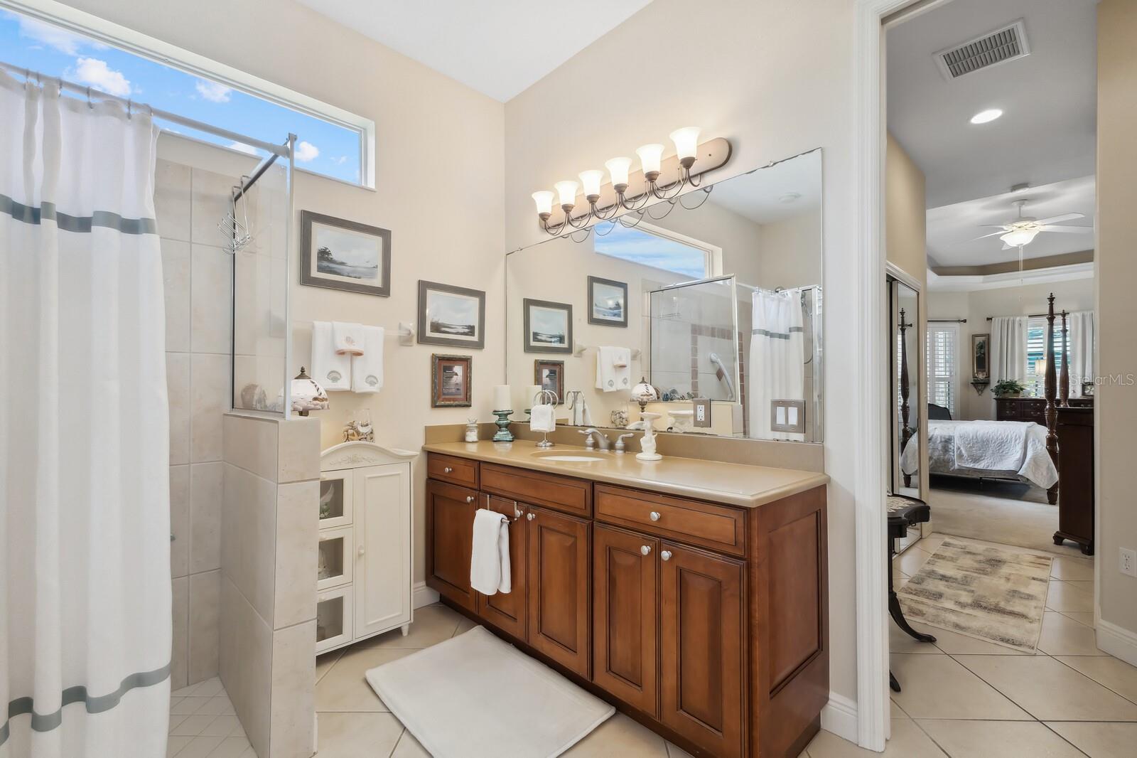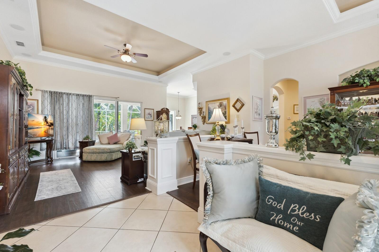 Welcome to Oak Creek, a serene and secure gated sanctuary nestled amongst tree-lined avenues, featuring just 34 homes spread across 22 acres. As you step inside, you'll be invited into a spacious living room and a formal dining area, both showcasing high ceilings, elegant finishes, and an abundance of natural light. The true split floor plan ensures complete privacy in the owner’s suite, which boasts dual vanities, a large soaker jacuzzi tub, a zero-entry shower, dual walk-in closets, and private access to the patio. At the heart of the home, the kitchen features solid wood cabinetry, a walk-in pantry, and an eat-in area with immaculate views of the backyard retreat through an aquarium window. The two guest bedrooms are private and spacious, with the third bedroom offering sliding glass door access to the pool. Additional highlights include ample storage throughout the home, crown molding, plantation shutters, a newly updated pool heater, and newly installed wood floors in the living and formal dining rooms. Don't miss this incredible opportunity to make this home your own and reside in one of Ellenton's most desirable neighborhoods. This home truly has it all, featuring an outdoor tropical oasis with a heated pool and spa, the perfect location for your morning coffee or to entertain your friends and family. Enjoy the convenient location just minutes from I-75, St. Petersburg, Tampa, shopping, dining, and world-renowned beaches.