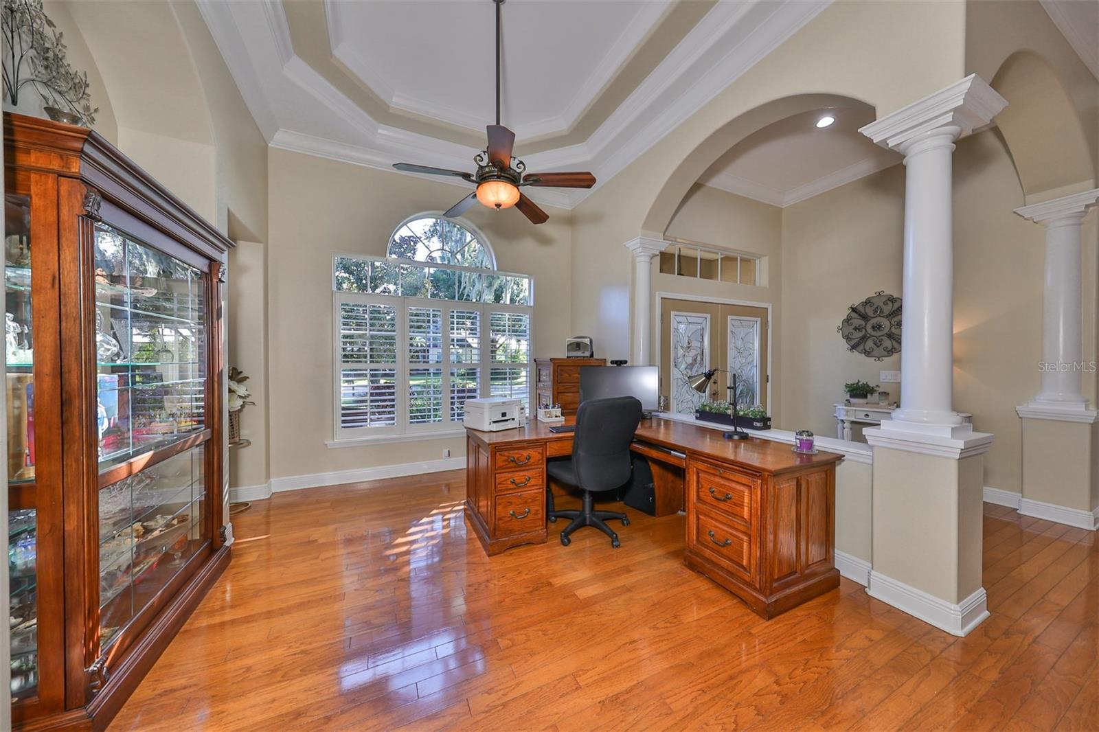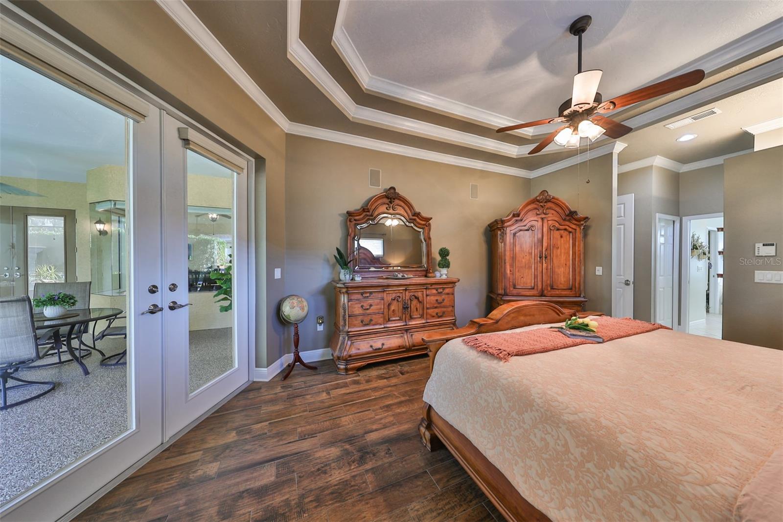 Why wait to build when you can have this beautiful and meticulously kept 3 bedroom/3 bathroom POOL HOME. Located in the quiet, gated community of "Oak Creek" that consists of 32 homes. With all the recent major storms, this home that is located inland but close to everything you need, had no flooding and sustained no damage! Many recent updates for peace of mind, including NEWER ROOF, A/C, WATER HEATER, REFRIGERATOR, DEBT-FREE SOLAR FOR LOWER ELECTRIC BILLS, AND BLUETOOTH IRRIGATION FOR EASE!! Grand oak trees and luscious landscaping surround the homes of this community leading to peaceful enjoyment and relaxation. Pride of ownership is portrayed through this spacious and well-maintained home that is move-in ready. The solar panels will be your wallets best friend keeping energy costs extremely low! In addition, the OVERSIZED GARAGE measures 94" in height and has the capability of accommodating large vehicles, unlike many homes that can't. With nearly 2,700 square feet and a split bedroom floor plan everyone will enjoy their space and privacy. Lighting is enhanced with 34 LED can lights throughout. From the curb appeal to the newly installed leaded glass front entry doors, you will be wowed with all this home has, including 12-foot ceilings and 13 ft. tray ceilings. In addition to the large open family room adjacent to your eat in kitchen area, are two other spaces that can be used as a dining room, formal living room, office, or whatever suits your family's needs. This exquisite home features a large kitchen, with newer granite countertops, which opens to the family room. This kitchen will be any chef's dream with an oversized island and an abundance of wood cabinets, drawer space, wine rack/cooler, and a microwave/wall oven. Views of the outdoor pool oasis can be seen from the kitchen, family room, master bedroom and the additional living space with easy access through multiple French doors. Here, you can entertain your guests or enjoy some rest and relaxation while listening and unwinding to the beautiful sounds of the rock waterfall and peaceful preserve views. You will love the enclosed oversized covered lanai area with epoxy flooring. For additional convenience you have an outdoor shower and bathroom as part of your outdoor retreat. Your luxurious master suite boasts double tray ceiling, 2 walk-in closets with built-ins and newly installed porcelain plank tile flooring. Your recently updated master bath features a walk-in shower, jetted garden tub and a dual sink vanity. The opposite side of the home features two spacious guest bedrooms with newer porcelain plank tile and a full bathroom. A pocket door leads into the family room for privacy which is ideal for a multifamily. The large oversized two stall garage has been recently painted and has epoxy flooring plus a tool room along with a new tool hanging system. Located only minutes from the Outlet Mall, shopping, eating and from I-75 and US 301 for easy commuting north to St. Pete/Tampa or South to Bradenton/Sarasota and airports are within 60 minutes away. Nearby find golf courses, ice skating rink, public library, pharmacies, medical clinics and much more make this property your perfect Florida Home. Come tour this home today, you will not be disappointed! Home is NOT IN A FLOOD ZONE. CHECK OUT THIS AMAZING 3-D Tour: https://www.zillow.com/view-imx/995f5b5b-a3ed-4d31-888d-64d69901583e?setAttribution=mls&wl=true&initialViewType=pano&utm_source=dashboard